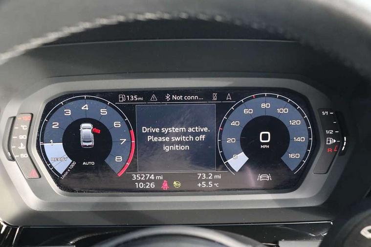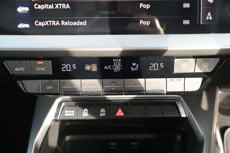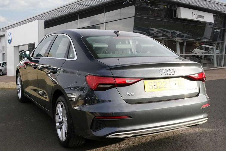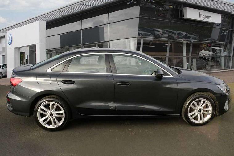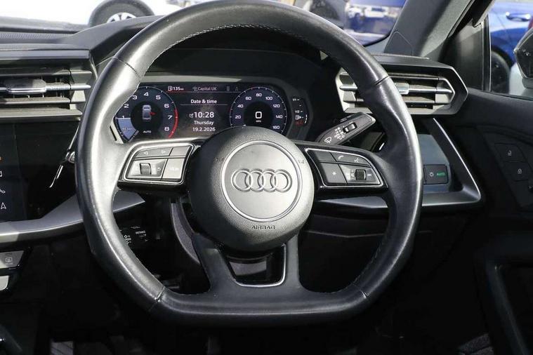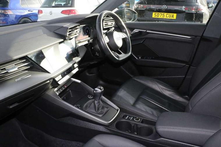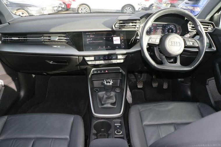 Audi connect emergency call and service, Audi drive select (Auto, Comfort, Dynamic, Efficiency and Individual), Audi smartphone interface, Audi Virtual Cockpit - 10.25" digital and colour instrument cluster, Automatic start/stop system with recuperation, Bluetooth interface, Collision avoidance assistant, Cruise control + speed limiter, Electromechanical power speed sensitive steering, Lane departure warning system, MMI Navigation Plus with high resolution 10.1" colour touch screen display, Rear parking sensors, Service indicator, Voice control system with natural language interaction, Standard suspension, 2x USB Type C ports (for charging and data transfer), 6 passive loudspeakers, CD player, DAB Digital radio, 3rd brake light, Acoustic glass windscreen, Aluminium window trim, Auto dimming frameless rear view mirror, Body colour exterior mirrors, Body colour roof spoiler, Electrically adjustable/heated/folding/auto dimming door mirrors with integrated LED indications + kerb view function for passenger side, Front electric windows, LED daytime running lights, LED headlights and halogen rear lights, Light and rain sensors, Model and engine designation badges at rear, Rear boot, Rear electric windows, Rear side wing doors, Rear window, rear door windows and rear side windows in clear glass, 12V socket and storage compartment in front centre console, 3 seat bench in 2nd row, 40/20/40 split folding rear seat bench with cupholder, Dual zone electronic climate control, Front and rear headrests, Front centre armrest, Front door sill trims with aluminium inlay, Front/rear floor mats, Height and reach adjustable steering wheel, Interior lighting - Front and rear roof module including reading lights, glove compartment light and right hand side, Luggage compartment floor covering, Manual boot compartment lid, Manually adjustable front seats, Seat side bolsters, Single front passenger seat, Steel grey cloth headlining, Twin leather upholstery, Aluminium interior elements pack - A3, Sport styling pack - A3 Saloon, 3x3 point rear seat belts, Driver and front passenger airbag with passenger airbag deactivation, Electronic Stabilisation Control (ESC) including ABS, ASR and EDL, First aid kit with warning triangle and 2 safety vests, Front side airbags with head airbags and interaction airbag, Hill hold assist, Pre-sense front with pedestrian and cyclist detection, Seatbelt monitoring, Tyre pressure loss indicator, Anti theft alarm, Anti-theft wheel bolts, Immobiliser, Manual child locks, Remote control central locking, Aluminium air vent surrounds, Aluminium trim elements, Inlays with silk effect paint in platinum grey,