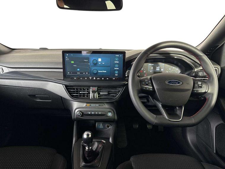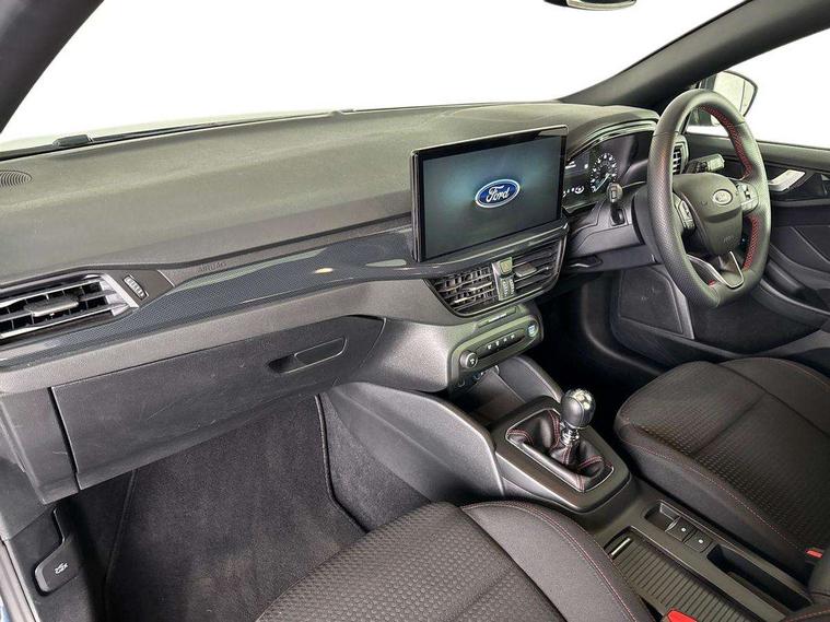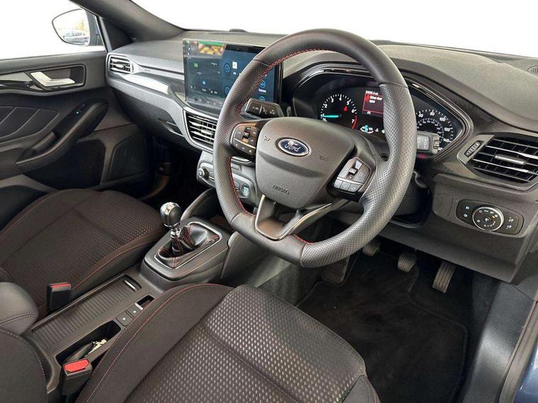 4.2" Colour TFT Ice blue illumination analogue cluster with trip computer, Bluetooth system, Digital clock, Easy fuel capless refuelling system, Eco mode, Ford SYNC 4 Navigation with 13.2'' touchscreen, DAB radio, Emergency Assistance, Apple Carplay & Android Auto, 6 speakers & FordPass Connect, Lane keeping system - lane keeping alert and lane keeping aid, PAS, Rev counter, Selectable drive mode, Service interval indicator, Sports tuned suspension, 2 USB ports, Auto headlamps (on/off), Body coloured door handles, Electrically operated front and rear windows with one touch opening and closing, Electrically operated heated power fold door mirrors with puddle lamp with side indicators, Front variable intermittent wipers with electric wash, Full fixed LED headlamps, Heated rear window, LED daytime running lamp, LED rear lamps, LED third brake light, Polished twin tailpipe, Privacy glass, Quickclear heated windscreen, Rain sensor, Rear side wing doors, Tailgate wash/wipe, Unique ST-Line grille, full bodystyling kit, and large body coloured rear spoiler, 3 rear headrests, 3 seat bench in 2nd row, Cloth upholstery, Dual zone electronic air temperature control, Height adjustable front headrests, Isofix child seat preparation, Reach + rake adjustable steering column, Single front passenger seat, 3x3 point rear seatbelts, ABS+Electronic Brake force Distribution, Auto hold function, Driver airbag, EDL traction control, Electronic parking brake, Electronic stability control, Front and rear seatbelt reminder, Front inertia reel height adjustable seatbelts with pre-tensioners, Front passenger airbag, Front side airbags, Passenger airbag deactivate switch, Post collision braking, Pre collision assist with autonomous emergency braking and pedestrian/cyclist detection, Remote/power child rear door locks, Side curtain airbags, Three rear inertia reel lap/diagonal seatbelts, Tyre pressure monitoring system, Keyless entry and keyless start, MyKey system, Remote central locking & engine immobiliser, Thatcham alarm with power door dead locks, 17" 5 spoke Rock mettalic finish alloy wheels with mini spare wheel,