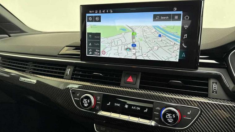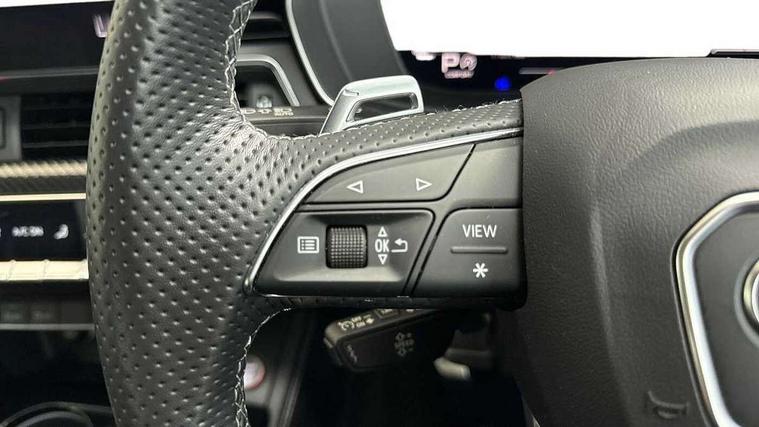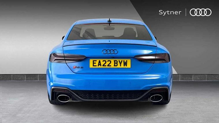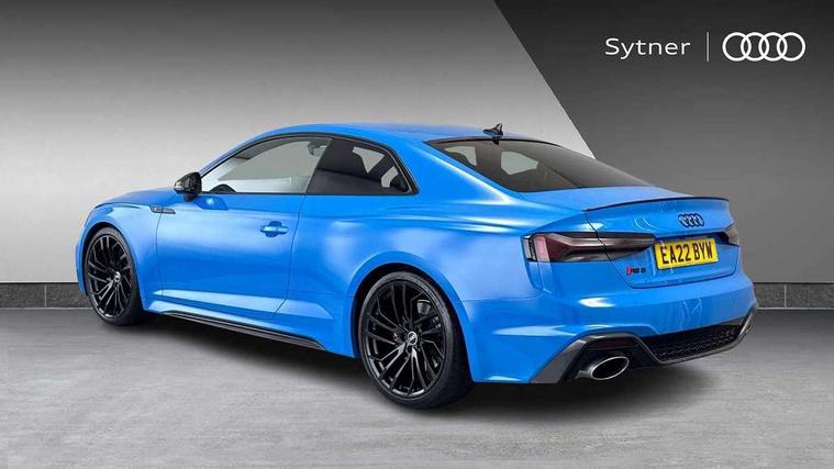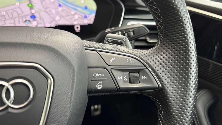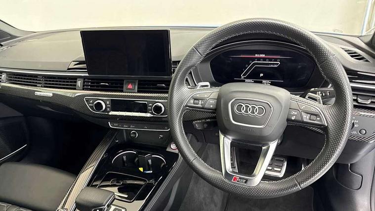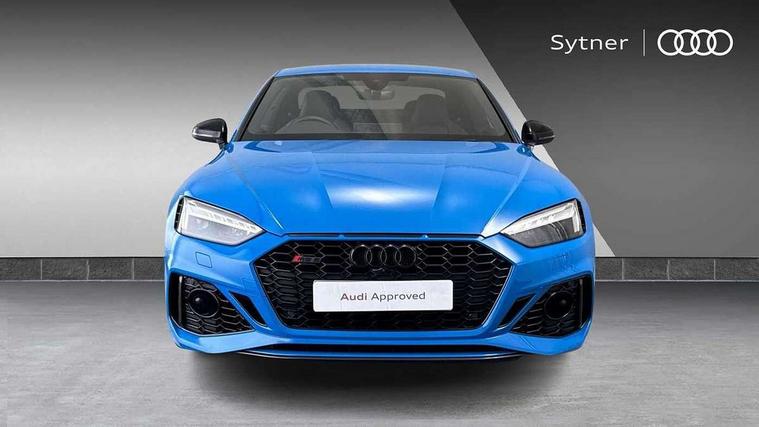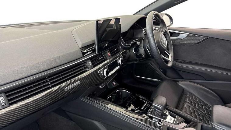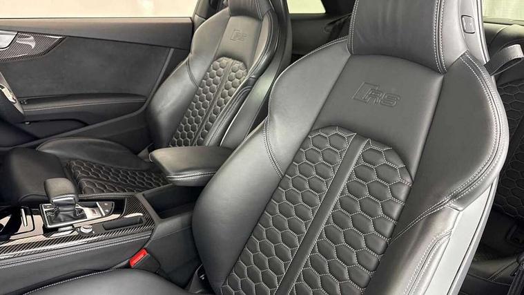 Audi connect safety and service (e-call), Audi connect with Amazon Alexa Integration, Audi parking system plus with front and rear sensors, Audi side assist, Audi smartphone interface, Audi Virtual Cockpit with RS specific design and 12.3" display, Automatic start-stop system with coasting functionality and efficiency programme, Bluetooth interface, Electromechanical power steering, Email, calendar and text messages displayed via MMI, MMI Navigation plus with MMI touch includes 10.1" high resolution colour MMI display, 3D map, Rear view camera, RS Audi drive select, RS drive modes on steering wheel, Service interval indicator, Voice control system, Quattro sports differential, Audi sound system, DAB digital radio reception, Audi Beam uses LEDs to project the RS logo, Audi matrix LED headlights with LED rear lights + dynamic front and rear indicators, Audi rings and lettering glossy black, Auto dimming rear view mirror, Body colour door handles, Electric front windows, Electric rear windows, Electrically folding, adjustable and heated door mirrors with integrated LED side indicators and kerb view function for passenger side, Exterior mirror housing in high gloss black, High beam assistant, Larger singleframe grill, LED 3rd brake light, LED daytime running lights, Privacy glass with rear acoustic glazing, Rain and light sensors, Rear boot, RS bumper with quattro lettering, RS5 badges on grille, the front wing panels and rear, RS5 dual branch chrome tailpipes with left and right oval pipes, Windscreen with acoustic glazing, 2 x USB charging port with aux input socket, 3 spoke leather heated multi-function plus steering wheel with RS badging, 40:20:40 split folding 2 seater rear seat bench with rear centre armrest, Aluminium shift paddles, Black cloth headlining, Deluxe 3 zone electronic climate control, Electrically adjustable front seats, Fine Nappa leather upholstery, Front centre armrest, Front head restraints, Front/rear floor mats, Heated front seats, Illuminated door sill trims with RS5 logo, ISOFIX child seat mounting and top tether, Leather door armrests and knee pad, Pneumatic massage function, Rear head restraints, RS Specific perforated leather gear lever knob with contrast stitching, RS Super Sports seats with contrast honeycomb stitching, Single front passenger seat, Stainless steel pedals, Tool kit, Carbon black styling pack - RS5, LED Interior light pack - RS5, 2 x 3-point rear seatbelts, 6 airbags - Driver, front passenger, curtain and side airbags, Electromechanical parking brake, Electronic Stabilisation Control (ESC) including ABS, ASR and EDL, Front passenger airbag deactivation, Height adjustable front seatbelts, Hill hold assist, Multi collision brake assist, Pop-up bonnet for pedestrian protection, Pre sense city, RS Model enhanced braking system, Seatbelt monitoring, Tyre pressure warning, Warning triangle and first aid kit, Anti theft alarm system, Anti theft wheel bolts, Immobiliser, Keyless Go, Remote control key with RS emblem, Carbon twill inlays, 20" 5 Segment spoke Evo style design audi sport alloy wheels in glossy black, Tyre repair kit,