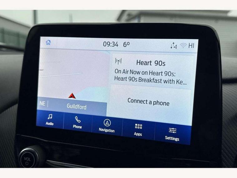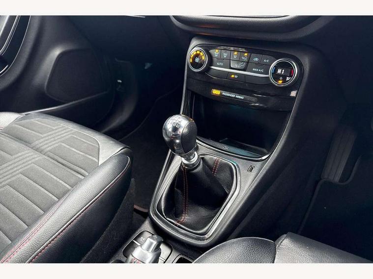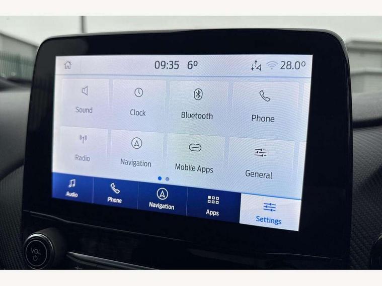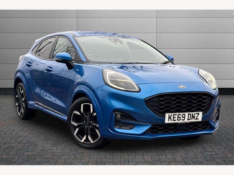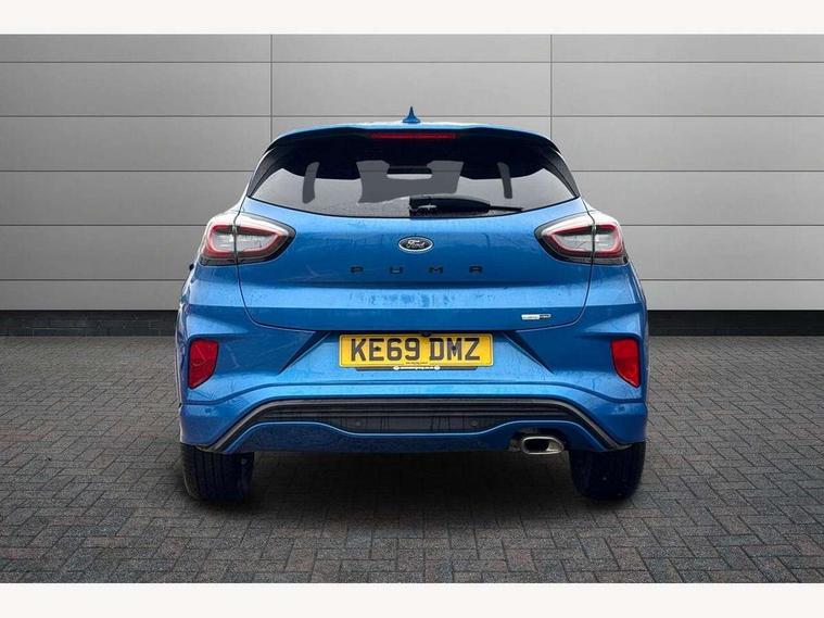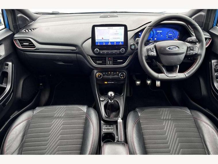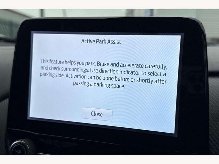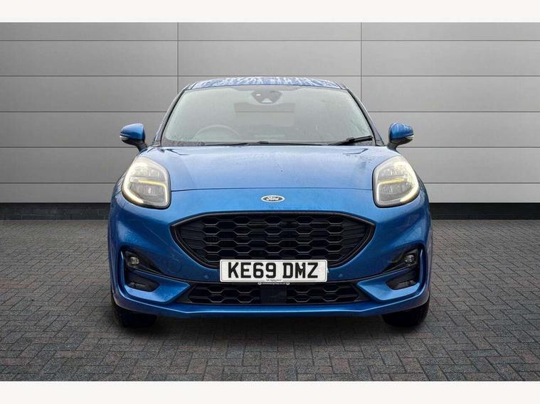 Ford easy fuel, Full digital 12.3" instrument cluster, Lane keeping aid with lane departure warning, Power liftgate hands free including keyless start + entry, motion sensing key fob, Rear parking sensor, Selectable drive modes(Normal, Eco, Sport, Slippery and Trail), Wireless charging pad, Automatic headlights with rain sensing wipers and auto high beam, Fixed LED headlamps, Front fog lights with cornering lights and LED rear lamps, Power foldable heated door mirrors with puddle lamps, Privacy glass to side rear windows and tailgate glass, Quickclear heated windscreen, ST-Line body kit with large rear spoiler wth sports suspension, Alloy sports pedals, Casual partial leather upholstery with salerno bolster, Centre console with armrest and stowage, Driver and passenger seat lumbar and height adjust, EATC - Electronic Auto Temperature control, Ford megabox extended bootspace, Front and rear floor mats, ST-Line flat bottomed leather steering wheel with leather handbrake and aluminium gear knob, B&O Premium Audio system + Ford SYNC 3 navigation pack - Puma, Driver assistance pack - Puma, 3 rear seatbelts, Electronic stability control (ESC) and hill start assist, Pre-collision assist with autonomous emergency braking, pedestrian/cyclist detection & post-collision braking, Tyre pressure monitoring system (TPMS), Thatcham alarm, Carbon look interior deco spears, 18" 5 spoke matt black machined finish alloy wheels, Tyre inflation kit,