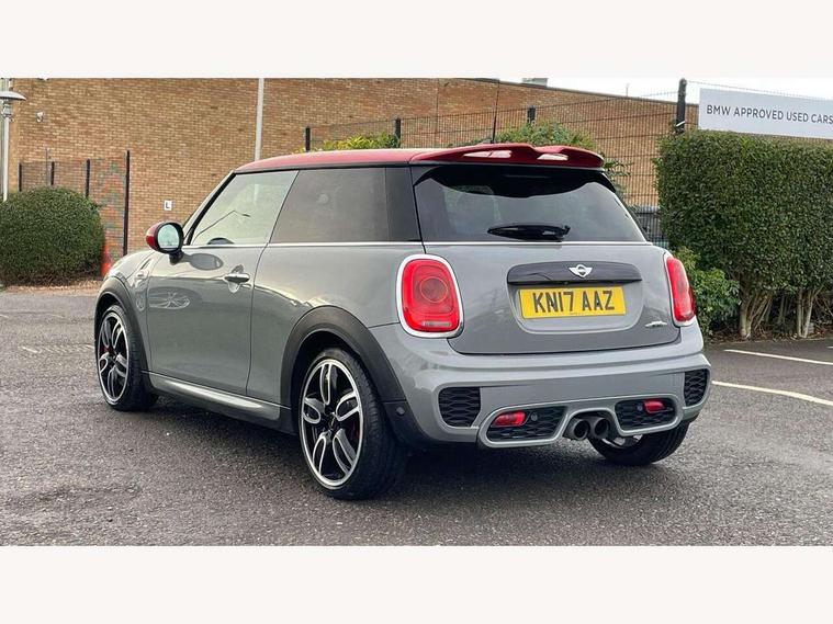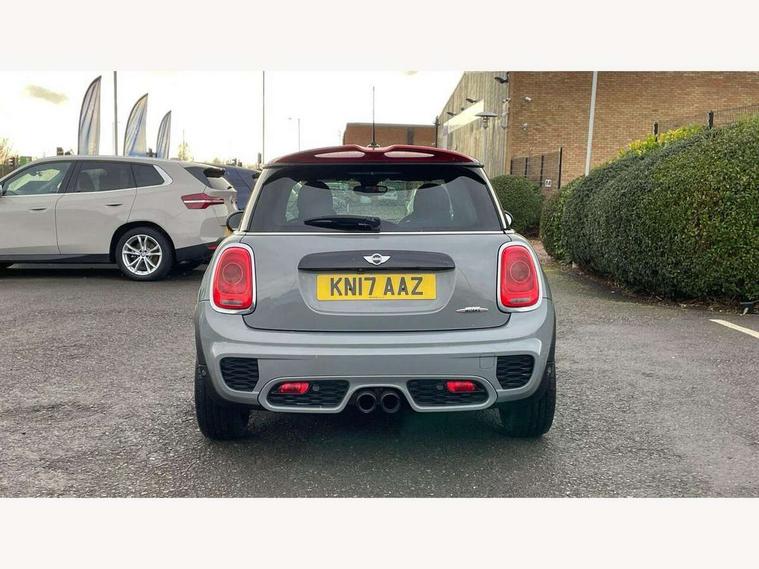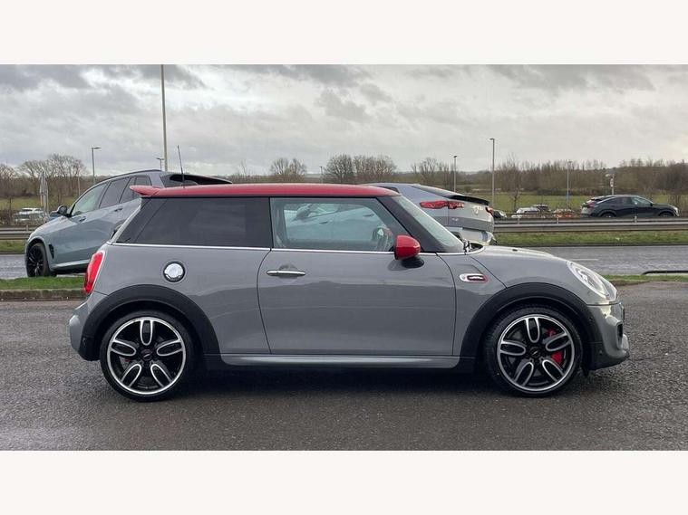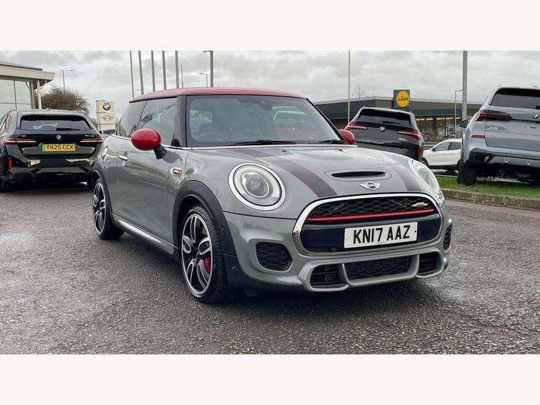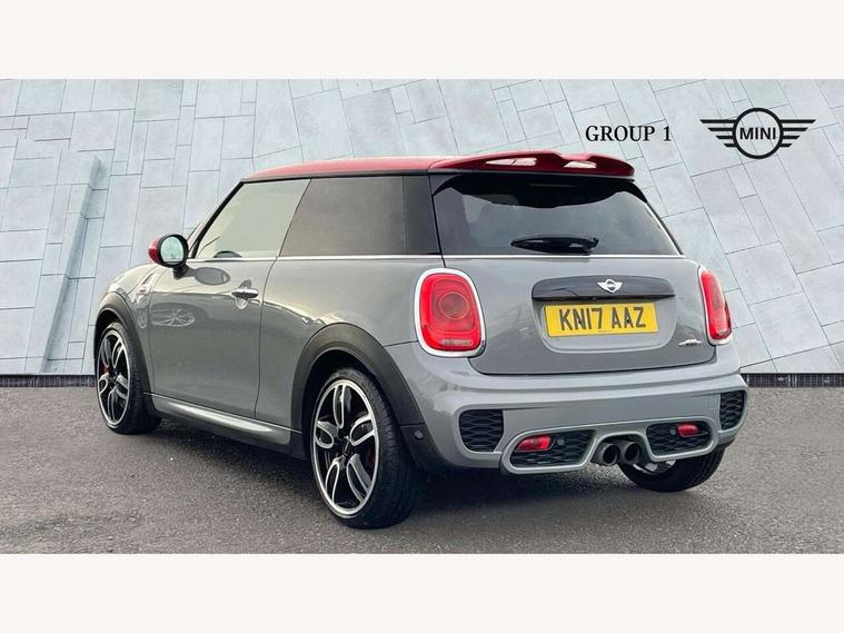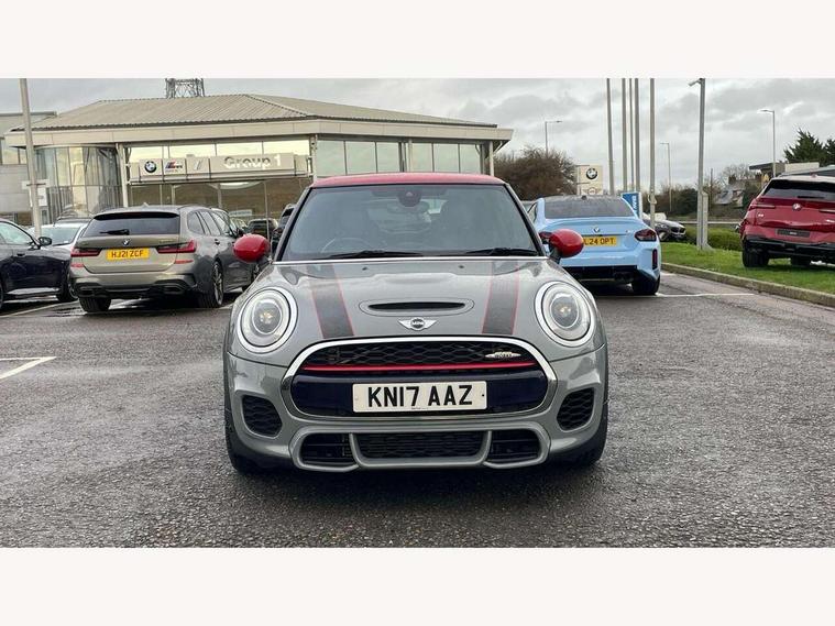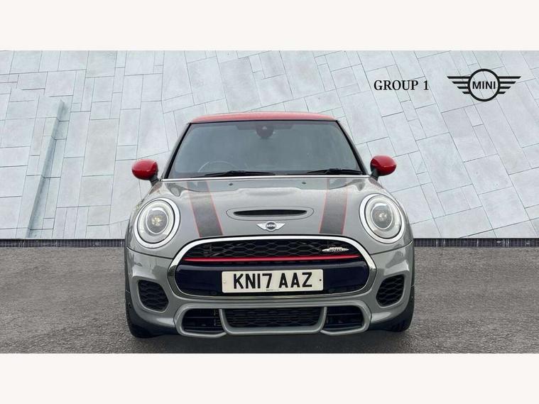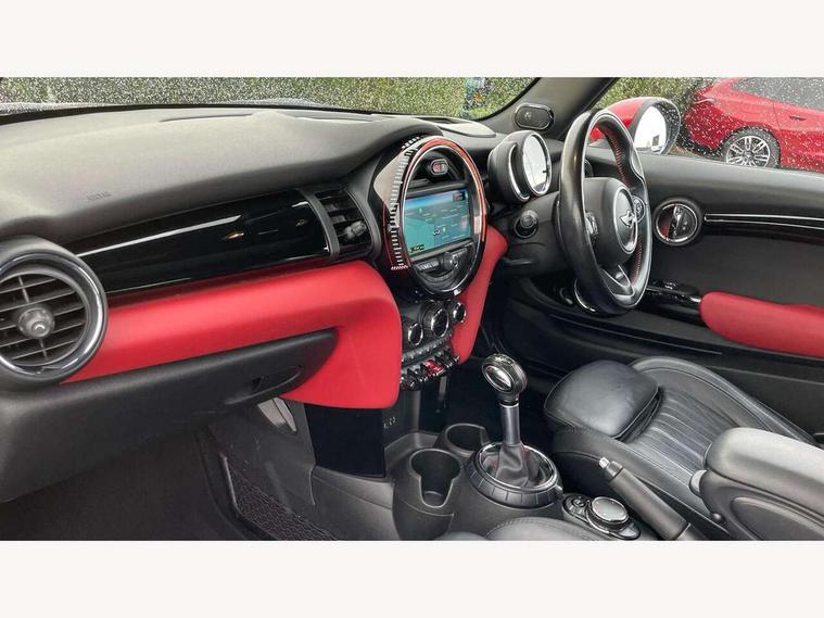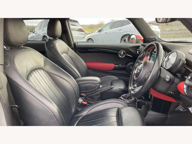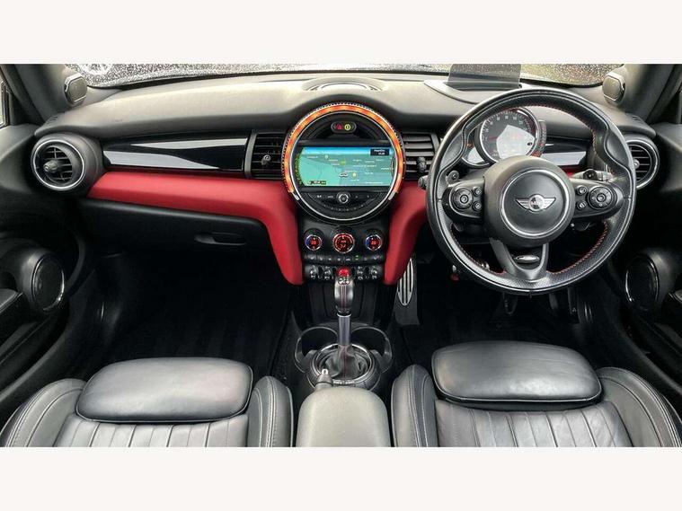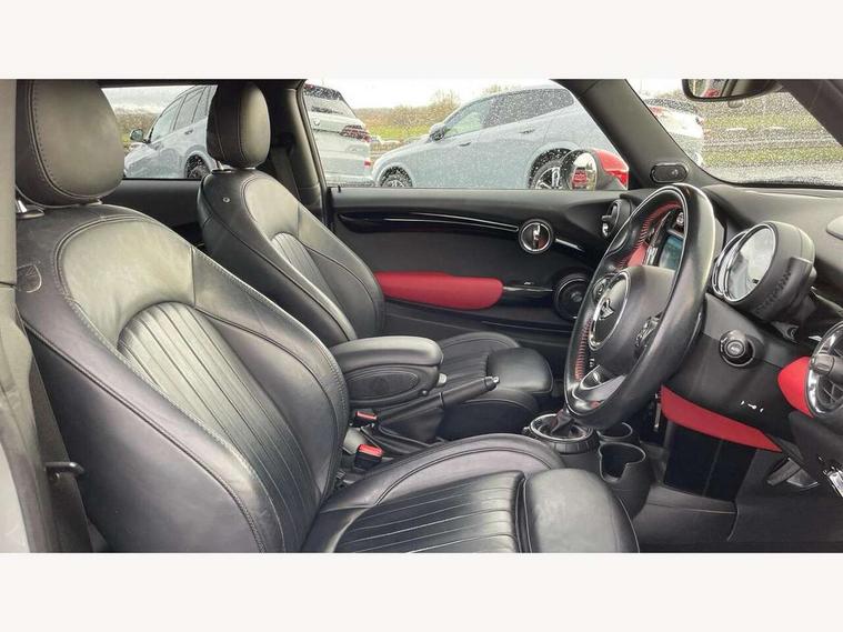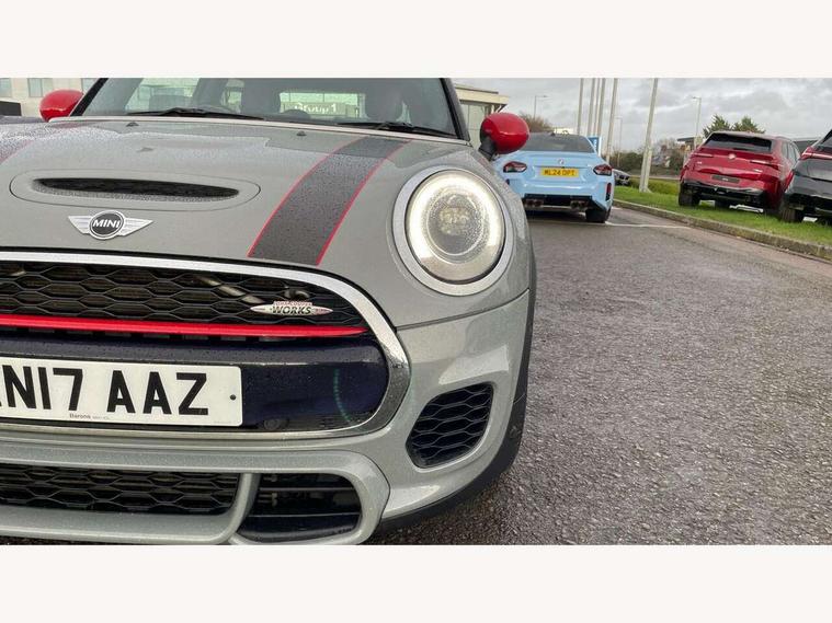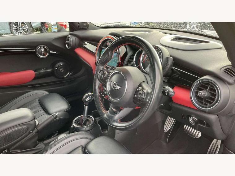 Acoustic seat-belt warning, Brake fluid level warning light, Brake pad wear indicator warning light, DTC - Dynamic traction control, Exterior temperature gauge, Intelligent emergency call, MINI Driving Modes - centre toggle switch to control driving setting (sport, mid and green), MINI TeleServices, Oil level indicator, On board computer, Push button starter, Service interval indicator, Servotronic PAS, Electronic differential lock, Performance Control, Auxiliary input socket, DAB digital radio module, 2 speed wipers+intermittent wipe, Anti dazzle mirror, Anti trapping/one touch open close front windows, Body colour scoop integrated into engine- compartment lid, Body coloured bumpers, Chili red grille bar, Chrome bezels around rear lights and headlights, Chrome door handles, Chrome plated fuel cap, Chrome plated trim on bottom edge of window, Chrome strip on lower grille, Electric front windows, Electrically adjustable door mirrors, Extended wheel arches, Follow me home headlights, Green tinted heat insulating glass, Heated door mirrors/heated windscreen washers, Heated rear window with auto timer, High gloss black tailgate, Honeycomb radiator grille, John Cooper Works roof spoiler, Metal look door sill finishers, Rear wiper, Side scuttles, Twin chromed exhaust pipes, White indicator lights, 2 rear head restraints, 4 boot load lashing points, 6 way manually adjustable passenger seat, 6-way manually adjustable driver's seat, Active carbon filter, Air recirculation system, Anthracite headlining, Auxiliary socket in centre console storage compartment, Centre console storage, Driver's seat height adjuster, Driver/passenger sunvisors, Easy entry seats, Front and rear cupholders, Front head restraints, Front interior light, Front passenger grab handle, Front seat backrest storage nets, Front sports seats, Gear/selector and handbrake in artificial leather, Internal chrome door handles, Isofix child seat preparation, Luggage compartment lighting, Multifunction steering wheel, Passenger seat height adjuster, Reach + rake adjustable steering column, Rear grab handles, Rear storage trays, Split folding rear seats, Storage compartments in doors, Toolkit in luggage compartment, Vanity mirrors, 3 point seatbelts, ABS/EBD, ASC+T, Brake calipers in red, Cornering brake control (CBC), Crash Sensor - activates hazard/interior lighting + unlocks doors, Driver and passenger airbags, Driver/front passenger side airbags, DSC - Dynamic Stability Control, Fuel cut off safety device, Head airbags, Hill start assist, Manual passenger airbag deactivation function, Seatbelt pretensioners, Tyre pressure warning, Ventilated front disc brakes, Drive away door locking, Locking wheel bolts, Remote central locking/doors+fuel cap+tailgate, Second remote key, Thatcham category 1 alarm + immobiliser,