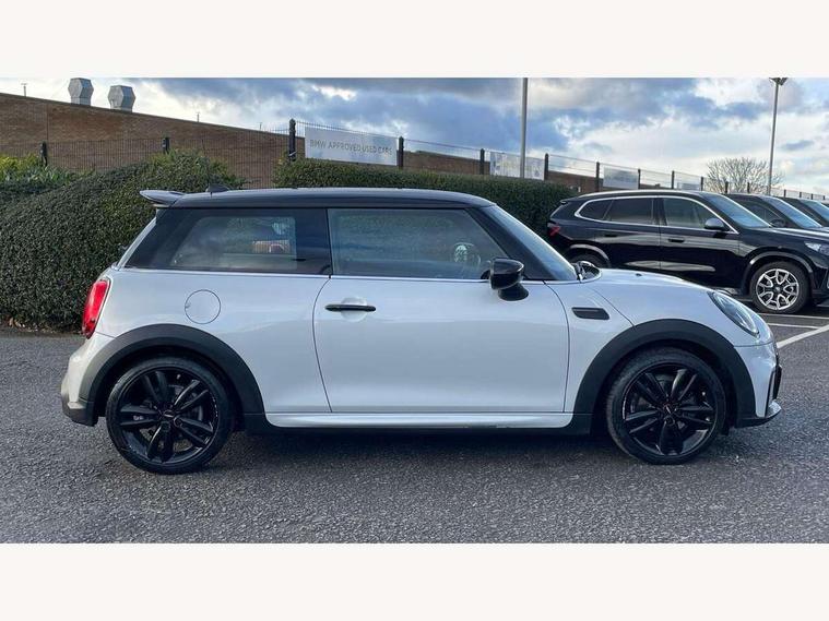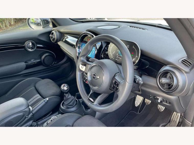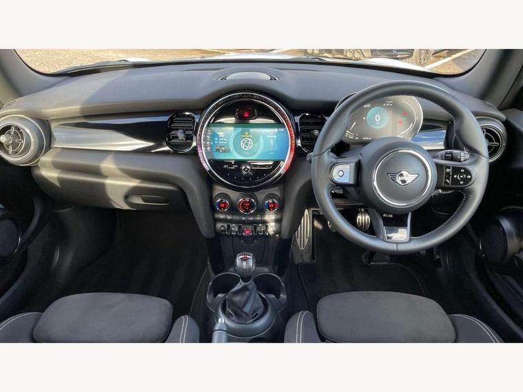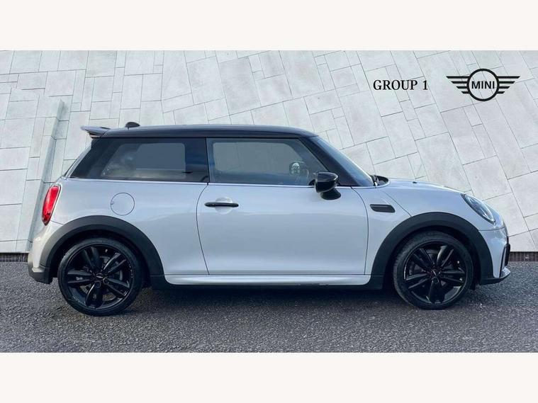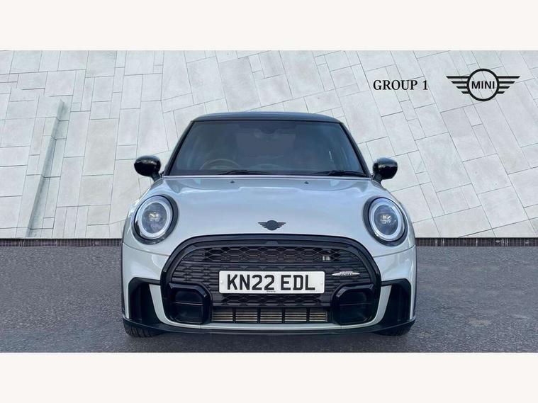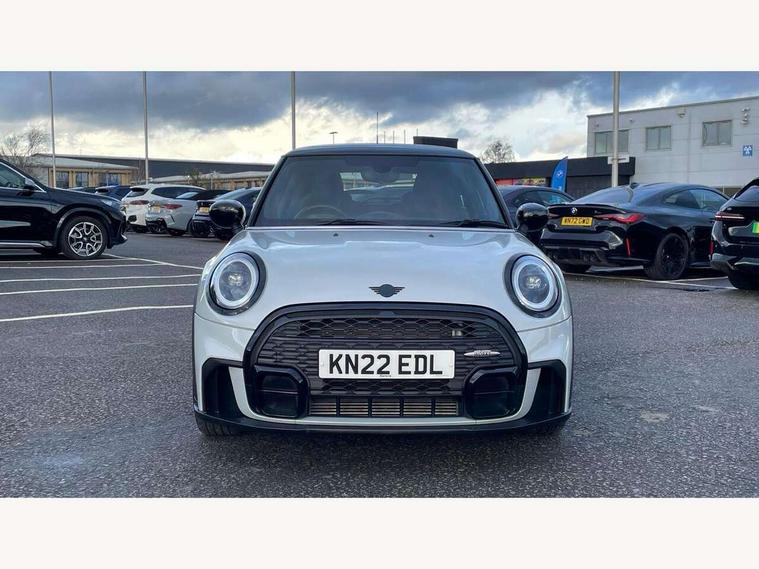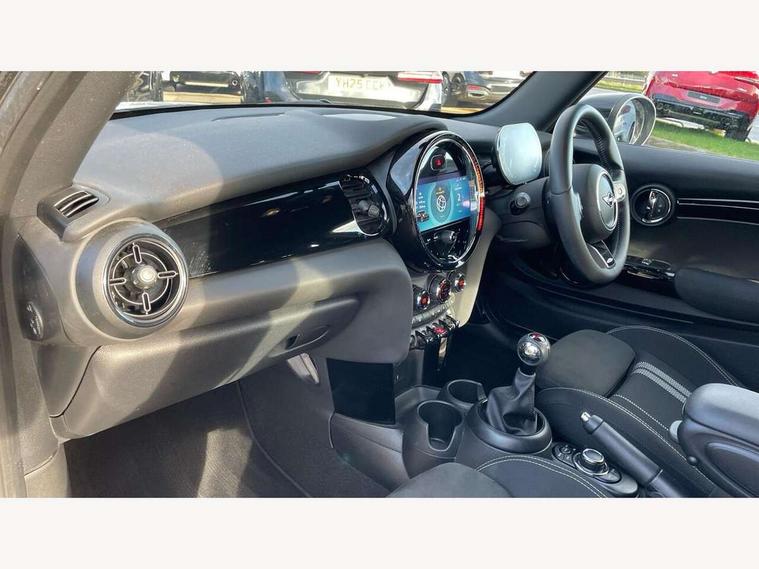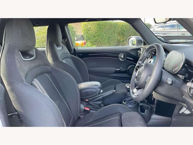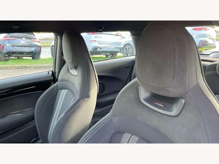 Apple CarPlay, Automatic start/stop function with brake energy recuperation, Compatible mobile phone bluetooth with audio streaming, Cruise control with brake assist, Electro-mechanical speed dependant steering assistance, Flexible car sharing preparation, Instrument cluster, MINI Driving Modes - centre toggle switch to control driving setting (sport, mid and green), Mini E-call, MINI TeleServices, On board computer, Rear park distance control, Service interval indicator, 6 Speed manual transmission including gear change indicator display, Double Vanos system, Fully variable valve control, High precision injection, Intelligent adaptive suspension, Performance Control, 8.8" touchscreen with LED ring, FM tuner and DAB digital radio, 3rd brake light, Automatic headlight activation switch, Body colour fuel filler cap, Chrome border high gloss black slats radiator grille, Dynamic brake lights, Electric front windows, Exhaust tailpipe on left with chrome finisher, Heated rear window, Heated windscreen washer jets, JCW Aerodynamic kit - Front and rear bumpers with sporty JCW styling and part-painted side sills with MINI John Cooper Works door sill finishers, John Cooper Works rear spoiler, LED headlight with closed ring and daytime driving lights, Metal door sill strips with MINI imprint, Model logo Cooper on right of tailgate, Rain sensor window wipers, Rear fog lights, Rear LED lights with union jack design, Rear window wiper, Side scuttle panel with integrated indicator, Sun/heat protection glass, White indicator lenses, 12V Accessory socket in centre console, 2 seat bench in 2nd row, 4 lashing eyes in luggage compartment, 60/40 split folding rear seat, Anthracite headliner including grab handles and clothes hooks, Carbon black colour line - Knee roll and door armrest, Chrome interior highlights, Cupholders, Front and rear isofix with front passenger airbag deactivation, Front floor mats in velour, Glove compartment, Height and length steering column adjustment, Interior lighting with 12 different colours across the dashboard, underneath door bezel with illuminated laser-engraved design on central display, JCW Sport seats with integrated headrests, adjustable thigh support and John Cooper Works logo, Leatherette gearshift lever and handbrake gaiters, LED reading lights, vanity mirror lights, front foot well light and spotlight on front seats, Manual air conditioning, Mechanical seat adjustment - forward/back & backrest for front seats and driver seat height adjust, Multifunction steering wheel, Passenger seat height adjuster, Single front passenger seat, Storage compartments in doors, Sunvisors with vanity mirrors, Walknappa leather steering wheel with grey seam and John Cooper Works badge on Piano Black lower steering wheel spoke, Piano black exterior pack - Mini Hatchback Cooper, 3 point seatbelts on all four seats, 6 Airbags - front, side, head and seat belt tensioners, Anti-lock braking system (ABS), DSC - Dynamic Stability Control, Front and rear disc brakes, Single tone fanfare horn, Tyre pressure monitoring system, Alarm system with tilt sensor, monitoring doors, bonnet interior and tailgate, Electronic vehicle immobiliser, Start/stop toggle with keyless go, Piano black interior trim, Tool kit,