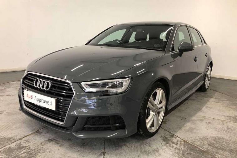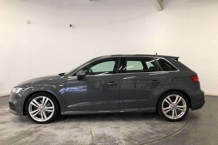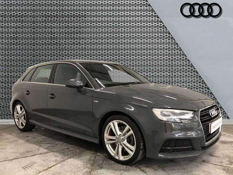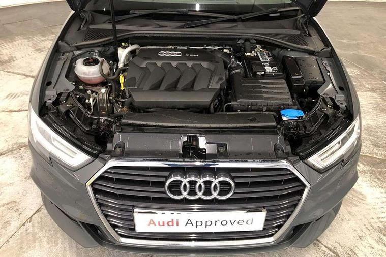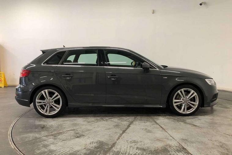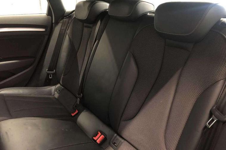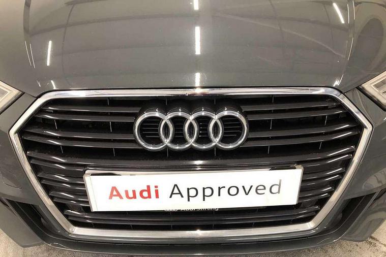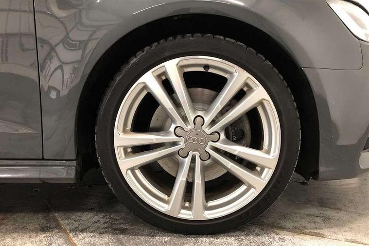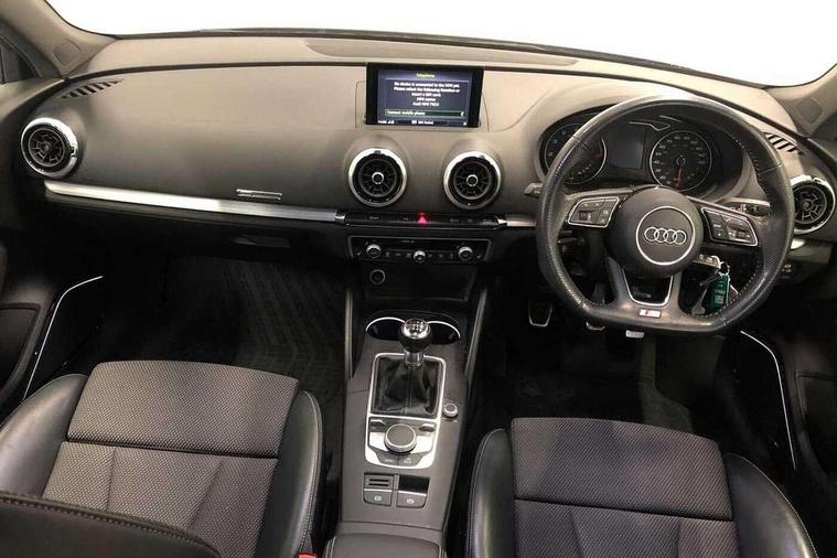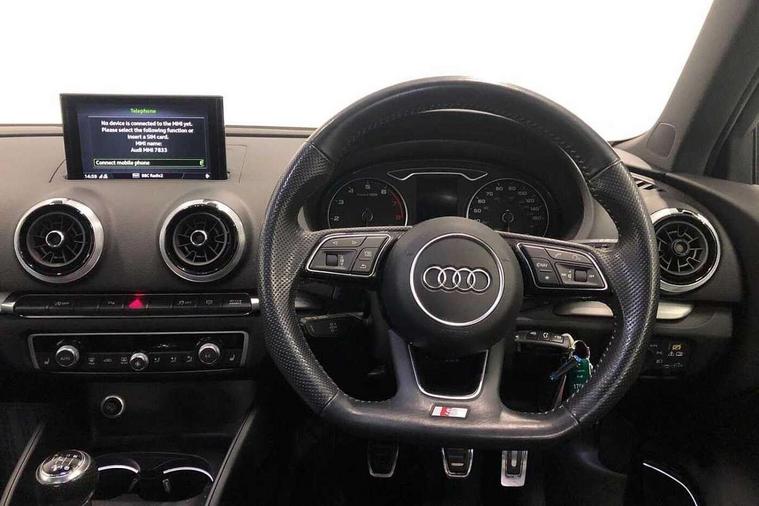 Audi connect, Audi drive select, Audi smartphone interface, Colour driver's information system display, Electro-mechanical PAS, HDD satellite navigation system radio single CD/DVD player MMI control system, Mobile telephone preparation - bluetooth interface, Service interval indicator, Speed limit display, Voice control system, 2 USB ports, Audi music interface, Auxiliary input socket, CD player, DAB Digital radio, MMI radio plus with 7" colour MMI screen and MMI controller, Aluminium window trim, Auto dimming rear view mirror with light and rain sensors, Body colour bumpers, Body colour door mirrors with integral indicators, Body colour roof spoiler, Chrome exhaust tailpipes, Electric front windows, Electric operated/heated door mirrors, Electric rear windows, Heated windscreen washer jets, LED daytime running lights, Matt black radiator grille, Rear wiper, S Line body styling, Sport specific side air inlet grille and diffuser insert, 3 adjustable rear headrests, 3 spoke flat bottomed multi-function leather steering wheel, 4 lashing points to secure luggage, Adjustable front armrest, Black cloth headlining, Dual zone electronic climate control, Front and rear interior lights with delay, Front passenger seat isofix location point, Front sports seats, Front/rear floor mats, Height/depth adjustable steering column, Illuminated glovebox, ISOFIX child seat preparation+airbag deactivation, Jack and tool kit, Stainless steel pedals, Storage compartment in centre console, Storage compartment under front seats, Storage compartments in doors, LED interior light pack - A3/RS3, Non smoking pack - A3, Storage and luggage pack - A3/RS3, 3 point seatbelts on all seats, ABS/EBD, Active bonnet, Active front headrests, ASR, Curtain airbags, Driver and passenger side airbags, Driver/Front Passenger airbags, Drivers knee airbag, EDL, Electromechanical parking brake, ESC - Electronic Stability Control + traction control, Front passenger airbag deactivation, Manual rear child locks, Multi-Collision braking, Seatbelt warning, Tyre pressure warning, Warning triangle and first aid kit, Anti theft alarm, Anti-theft wheel bolts, Remote control central locking, Thatcham category 1 alarm + immobiliser, Aluminium air vent surrounds, Aluminium trim elements, Matt brushed aluminium inlays, Space saver spare wheel,
