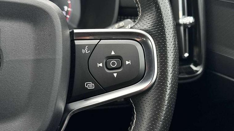 12.3" Active TFT crystal driver's instrument display, 9" Touch screen, Adjustable steering wheel force, Bluetooth hands free telephone kit, Drive mode selector, Lane keep assist with driver alert control, Oncoming Lane Mitigation, Sensus navigation system, Speed limiter, Speed sensitive steering, Voice control system, Volvo on call, DAB Digital radio, Steering wheel mounted remote controls, Adaptive brake lights, Auto dimming interior mirror, Automatic headlamp levelling, Black stone door mirrors, Black stone roof, Dark tinted glass for rear windows + rear screen + side luggage area window, Dual integrated exhaust pipes with high gloss black surround, Electrically adjustable and heated door mirrors, Embossed rear side roof pillar, Front and rear electric windows, Front tread plates, High gloss black front and rear skid plate, High gloss black lower front bumper, High gloss black mesh grille, High gloss black roof rails, High gloss black window trim, Home safe and approach lighting, LED front fog lights, LED Headlights + Active high beam incorporating daytime running lights, Rain sensor windscreen wipers, Rear wiper, Roof antenna, Roof spoiler, Visible VIN plate, 12V socket in front tunnel console, 2 zone electronic climate control with air quality system, 3 spoke leather steering wheel with chrome trim, 60/40 split folding rear seat, A-pillar parking ticket holder, Ambient lighting in door panels, Black headlining, Bright metal luggage threshold, Centre console cupholders, Centre console storage box, Contour sports seats with leather/nubuck upholstery, Cooled glovebox, Courtesy lights, Driver seat height/tilt/lumbar adjust, Driver's lower storage shelf, Extended front seat cushions, Front door pockets, Front footwell illumination, Front tunnel storage net, Front/rear reading lights, Glovebox bag hook, Glovebox illumination, Height/reach adjustable steering column, High gloss centre tunnel deco, Illuminated driver/passenger vanity mirrors, Illuminated front cupholder, Illuminated luggage compartment, Illuminated tailgate, Isofix attachments on rear seats, Load protection net, Multicolour theatre lights, Passenger seat adjustable for lumbar support, Perforated leather gearknob, Perforated Leather Key Integrated Remote, Perforated leather steering wheel, Pollen filter, Rear armrest / integral cup holders / storage tray, Sports pedals, Underfloor stowage compartment, ABS/EBD, City safety, Drivers knee airbag, DSTC-Dynamic Stability and Traction Control, Dual stage driver/passenger airbags, EBA, Electronic parking brake with auto hold, Fasten seatbelt reminder, First aid kit, Front seat side impact airbags, Hill descent control, Hill start assist, Inflatable curtain, Passenger airbag cut-off device, Road sign information display, Run off Road Mitigation, Run off Road Protection, Seatbelt pre-tensioners, Side impact protection, Tyre pressure monitoring system, Warning triangle, WHIPS whiplash protection system - front, Anti-theft alarm including immobiliser/volume sensor + level sensor, Fuel flap with deadlocking system, Key integrated remote control central locking, Locking wheel nuts, Private locking, Cutting edge aluminium inlay,