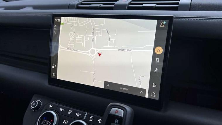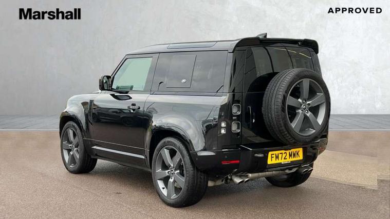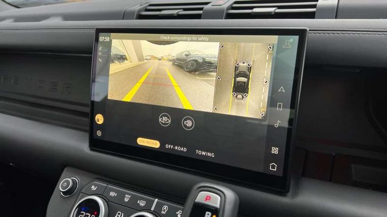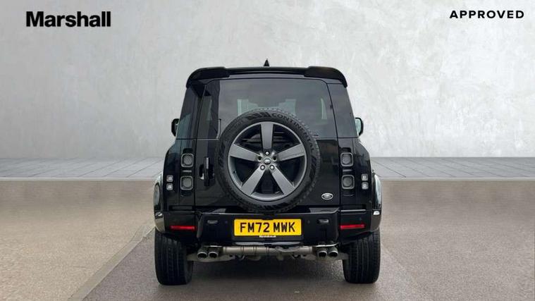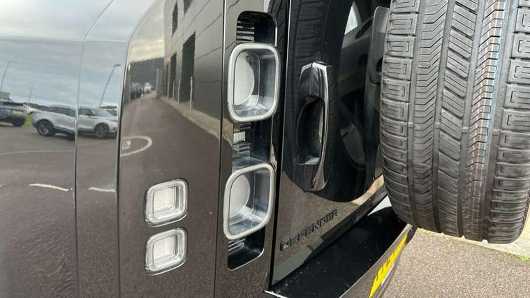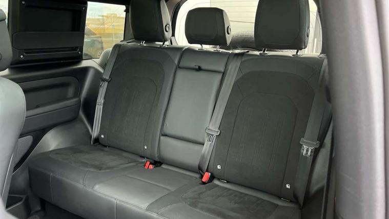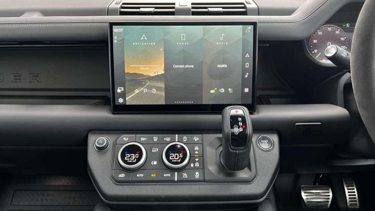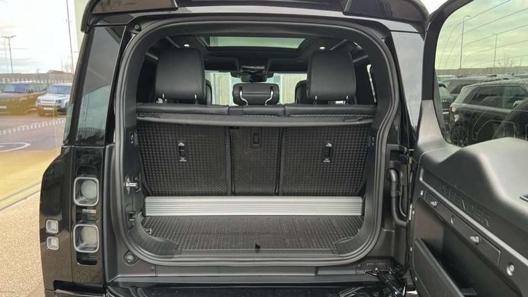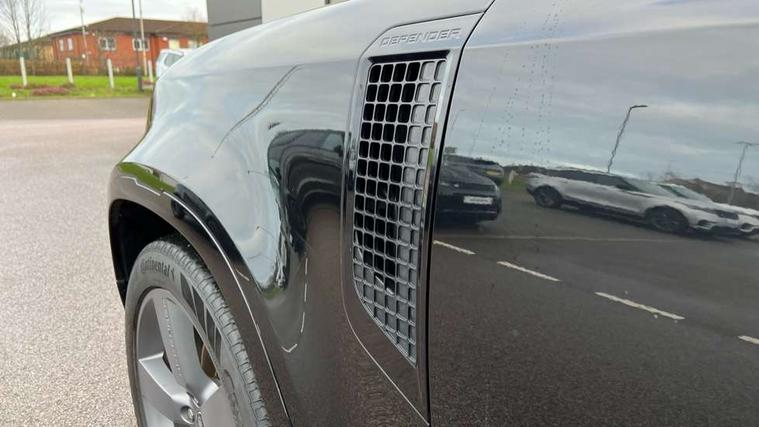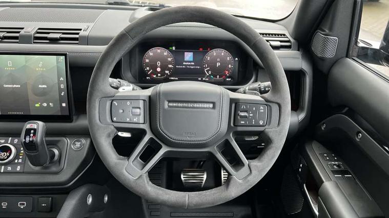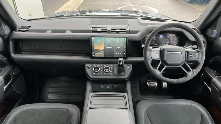 11.4" touchscreen, 360 degree parking aid, 3D Surround Camera with 360 View, 180 Rear View, Front Traffic Detection, Forward Vehicle Guidance, Tow Hitch Assist and clear sight Ground View, Adaptive cruise control, Android Auto, Apple CarPlay, Assisted tailgate with soft close, Blind spot assist, Bluetooth system, Brake pad wear indicator, Clear exit monitor, Connected navigation pro, Driver condition monitor, Electric power assisted steering (EPAS), Garage door opener (Homelink), Head up Display, Lane keep assist, Push button start, Rear collision monitor, Rear traffic monitor, Traffic sign recognition with adaptive speed limiter, Trip computer, Wade Sensing, Wireless device charging with phone signal booster, 8 speed automatic transmission, Adaptive dynamics, All terrain progress control, All wheel drive system, Configurable Terrain Response, Electronic active differential with brake torque vectoring, Electronic air suspension, Terrain Response 2 with dynamic program, Twin speed transfer box, DAB Radio (Digital Audio Broadcasting), Meridian 700w surround sound audio system with 15 speakers, Pivi pro connected, Advanced tow assist, Automatic headlight levelling, Automatic headlights, Centre high mounted stop light, ClearSight interior rear view mirror, Darkened LED tail lights, Electric heated/power fold door mirrors with approach lights and auto dimming driver side, Electric windows with one touch open/close and anti-trap, Electrically deployable towbar, Follow me home lighting, Front fog lights, Headlamp power wash, Heated rear window with timer, Heated washer jets, Heated windscreen, Illuminated metal treadplates with V8 branding, Less roof rack or roof rails, Matrix LED headlights with signature DRL, Panoramic rear side glass, Privacy glass, Puddle lights, Quad outboard mounted exhaust pipes, Rain sensing windscreen wipers, Rear fog lights, Rear wiper, Side hinged tailgate, Sliding panoramic roof, Solar attenuating windscreen, Trailer stability assist, V8 badge, 12V power socket in loadspace, 14 way heated and cooled electric adjustable memory front seats with 4 way manual headrests, 3 seat bench in 2nd row, 40:20:40 fixed heated rear seats with centre armrest, Air quality sensor, Alpine lights, Bright metal pedals, Cabin Air Purification plus, Domestic plug socket, Durable rubber cabin flooring, Durable rubber loadspace flooring, Ebony morzine headlining, Electric cabin pre conditioning, Electric reach + rake adjustable steering column, Extended leather upgrade, Footwell lights, Front centre console refrigerator compartment, Heated steering wheel, Leather gearshift, Loadspace cover, Loadspace Hook, Multifunction steering wheel, Overhead stowage for sunglasses, Premium cabin lighting, Rear headrests, Rear ISOFIX, Rear reading lights, Satin chrome gearshift paddles, Single front passenger seat, Standard seat configuration, Storage glovebox, Suedecloth steering wheel, Sunvisors with illuminated vanity mirrors, Three zone climate control, Twin front cupholders with cover, Online pack with data plan - Defender, 5 x 3 point seatbelts, ABS, Brake hold function, Cornering brake control (CBC), Cross car beam in satin black powder coat brushed finish, Customer configurable autolock, DSC - Dynamic Stability Control, EBD - Electronic brakeforce distribution, Electric parking brake (EPB), Emergency brake assist, Emergency braking, ESP + traction control, Front airbags with passenger seat occupant detector, HDC - Hill descent control, Hill launch assist, Low traction launch, Remote for (e-Call, Optimised assistance call, InControl app, Climate, beep and flash and door), RSC - Roll stability control, Seat belt reminder, TPMS (Tyre pressure monitoring system), Activity key, Alarm, Immobiliser, Intrusion sensor, Keyless entry, Locking wheel nuts, Robustec veneer,
