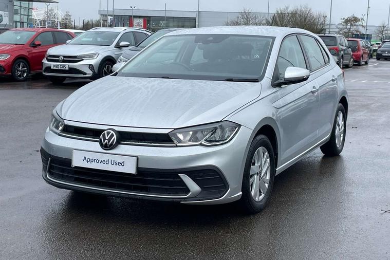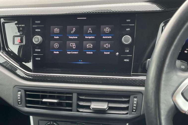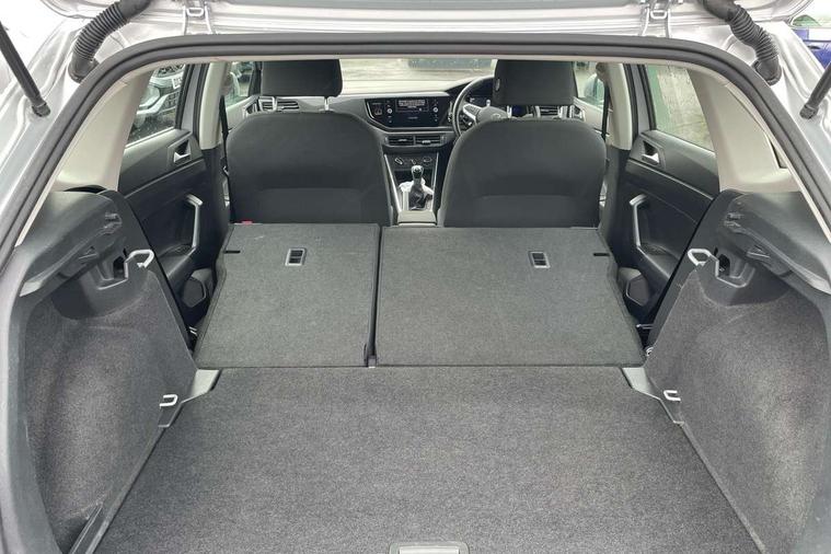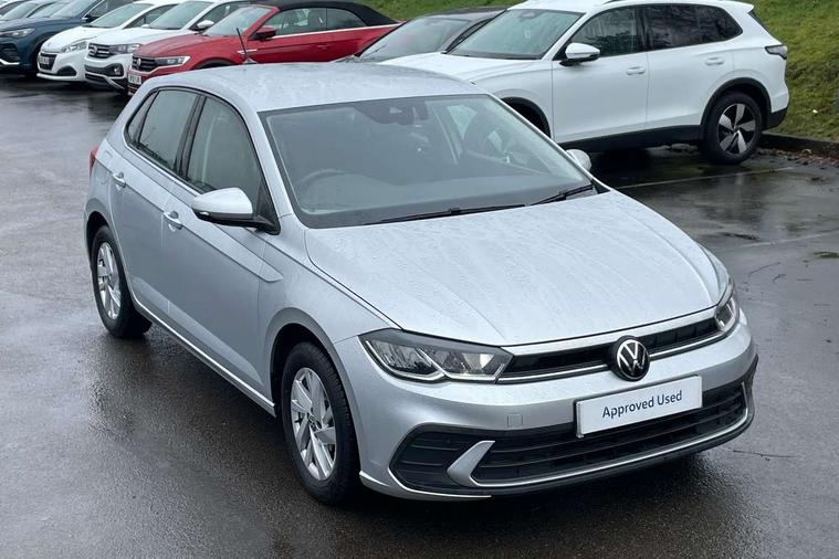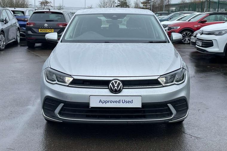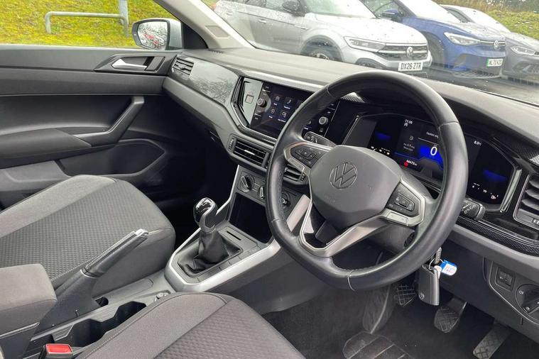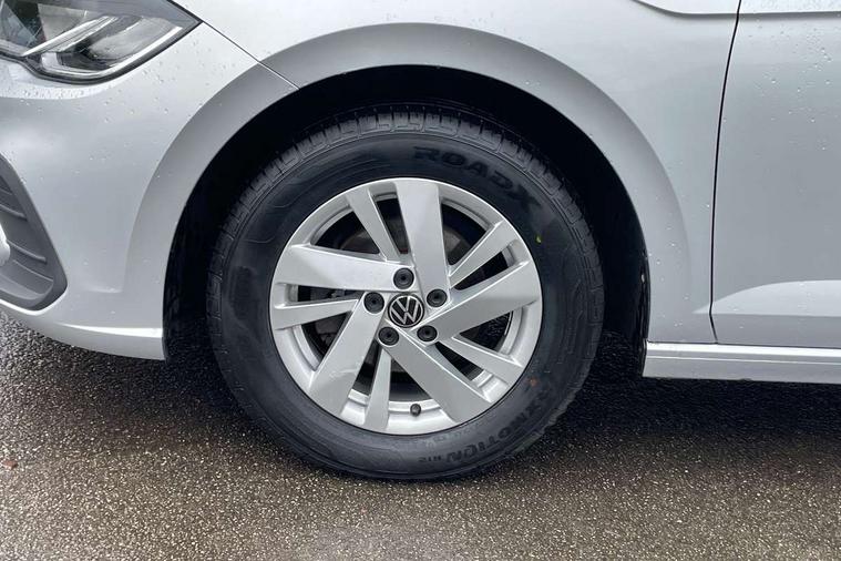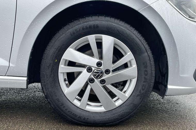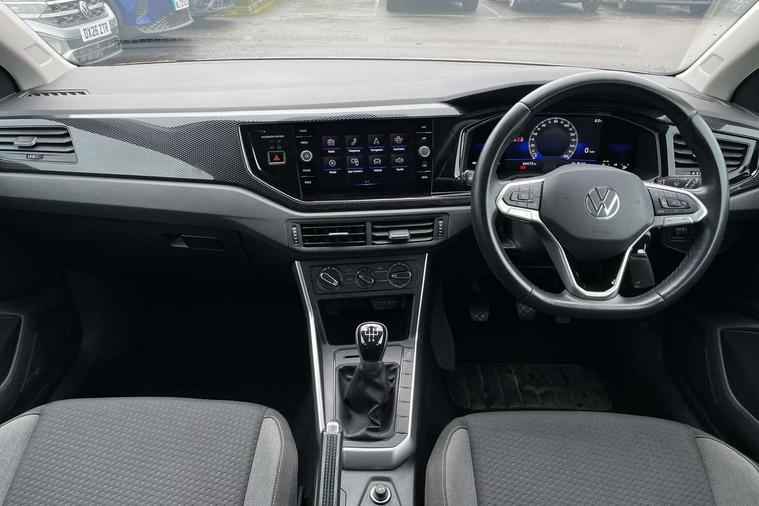 Adaptive cruise control without follow-to-stop and speed limiter, Bluetooth mobile phone interface, Driver alert system, Emergency call service, Front assist system, Power assisted speed sensitive steering, Preparation for We connect and We connect plus, Speedo and rev counter, electronic odometer, trip, service interval display and fuel gauge, Standard rear axle, Travel Assist - Lane keeping system and traffic jam assist, Travel assist including emergency assist, Trip computer, Warning signal and warning light for front and rear seatbelts not fastened, Washer fluid level indicator, Wireless app connect, Front wheel drive, Rear shock absorpion, Start-stop system with battery regeneration (recuperation - energy recovery during braking), DAB Digital radio, Diversity antenna for FM reception, Automatic dimming interior rear view mirror, Body colour bumpers, Body colour door handles, Body colour door mirrors, Electric front windows, Heat insulating darkened glass in side and rear windows, Heat insulating glass windscreen, Power folding adjustable/heated exterior mirrors and front passenger exterior mirror lowering function, Rain sensor, Rear electric windows, Rear fog light, Rear side wing doors, Rear windscreen washer and wiper with interval delay, Third brake light, 12V power socket in centre console, 2 front and 2 rear reading lights, 2 USB-C ports in the front, 2 USB-C charging sockets on the center console in the rear, 3 rear head restraints, 60/40 split folding rear seat and rear seat bench not split, Ceramique headliner, Chrome plated radiator grille inserts, air vent surrounds and light switch surrounds, Door and side trim panel, Driver and front passenger seat height adjustment, Driver/passenger sunvisors with illuminated vanity mirrors, Front centre armrest, Front seat backrest storage pockets, Front standard seats, Handbrake lever handle in leather, Hartley/Thomas cloth upholstery, Isofix child seat preparation easy-fit (for two outer rear seats, and front passenger seat) compatible with I-size, Leather trimmed gear knob, Luggage compartment cover, Luggage compartment floor, Luggage compartment lighting, Multifunction steering wheel, Single front passenger seat, Standard pedal cluster, Light and vision pack - Polo, 3 point height adj front seatbelts + pretensioners, 3x3 point rear seatbelts, ABS, Driver and front passenger airbag with front passenger airbag deactivation, Drivers and front passengers safety optimised head restraints, ESC (Electronic stability control) + EDL (Electronic Differntial lock) and ASR (Traction control), Extended and predictive pedestrian/ cyclist protection, Front curtain and side airbags with center airbag, Front disc brakes, Hill hold control, Manual child lock in rear doors, Rear drum brakes, Single tone horn, Tyre pressure loss indicator, Alarm with interior protection, Anti-theft alarm system with interior monitoring, backup horn, and towing protection, Anti-theft wheel bolts, Electronic engine immobiliser, Lava stone black gloss/matt decorative inserts in dash and front door panels, Low rolling resistance tyres,