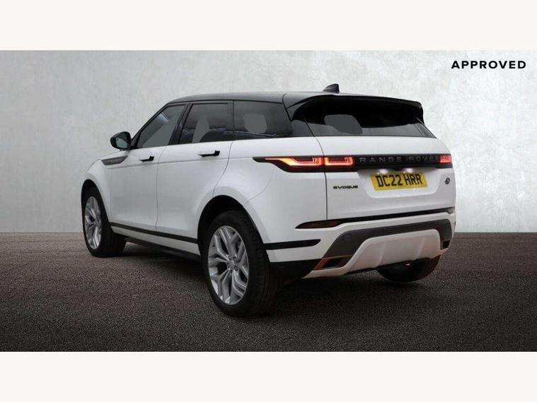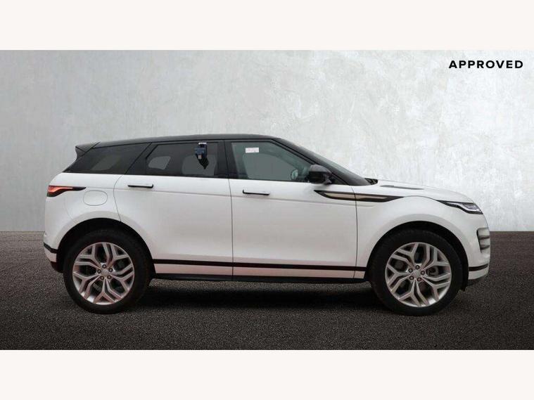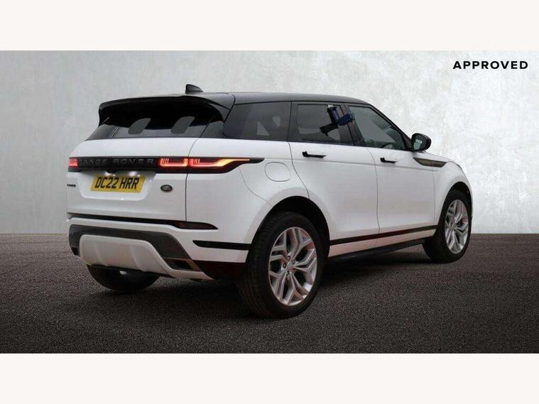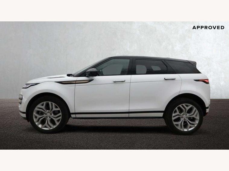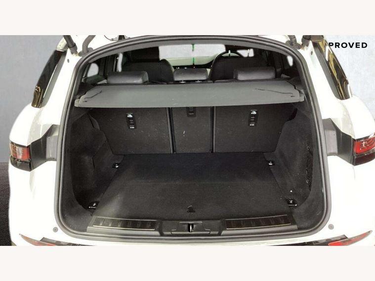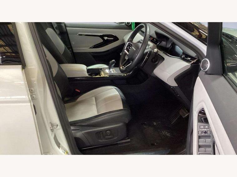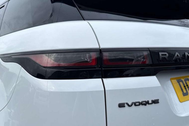Adaptive cruise control, Android Auto, Apple car play, Blind spot assist, Bluetooth connectivity, Brake pad wear indicator warning light, Driver condition monitor, eCall emergency system, Electronic power assisted steering (EPAS), Front and rear parking aid, InControl remote, Land Rover InControl apps, Lane keep assist, Pivi pro connected includes upgraded infotainment, connected navigation pro, Nuance speech licence, Push button starter, Rear collision monitor, Rear traffic monitor, Traffic sign recognition with adaptive speed limiter, Voice control system, All terrain progress control, Efficient Driveline, Large fuel tank, Passive suspension, Terrain Response 2 Auto, Digital Audio Broadcast radio-DAB, Steering wheel mounted controls, Auto headlights, Automatic headlight levelling, Electric windows with one touch open/close and anti trap, Evoque and R-Dynamic badge, Flush deployable exterior door handles, Heated rear window with timer, Heated washer jets, Heated windscreen, Power fold, auto-dimming, heated door mirrors with approach lights and auto dimming driver side, Rain sensing windscreen wipers, Rear fog lights, Rear side wing doors, Rear wiper, Tailgate spoiler, Third brake light, 40:20:40 split folding rear seats with centre headrest and armrest, Ambient interior lighting, Bright metal pedals, Isofix system on outer rear seats, Overhead lighting console, Overhead stowage for sunglasses, Passive front head restraints, Rear air vents, Rear centre headrest, Rear head restraints, Satin chrome gearshift paddles, Single passenger seat, Sunvisors with illuminated vanity mirrors, Twin sliding front centre armrest, 3 rear 3 point seatbelts, Anti-lock braking system (ABS), Customer configurable autolock, DSC - Dynamic Stability Control, Electronic brake force distribution, Electronic parking brake, Electronic traction control, Emergency braking, Front and rear seatbelt reminder, Hill descent control, Hill launch assist, Low traction launch, Power operated child locks, Roll stability control, Six airbags - Driver and passenger airbags/driver knee airbag/front side airbag and curtain airbags, Torque vectoring brake, Tyre pressure monitoring system, Alarm, Immobiliser, Intrusion sensor, Keyless entry, Locking wheel nuts,