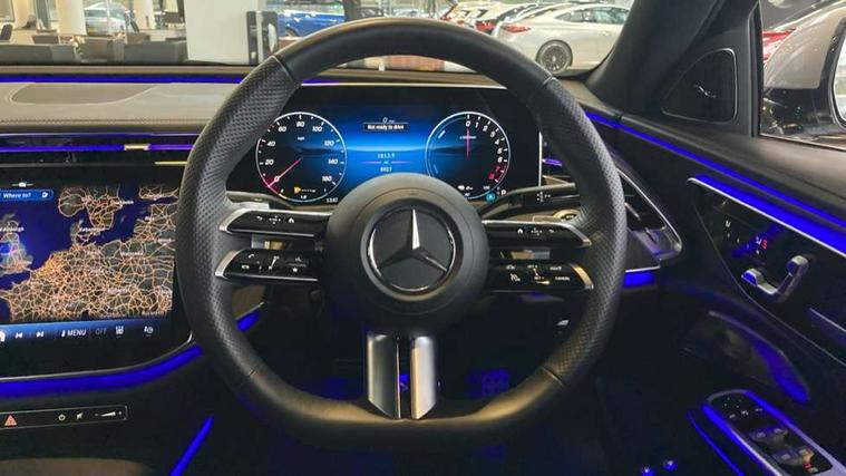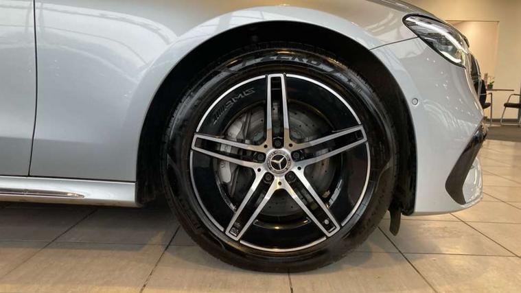 12.3" Driver display screen, 14.4" central media display, 5G Communications module, Acoustic presence indicator, Attention assist, Augmented reality navigation, Blind spot assist, Brake wear warning display, Direct steer speed sensitive steering, ECO start/stop function, Emergency call assistance, Evasive manoeuvre support, Fluorescent jacket for driver, Hard disc navigation, Head up Display, MBUX navigation premium, MBUX voice control, Mercedes connect me, Outside temperature display, Preinstallation for live traffic, Remote and charging services plus, Remote bootlid closing, Selfie and video camera, Service indicator (ASSYST), Status display for rear seat belts in instrument cluster, Trip computer in multifunction display showing current fuel consumption, Wireless charging, Wireless smartphone integration with Apple CarPlay and Android auto, 5m Domestic charging cable, 5m Public charging cable, 9G TRONIC automatic transmission, AC charging, Agility control suspension, Sporty engine sound system, Burmester 4D premium sound system, DAB Digital radio, Preinstallation for MBUX Entertainment Plus, Sound visualisation, 3rd brake light, Acoustic glass, Adaptive brake lights, Aerial integrated in rear window, AMG bodystyling, Auto dimming driver's door mirror, Auto dimming rear view mirror, Black radiator grille, Digital air vent control, Electric folding door mirrors, Electric windows with one touch opening/closing and obstruction sensors, Electrically adjustable and heated door mirrors, Heat insulating privacy glass, LED daytime running lights, LED digital light with adaptive highbeam assist plus, Pre-installation for roof rail systems, Rear boot, Rear side wing doors, Surround lighting with logo projection, 3 seat bench in 2nd row, 4 way lumbar support, Active ambient lighting, AMG brushed stainless steel sports pedals with rubber studs, AMG floor mats, AMG line interior, Automatic child seat recognition sensor, Central stowage compartment with USB socket for use with Android Auto and Apple CarPlay, Comfort seats, Courtesy lights in rear grab handles with reading light functionality, Folding rear seat backrest, Front centre armrest with stowage compartment, Glove compartment - lockable, air conditioned and illuminated, Head restraints for driver and front passenger (four-way adjustability) and in rear (two-way), Heated front seats, Illuminated door sills, Multifunction sports steering wheel in nappa leather, Roof liner in black fabric, Seat occupancy sensor for front passenger seat, Single front passenger seat, Sunvisors with illuminated vanity mirrors, Thermotronic 4 zone climate control, Keyless Go comfort package - E Class, Leather package - E Class, Memory package - E Class, Parking package with 360 degree camera - E Class, USB plus package - E Class, 3x3 point rear seatbelts, Active bonnet pedestrian safety measure which detects an impact and raises bonnet, Adaptive brake system with HOLD function and brake drying in the wet, Anti-lock braking system (ABS), Automatic front passenger airbag deactivation, Central airbag, Childproof locks manually operated for rear doors and electrically operated for rear power windows, Driver and adaptive front passenger airbags, Electronic parking brake, Electronic Stability Programme, Hill start assist, ISOFIX child seat attachment points two outer rear seats, Knee airbags, Pedestrian protection, Pre-Safe anticipatory safety system, Tyre pressure monitoring system, Warning triangle and first aid kit, Window airbags, Alarm system with interior monitoring, Central locking with interior switch, automatic locking and crash sensor with emergency opening function, Dashcam, Digital vehicle key, Guard 360 degree vehicle protection plus, Increased anti theft protection, Urban guard vehicle protection plus, Open pore black ash wood centre console trim, 19" AMG 5 twin spoke bi colour alloy wheels, Summer tyres, Tirefit,