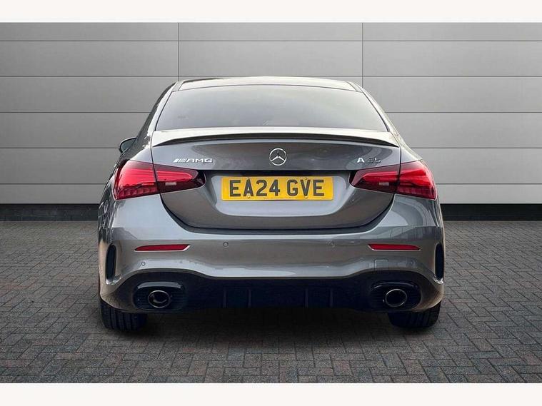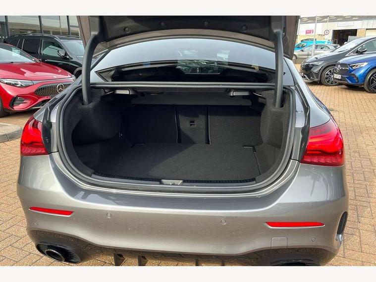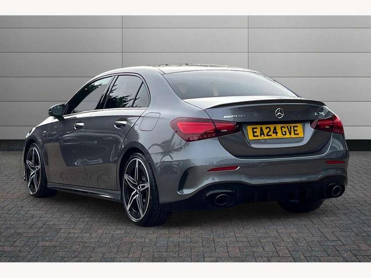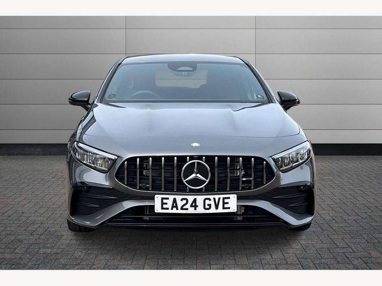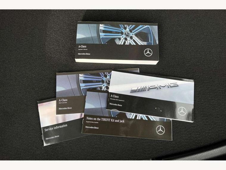 10.25 inch touchscreen central media display, 10.25" Digital instrument cluster display screen, Attention assist, Blind spot assist, Brake pad wear indicator warning light, Car wash mode, Cruise control + speed limiter, Direct steering, Direction indicators with lane change function, Dual bluetooth interfaces, DYNAMIC SELECT with driving programs (Slippery, Comfort, Sport, Sport+ and Individual), ECO start/stop function, Engine start/stop button, Fluid level warning indicator for fuel, oil, coolant and washer fluid, Fluorescent jacket for driver, Hard-disk navigation, Hey Mercedes Voice activation, Lamp failure indicator, Lane keeping system, MBUX augmented reality for navigation, Mercedes me connect including emergency call system, accident recovery, breakdown and maintenance management, Mercedes me remote services, Outside temperature gauge, Owners manual in English, Pre-installation of private car share, Preinstallation for Mercedes Benz link, Remote boot closing, Service indicator (ASSYST), Smartphone integration with Apple CarPlay and Android auto, Speed limit assist, Speed sensitive power steering, Trip computer in multifunction display with current consumption indicator, Wireless charging, AMG suspension, DAB Digital radio, MBUX multimedia system, Mercedes Benz advanced sound system (225 W) with 10 speakers, 1 central speaker, speakers on doors, a tweeter on door, one sub woofer + boost amplifier, 4 Electric Front and Rear windows, Adaptive brake lights, AMG body styling - AMG front apron with front splitter and AMG rear apron and visible exhaust tailpipe trim elements, AMG Front apron with flics as air deflector elements on the outer air intakes, AMG radiator grille with twin blade lamella and AMG Lettering, AMG Rear apron with specific diffuser look with four vertical fins and two round chrome plated tailpipe trim elements with a diameter of 90 mm, AMG spoiler lip on roof, Beltline strips in High gloss Black, Body colour bumpers, Body colour door handles with chrome inserts, Body colour side skirt, Electric adjustable and heated door mirrors with integrated LED side indicators, Front splitter and trim elements on the louvres in the outer air inlets, Front wings wheel arches with TURBO 4MATIC lettering, Headlamp assist automatic headlamp activation, Heat insulating dark tinted rear and rear side windows, Heated glass rear windscreen + timer control, LED High Performance headlamps including integral LED daytime running lamps and adaptive highbeam assist, LED tail lamp, Privacy glass, Radio aerial, Rain sensing windscreen wipers with two sensitivity settings, Rear boot, Rear fog lights, Rear side wing doors, Third brake light featuring LED technology, Wider wheel arches for AMG wheels, Window line trim strip in black, 3 seat bench in 2nd row, 4 way lumbar support, 40:20:40 split folding rear seats, Air conditioning - Two zone thermotronic luxury automatic climate control with display, AMG Performance steering wheel in nappa leather, Automatic child seat recognition sensor, Black air vents with surround in silver chrome, Black roof lining, Brushed stainless steel sports pedals with rubber studs, Floor mats with AMG lettering, Front centre armrest with stowage, Front seat backs luggage nets, Front sports seats with adjustable head restraints, Heated front seats, Height/reach adjustable steering column, Illuminated AMG front door sills with changeable cover, Interior lighting - 64 colour Ambient lighting, Interior mirror with reading lamps in black and frameless, Rear armrest with 2 cupholders, Seat occupancy sensor for front passenger seat, Silver coloured aluminium gear shift paddles on steering wheel, Single front passenger seat, Stowage compartment in centre console with retractable cover, Sunvisors with illuminated vanity mirrors, Twin front cupholders, AMG night pack - A Class, Keyless go comfort pack - A Class, Light and sight pack - A Class, Mirror package - A Class, Parking pack - A Class, Seat comfort pack - A Class, USB pack plus - A Class, 3 rear 3 point seatbelts, ABS with Brake Assist, Active bonnet, Active brake assist includes forward collision warning system with autonomous braking, Adaptive brake assist with hold function and hill start assist, Black seatbelts, Bonnet with power domes, Childproof locks manually operated for rear doors and electrically operated for rear power windows, Crash responsive emergency lighting, Driver and passenger head and side airbags, Drivers knee airbag, Dual stage driver/passenger airbags, Electronic parking brake, ESP curve dynamic assist, ESP with ASR, Exit warning, Front and rear seatbelt reminder, Front brake calipers with AMG lettering, ISOFIX and top tether child seat fixing points in two outer rear seats, Tyre pressure monitoring system, Warning triangle and first aid kit, Window airbags, Alarm system/interior protection/immobiliser, Guard 360 degree vehicle protection, Remote central locking and crash sensor with emergency opening function, Light longitudinal grain aluminium trim, 19" AMG 5 twin spoke light alloy wheels aerodynamically optimised painted in matt black with high sheen finish, Summer tyres, Tirefit sealant kit,