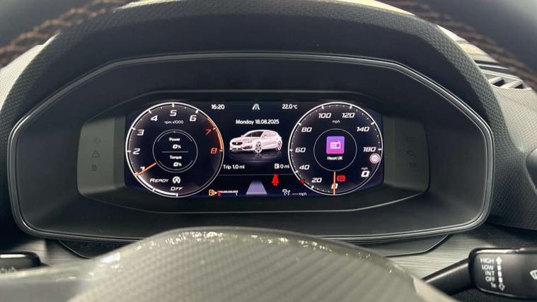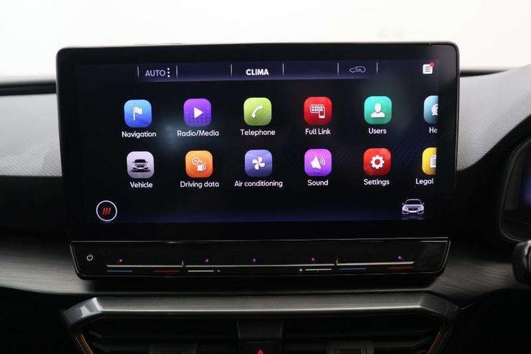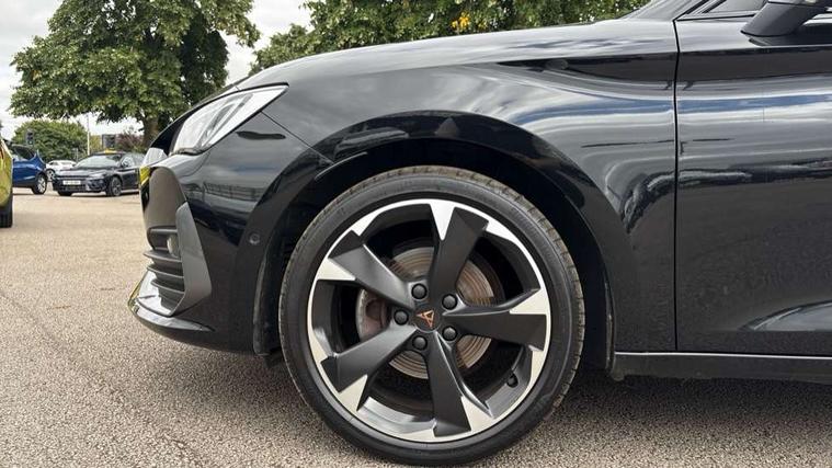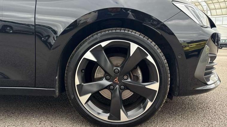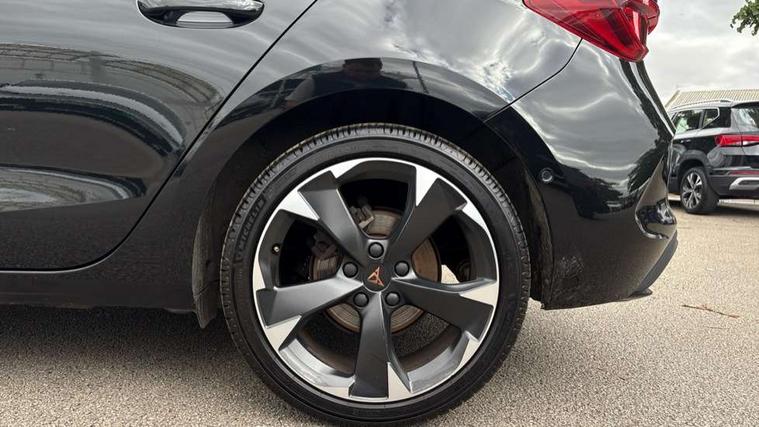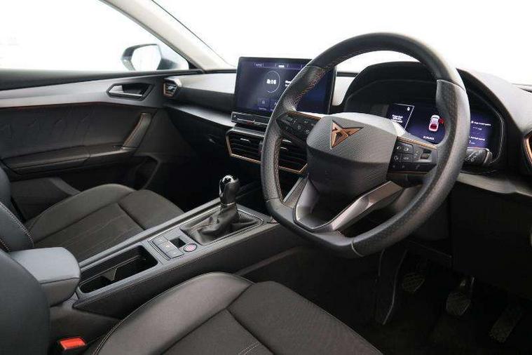 CUPRA drive profile selection with (Comfort/Sport/Individual), throttle response and gearshift mode, Digital cockpit, E-call, Electro mechanical speed sensitive power steering, Four x USB Type C ports (2 in front and 2 in rear), Front assist with forward collision warning braking reaction to vehicles, pedestrians and cyclists, Full link smartphone integration with Mirror Link, wireless Apple CarPlay and wired Google Android Auto, Lane assist, Lockable tailgate, Park assist (inc front/rear parking sensors), Rear view camera, RPM, trip computer, outside temp gauge, instrument light brightness, low fuel warning light, lights on reminder, gearshift indicator, Service interval indicator, Start/stop system with regenerative braking, Wireless phone charger, Sports suspension, Auxiliary input socket, Auto dimming rear view mirror, Body colour door handles, Body coloured bumpers, Cupra sports bumpers, Dark tinted rear windows, Electric front/rear windows, Electrically adjustable, heated and folding door mirrors, LED front fog lamps with cornering function, LED headlights with dynamic turn signals, tail lights, rear fog lights with rear coast to coast lighting, Rain sensing wipers, Rear diffuser with twin exhaust pipe on each side, Rear side wing doors, Rear wash/wipe, Separate daytime running light with automatic headlight control and coming home feature, Third brake light, 12v power supply in centre console, 3 seat bench in 2nd row, 5 headrests, 60/40 split rear bench seat with armrest, Ambient lighting with glovebox, footwell and single monocolour, Cupra Leather flat bottomed, perforated steering wheel, Driver/passenger manual seat height adjustment, Folding boot cover, Front and rear reading lights X 4, Front centre armrest, Front seats manual lumbar adjustment, Grey headlining, Height/reach adjust steering wheel, Illuminated interior front door sills, ISOFIX points in outer rear seats with top tether anchorage points, Jack and tool kit, PVC/Cloth upholstery with copper stitching, Single front passenger seat, Sports seats, Sunvisors with illuminated mirror, Three zone climate control, Media system plus with navigation pack - Leon Cupra, Safety and driving pack (M) - Cupra leon, 3 point seatbelts on all rear seats, ABS, Brake control system - ESC and brake booster, Child proof door locks, Cupra black brake calipers, Driver and front passenger airbags with front passenger airbag de-activation, front side and curtain airbags, Electronic parking brake, Extended safety system - seat belt tensioner, window closure and hazard lights, Hill hold control, Rear disc brakes, Seat belt reminder for front and rear seats, Tiredness recognition system, Tyre pressure monitoring system, Anti theft alarm system with interior monitoring in cab, backup horn and towing protection, KESSY Advanced - Keyless start, keyless entry, Locking wheel bolts, Chrome and copper interior detailing, 18" Machined sport black and silver alloy wheels with 92Y tyres,