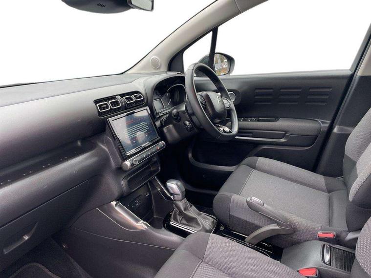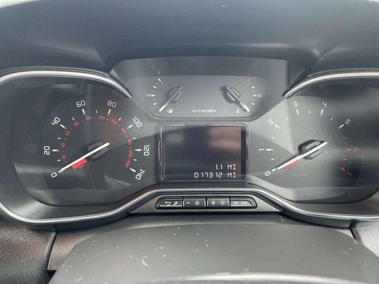 7" Capacitive colour touchscreen, Citroen connect box emergency and assistance system, Coffee Break Alert, Cruise control with speed limiter, Lane departure warning system, Mirror screen with Apple CarPlay and Android auto, Multi function on board trip computer, Rear parking sensors, Rev counter, Speed limit recognition and recommendation, Variable assistance power steering, Bluetooth hands free and media streaming, Citroen connected DAB radio with 6 speakers, Steering wheel mounted controls for stereo and telephone, Automatic lights, Automatic windscreen wipers, Body colour painted door handles, Dark tinted rear windows, Electric front windows + one touch + anti-pinch, Electric rear windows + one touch facility, Electrically adjustable door mirrors, Electrically folding door mirrors, Front and rear aluminium effect bumper protectors, Front fog lights with cornering function, Halogen headlights with LED daytime running lights, Heated door mirrors, Monotone roof, Rear wiper, 12V socket in rear of vehicle, 60/40 split folding rear seat, Automatic air conditioning, Boot light, Driver and passenger sunvisor with courtesy mirror, Driver's armrest, Flex load/Pull out boot floor, Floor console central storage with 2 cup holders, Front and rear door storage, Front and rear head restraints, Front courtesy reading lights, Height adjustable driver's seat, Height and reach adjustable steering wheel, Leather gear knob, Leather steering wheel with satin chrome inserts and radio controls, Mica cloth upholstery with standard ambience, Rear isofix mounting points (outside seats) with top tether, 5 three point inertia reel seatbelts, ABS with Electronic brakeforce distribution and Emergency braking assistance, Active safety brake, Automatic illumination of hazard warning lights, Driver, front passenger, front lateral and curtain airbags, Drivers/passengers and rear seats unfastened seat belt warning, ESC (Electronic Stability Control), Forward collision alert, Front seatbelt pretensioners, Hill start assist function, Mono-tone horn, Rear door child safety locks, Tyre pressure monitor, Automatic door and boot locking when moving off with automatic unlocking in case of impact, Immobiliser, Perimetric and volumetric anti theft alarm, Remote central locking + deadlocks, Compressor with puncture repair kit,