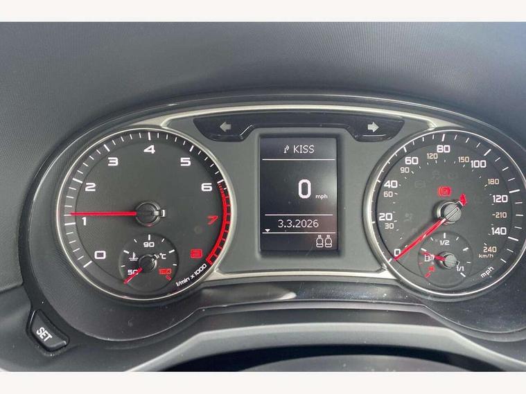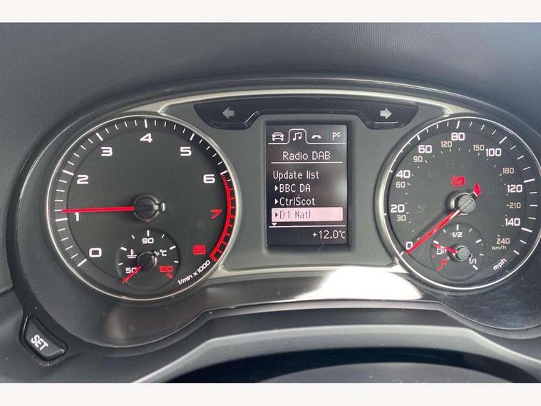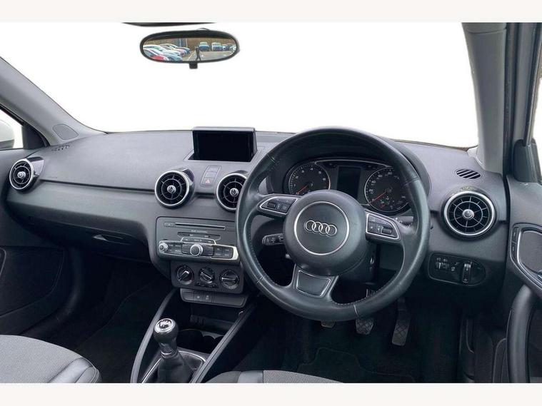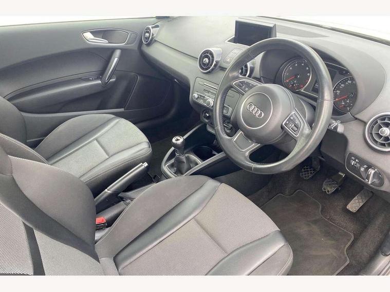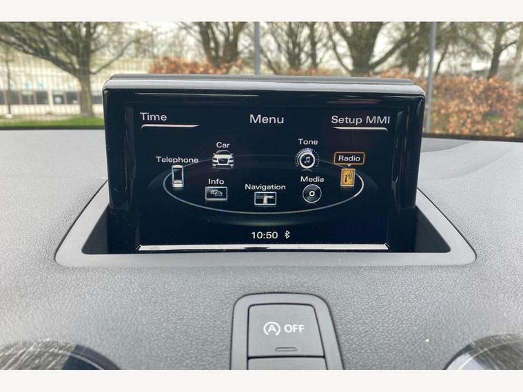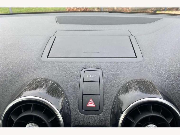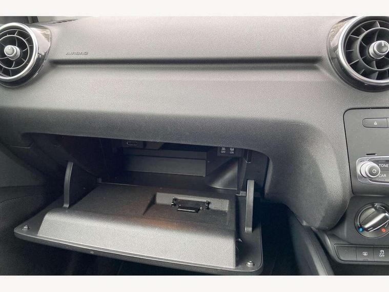 Cruise control, Driver's information system, Electro-mechanical PAS, Low washer fluid indicator, Service interval indicator, Voice control system, Additional SD card reader, Audi music interface, Bluetooth audio streaming, DAB Digital radio, Adaptive brake lights, Body coloured bumpers, Body coloured door mirrors, Electric adjustable door mirrors, Electric front windows, Front fog lights, Heat insulating glass, Heated door mirrors, Heated rear windscreen, Rear wiper, 12V Accessory socket in centre console, 3 spoke leather multifunction sports steering wheel, Adjustable rear head restraints, Cupholders in centre console, Door sills trims with aluminium inlays, Front floor mats, Front head restraints, Front seats - 'Easy Entry', Front sports seats, Height adjustable front seats, Illuminated glovebox, Isofix attachments on outer rear seats, Jack and tool kit, Leather handbrake, Lumbar adjustment for front seats, Rake/reach adjustable steering wheel, Split folding rear seats, Titanium grey cloth headlining, Non smoking pack - A1, ABS/EBD, Brake assist function, Driver and passenger side airbags, Driver/Front Passenger airbags, EDL, ESP with ASR, First aid kit, Front and rear seatbelt reminder, Front passenger airbag deactivation, Head airbags, Height adjustable front seatbelts, Rear three point seatbelts x 2, Tyre pressure monitor, Warning triangle, Locking wheel bolts, Remote control central locking, Thatcham category 1 alarm + immobiliser, Tyre repair kit,