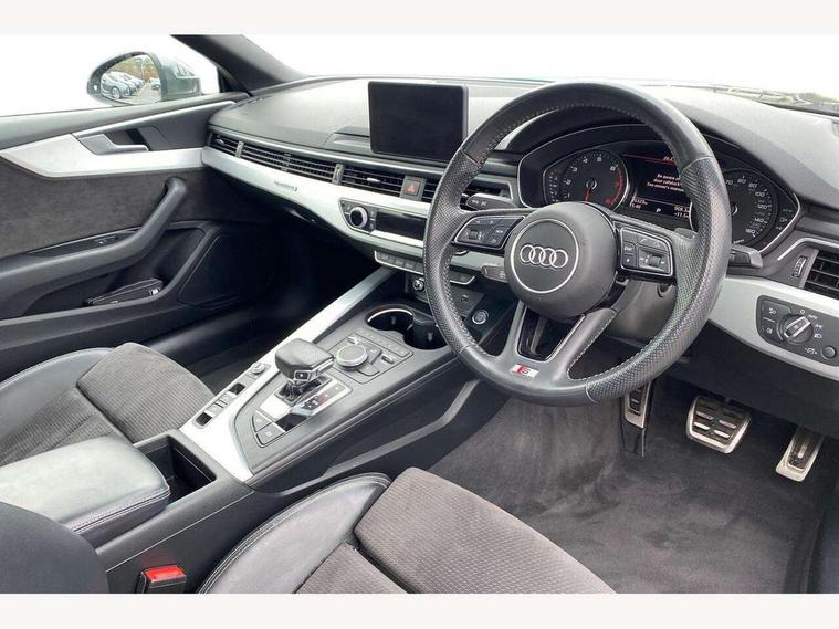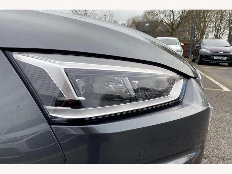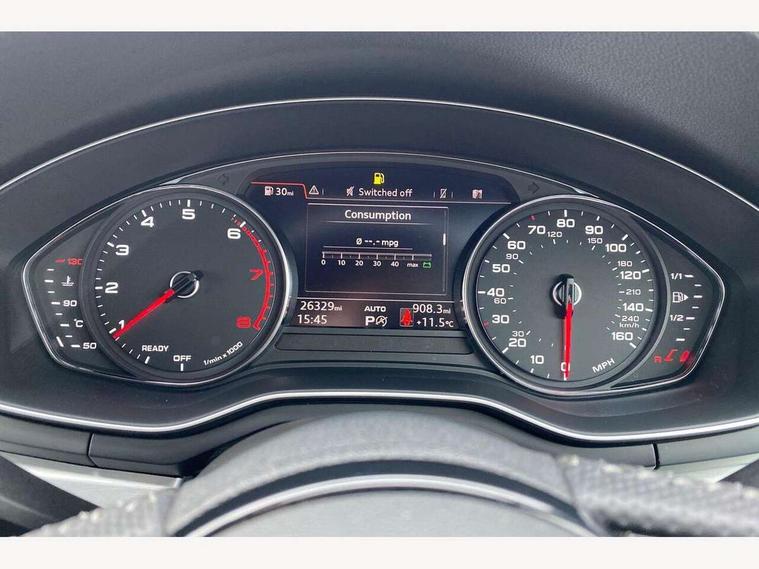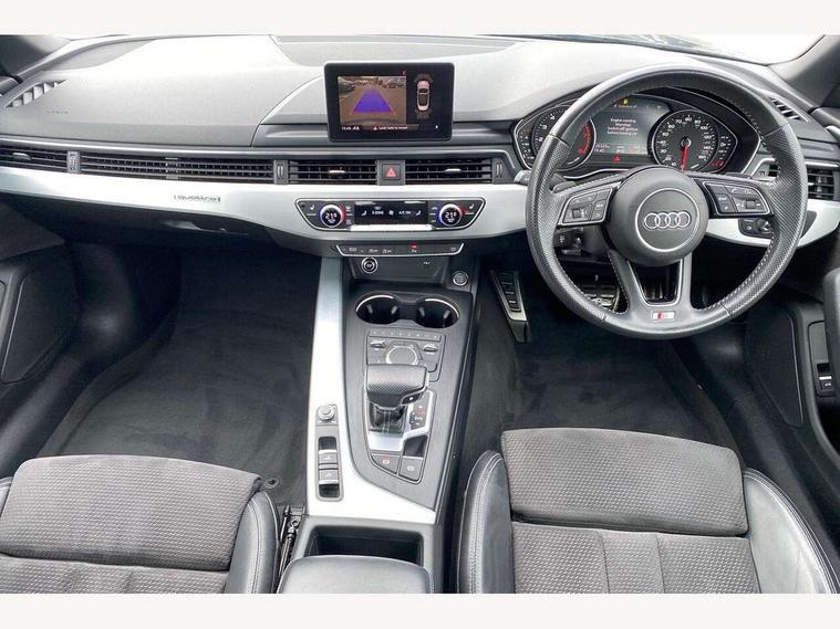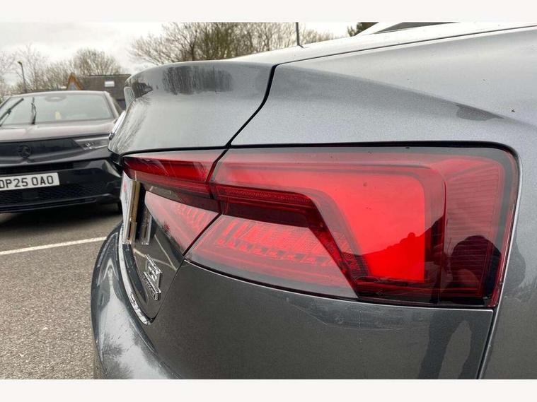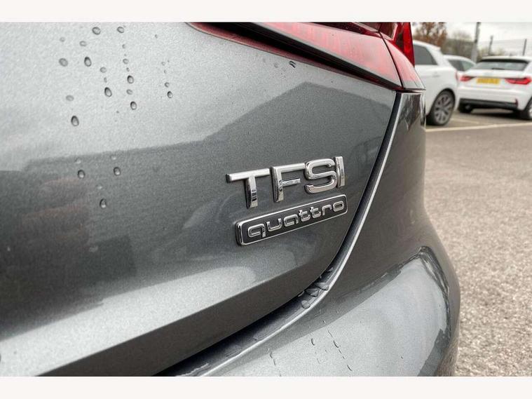Audi drive select, Audi parking system plus with front and rear sensors, Audi smartphone interface, Colour driver's information system display, Electric boot release, Electro-mechanical PAS, Mobile telephone preparation - bluetooth interface, SD card based satellite navigation system, Seat belt microphone, Service interval indicator, Voice control system, 2 x USB charging port with aux input socket, CD player, DAB Digital radio, MMI radio plus with 7" colour MMI screen and MMI controller, Two SDXC card slots, Air inlets in titanium black, Auto dimming rear view mirror with acoustic windscreen, Body colour bumpers, Body coloured door mirrors, Chrome exhaust tailpipes, Electric adjustable heated door mirrors, Electric front windows, Front fog lights, Fully automatic acoustic hood, Heat insulated glass, Rain and light sensors, S Line body styling, S line sill plates, Twilight grey matt radiator grille in matt aluminium inlay, Twilight grey matt rear diffuser, Adjustable steering column, Automatic tri-zone climate control, Black headlining, Boot mat, Centre console with cupholders, Front centre armrest, Front head restraints, Front sports seats including electric lumbar support, Front/rear floor mats, Illuminated door sills, Isofix front passenger and rear seat preparation, Jack and tool kit, Perforated leather gearknob, Rear headrests, Split folding rear seat, Stainless steel pedals and foot rest, Top tether anchor plate for isofix child seat, Non Smokers pack, ABS, ASR, Driver/Front Passenger airbags, Electromechanical parking brake, ESP + traction control, First aid kit, Front passenger airbag deactivation, Height adjustable front seatbelts, Hill hold function, Multi-Collision braking, Pre-sense city emergency braking system, Seatbelt warning, Side airbags, Tyre pressure monitor, Warning triangle, Anti theft system, Immobiliser, Keyless start, Locking wheel bolts, Remote central locking, Contrast stitching, Space saver spare wheel,