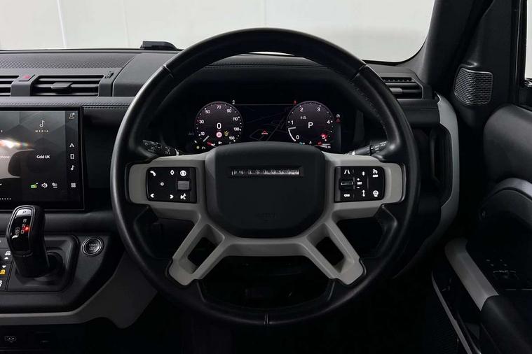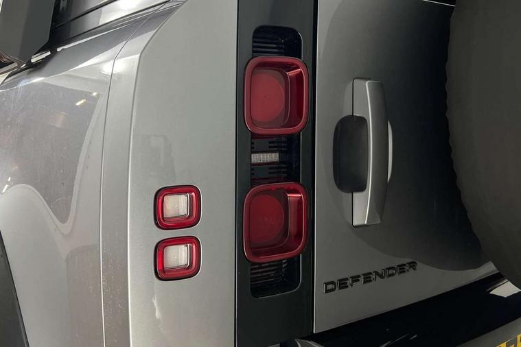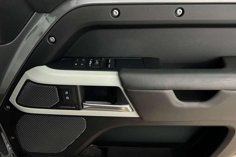 Customer Configurable Autolock, 11.4" touchscreen, 360 parking aid, 3D Surround Camera with 360 View, 180 Rear View, Front Traffic Detection, Forward Vehicle Guidance, Tow Hitch Assist and clear sight Ground View, Adaptive cruise control, Blind spot assist, Brake Hold, Driver condition monitor, Electric power assisted steering (EPAS), Lane keep assist, Low traction launch, Pivi pro connected, Rear collision monitor, Rear traffic monitor, Traffic sign recognition adaptive speed limiter, Trip computer, Tyre pressure monitor, Wade Sensing, Android Auto, Apple CarPlay, DAB Radio (Digital Audio Broadcasting), Meridian 280W sound audio system with 7 speakers with subwoofer, Alpine lights, Assisted tailgate, Auto High Beam Assist, Automatic headlight levelling, Automatic headlights and rain sensitive front wipers, Body coloured exterior Utility Panel, Centre high mounted stop light, ClearSight interior rear view mirror, Electric heated/power fold door mirrors with approach lights and auto dimming driver side, Electric windows with one touch open/close and anti-trap, Follow me home lighting, Front fog lights, Heated rear window with timer, Heated windscreen, LED tail light, Privacy glass, Puddle lights, Rear fog lights, Rear wash wiper, Side-hinged tailgate, Standard roof, X-Dynamic Badge, X-Dynamic Treadplate, 14 way heated and cooled electric adjustable memory front seats with 4 way manual headrests, Additional lashing points, Black exposed rear recovery eyes, Dual zone climate control, Durable rubber cabin flooring, Electric adjustable steering column, Footwell lights, Front jump seat and folding front centre armrest, Front passenger seat ISOFIX points, Full height bulkhead behind row 1 seats, Glovebox storage, High sided rubber mats, Loadspace cover, Loadspace hooks, Loadspace rubber mat, Lockable and illuminated underfloor storage compartment (x1 under boot floor and x1 accessible via rear doors), Overhead stowage for sunglasses, Premium cabin lighting, Rear centre headrest, Rear reading light, Signature graphic, Standard seating configuration, Sunvisors with illuminated vanity mirrors, Twin front cupholders with cover, Upgraded loadspace LED lighting, Online pack - Defender with data plan, Brake pad wear indicator, Electronic traction control, Emergency braking, Front airbags, with passenger seat occupant detector, Power operated child locks, Remote for (e-Call, Optimised assistance call, InControl app, Climate, beep and flash and door), Seat belt reminder, Intrusion sensor, Keyless entry system, Locking wheel nuts, 8 speed automatic transmission, ABS and EBA, All wheel drive, CBC - (Cornering brake control), Dynamic stability control, Electronic brake force distribution, Electronic park brake, Gradient acceleration control, Hill Descent Control, Hill start assist, Particulate filter (DPF), Push button start, Roll stability control, Trailer stability assist, Twin speed transfer box (high/low range), Extended leather upgrade,