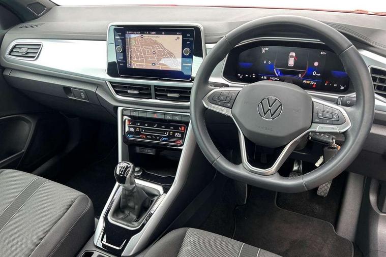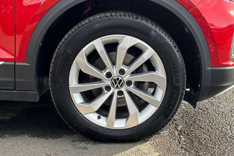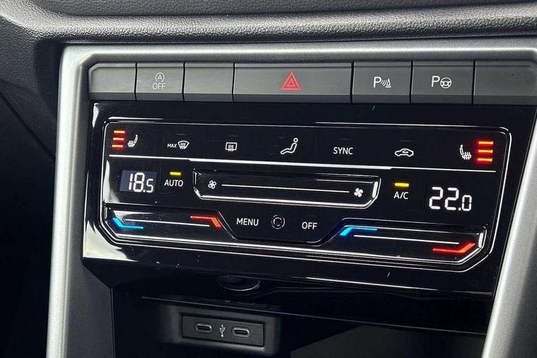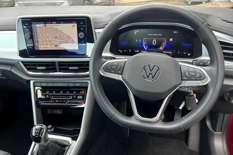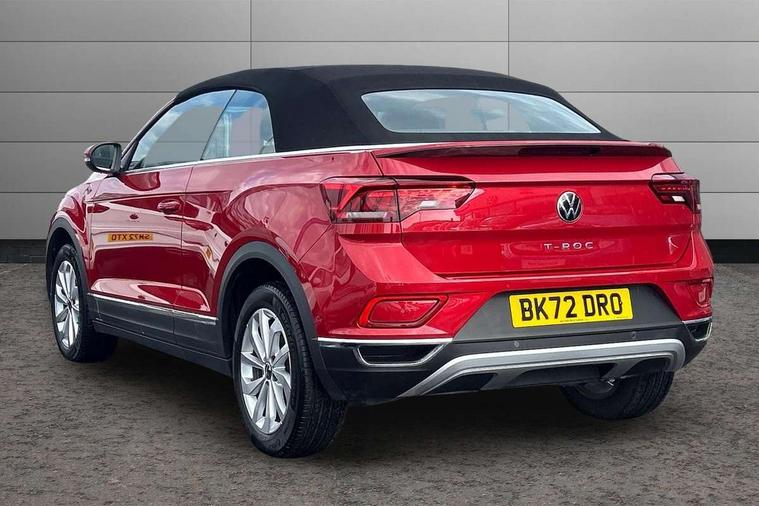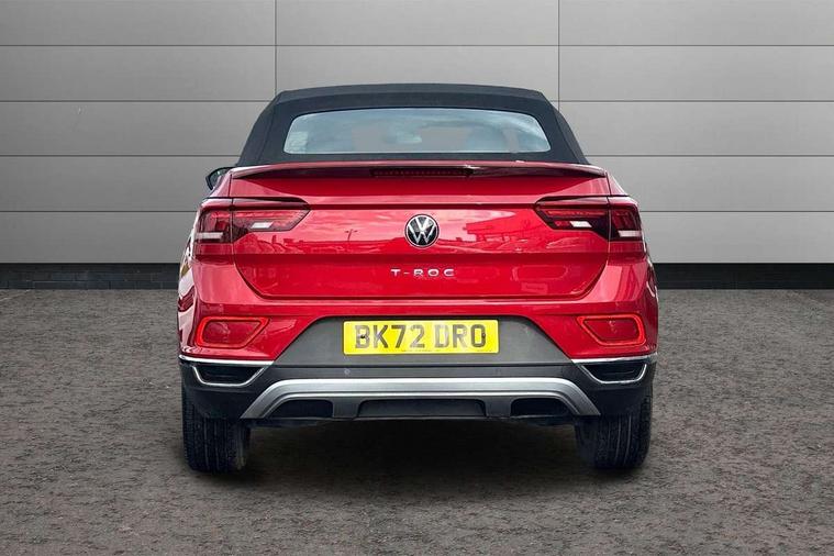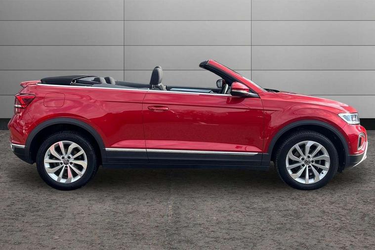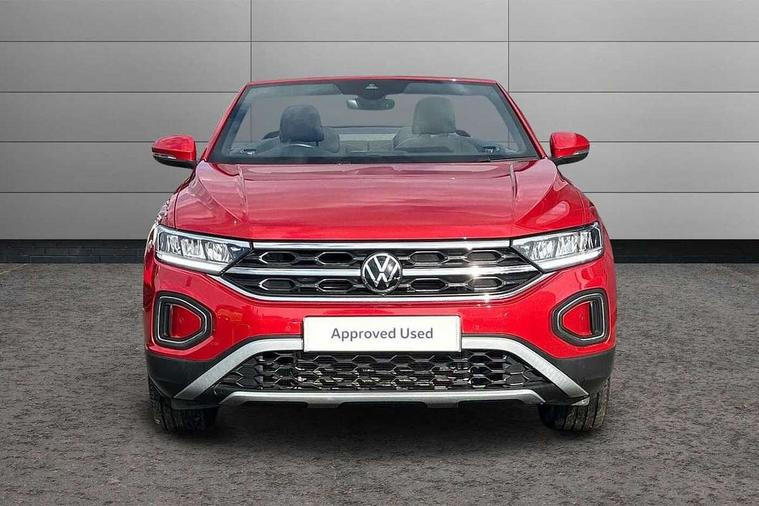 Adaptive cruise control and speed limiter, Bluetooth mobile phone interface, Brake pad wear indicator, Car information display, Driver alert system with fatigue detection, Driver tips and journey analysis, Emergency call service, Modified key software - reduce switch off time for key status change to Long no motion, Multifunction computer with visual gear change recommendation for fuel consumption, Multifunction front facing camera, Park assist including front and rear parking sensors, Speedo and rev counter, electronic odometer, trip, service interval display and exterior temperature gauge, Start/stop system with brake energy recovery, Tailgate/trunk lid release from outside, Warning sound and light for front seatbelts unfastened, Diversity antenna for FM reception, Music playback - MP3, WMA and AAC files, SMS functionality - read, compose and send SMS messages using touch-screen display, Title and cover art display, USB-C Interface and USB charging socket, We Connect and We Connect Plus functionality, Ambient lighting with logo projection, Auto dimming interior rear view mirror, Automatic hazard lights activation under emergency braking, Automatic headlight control with LED separate daytime running lights with coming/leaving home function, Black roof, Body colour door handles, Body colour rear spoiler, Body coloured bumpers and radiator grille with chrome trim and front fog lamps with chrome bezel, Chrome effect left and right trapezoid exhaust tailpipe fascia surround, Dark red rear combination lamps in LED technology, Dusk sensor, Exterior mirrors aspherical on driver side, convex on front passenger side, Headlight range control, Heat insulating glass windscreen, High level 3rd brake light, LED Headlights, LED rear number plate lights, Power operated canvas convertible top, Power windows with comfort operation and circuit breaker, Rain sensor, Rear boot, Rear exhaust tailpipe, Rear fog light on one side and reversing lights on both sides, Remote electrically foldable door mirrors, puddle lights and reverse activated passenger door mirror, Volkswagen roundel, Windscreen wiper with intermittent wipe light, Without exterior ambient lighting, 12V socket in centre console storage area, 2 LED front reading lights, 2 seat bench in 2nd row, 50:50 Split folding rear seat backrests with fixed rear seat bench, Air care climatronic air conditoning system with active combination filter and 2-zone temperature control, Black door lower parts with chrome trim, Chrome plated surround to light, mirror and window switch, Door and side trim panel with leatherette insert, Easy entry backrest release, Front and rear carpet mats with black stitching, Front centre armrest, Front cupholders x 2, Front door pockets, Front seat back storage pockets, Heated multi function steering wheel, Height/reach adjust steering wheel, Instrument lighting, white adjustable panel illumination, Interior light delay, Interior light in footwell, Interior lighting with switch off delay and contact switches on all doors, Interior white ambient lighting and surround lighting, Isofix child seat preparation, Lockable glove compartment with light, Luggage compartment lighting, Rear head restraints, Single front passenger seat, Sun visors with illuminated vanity mirrors, Driver assistance pack without proactive passenger protection - T-Roc cabriolet, 2 x 3-point seatbelts/outer rear seats with ECE label, Driver and front passenger airbag with front passenger airbag deactivation, Driver and front passenger safety-optimised head restraints, Drivers seatbelt reminder, Electronic parking brake, Electronic Stability Control (ESC) including ABS, ASR and EDL, Front and rear disc brakes, Front assist with autonomous emergency braking, Pedestrian monitoring, Predictive pedestrian protection, Rigid safety cell with front and rear crumple zones, Side airbag/thorax airbag system, for front passengers, Single tone horn, Three point height adjust front seatbelts + pretensioners, Tyre pressure loss indicator, Volkswagen roadside assistance, Anti-theft alarm system with interior protection and central locking system with SAFELOCK, radio remote control and 2 remote control folding keys, Electronic engine immobiliser, Trims for alloy wheels,