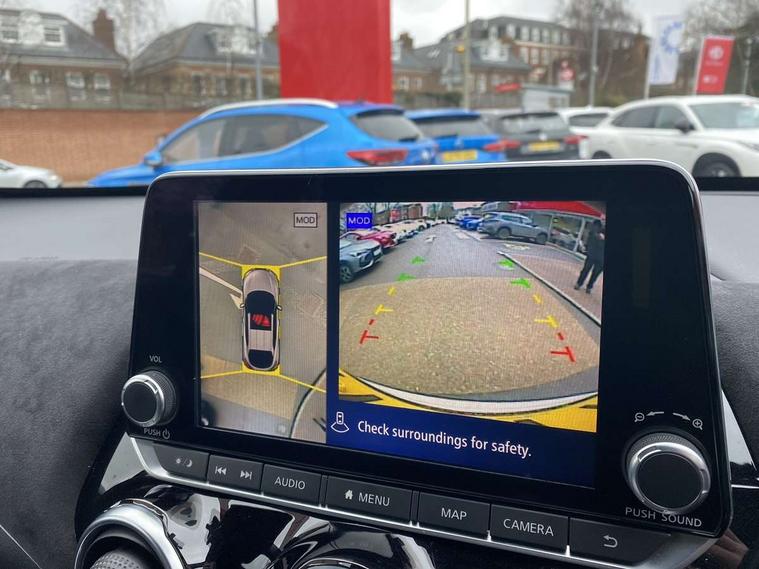 7" full colour TFT screen combimeter, 8" infotainment colour display with touch screen, Apple CarPlay and Google Android auto, Drive modes select (Eco, normal and sport), Emergency and breakdown call, Front parking sensor, Idle start/stop system, Intelligent lane intervention, Lane departure warning system, Nissan connect nav with TomTom traffic, Nissan connect services and Wifi connection, Outside temperature sensor, Power Steering, Rear parking sensor, Traffic sign recognition, Trip computer, Gasoline particulate filter, Bluetooth system, USB, Aux-in and 12V socket, Bose personal plus audio system with 8 speakers(4 speakers and 2 headrest speaker for driver and passenger seats), Bose personal sound stage control, DAB Digital radio, Front lower bumper painted in silver finisher, Rear console USB port, Auto dimming interior rear view mirror, Automatic hazard signal with emergency stop signal, Body colour bumpers, Body colour door handles, Electrically adjustable door mirrors with integrated indicators, Follow me home headlights, Front and rear electric window with one touch driver window, Heated and auto folding door mirrors, High beam assist, LED daytime running lights, LED front fog lights, LED headlamps, LED rear fog lamp, LED rear lamps, Rain sensor windscreen wipers, Rear privacy glass, Rear wiper, Thermaclear heated windscreen, Three blink turn signal, 3 height adjustable rear headrests, 60/40 split folding rear seat, Automatic climate control, Card holder on driver sunvisor, Door ambient lighting, Driver and passenger sliding and reclining seats, Driver seat back pocket, Driver side rear coat hanger, Driver/passenger sunvisors and vanity mirrors, Front and rear cabin lights, Front armrest, Front door pockets with bottle holders, Front head restraints, Front passenger isofix child seat anchorage point, Front/rear passenger grab handles, Gear console ambient circle lighting, Grey synthetic leather kneepad, Heated front seats, Height adjustable driver's seat, Height adjustable passenger seat, Internal chrome door handles, Leather gearshift knob, Leather steering wheel, Luggage board, Luggage space lighting, Monoform sporty seats, Multifunction steering wheel, Passenger seat back pocket, Rear door bottle holders, Steering wheel mounted gearshift paddles, Telescopic steering wheel adjustment, Two cupholders in front centre console, Two rear isofix child seat anchorage points with top tether, Voice recognition switch on steering wheel, Welcome light and console tray ambient lighting, ProPilot pack - Juke, ABS with EBD and brake assist, Active ride control, Active Trace Control, Driver and passenger airbags, Driver and passenger side airbags, Electric handbrake with auto hold function, Electronic Stability Programme (ESP), Front and rear curtain airbags, Height adjustable seatbelts, Hill start assist, Intelligent emergency braking with pedestrian and cyclist recognition, Seatbelt reminder for driver/front passenger and rear seats, Single tone horn, Three 3 point rear seatbelts, Traction control, Tyre pressure monitoring system, VDC Dynamic Vehicle Control, Ventilated rear brake discs, Alarm, Immobiliser, Intelligent Key with push button starter, Remote central locking, 19" Akari alloy wheels,