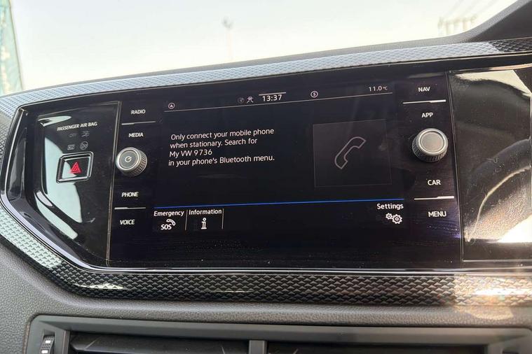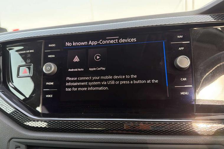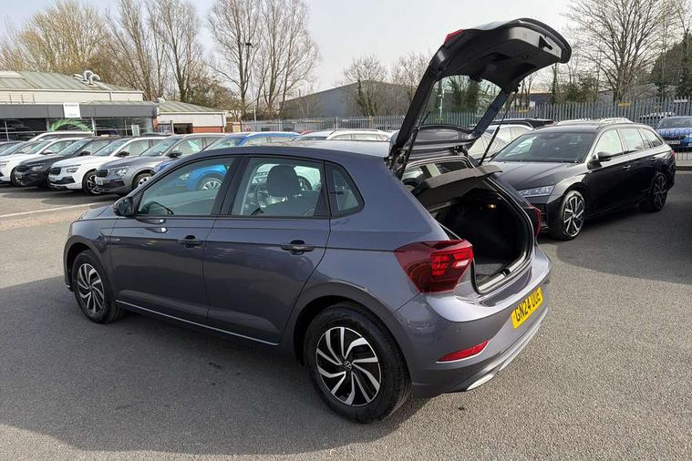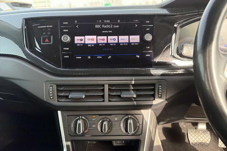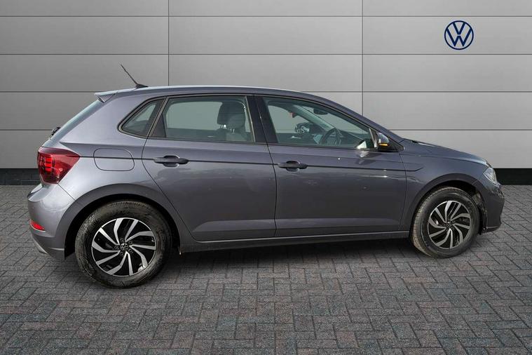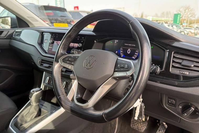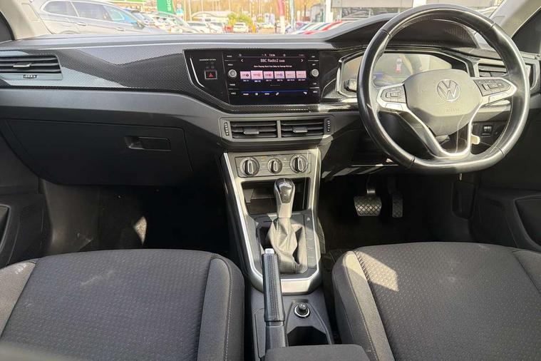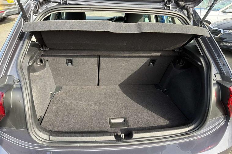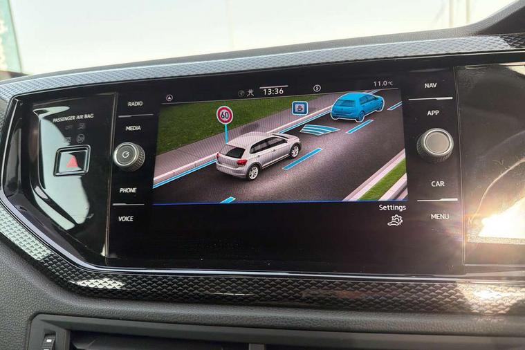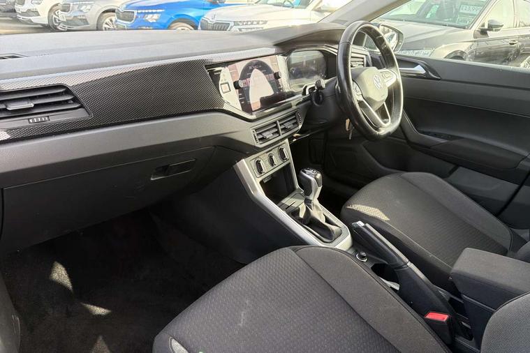 Adaptive cruise control with follow-to-stop and speed limiter, Advanced driver attention and drowsiness monitor, Bluetooth mobile phone interface, Dynamic road sign display, Emergency call service, Power assisted speed sensitive steering, Preparation for navigation system with media and internet package, Preparation for We connect and We connect plus, Speedo and rev counter, electronic odometer, trip, service interval display and exterior temperature gauge, Standard rear axle, Travel Assist - Lane keeping system and traffic jam assist, Travel assist including emergency assist, Trip computer, Warning signal and warning light for front and rear seatbelts not fastened, Washer fluid level indicator, Wireless app connect, Front wheel drive, Rear shock absorpion, Start-stop system with battery regeneration (recuperation - energy recovery during braking), DAB Digital radio, Diversity antenna for FM reception, Automatic dimming interior rear view mirror, Automatic headlight control with LED separate daytime running lights with coming/leaving home function, Body colour bumpers with chrome inserts, Body colour door handles, Body colour door mirrors, Electric front windows, Engine badge deletion, Headlight range adjustment, Heat insulating and laminated safety glass windshield, Heat insulating darkened glass in side and rear windows, Heat insulating glass windscreen, LED Headlights, LED rear combination lamps, Power folding adjustable/heated exterior mirrors and front passenger exterior mirror lowering function, Rain sensor, Rear electric windows, Rear fog light, Rear side wing doors, Rear windscreen washer and wiper with interval delay, Third brake light, 12V power socket in centre console, 2 front and 2 rear reading lights with switch off delay and dimmer, 2 USB-C ports in the front, 2 USB-C charging sockets on the center console in the rear, 3 rear head restraints, 60/40 split folding rear seat and rear seat bench not split, Ceramique roof lining, Chrome plated radiator grille inserts, air vent surrounds and light switch surrounds, Door and side trim panel, Driver and front passenger seat height adjustment, Driver/passenger sunvisors with illuminated vanity mirrors, Front centre armrest, Front seat backrest storage pockets, Front standard seats, Handbrake lever handle in leather, Hartley/Thomas cloth upholstery, Headliner in recycled material, Isofix child seat preparation easy-fit (for two outer rear seats, and front passenger seat) compatible with I-size, Leather trimmed gear knob, Luggage compartment cover, Luggage compartment lighting, Removable luggage compartment floor, Single front passenger seat, Standard climatic zones, Standard pedal cluster, Three spoke leather wrapped multifunction steering wheel with shifting paddles, Light and vision pack - Polo, 3 point height adj front seatbelts + pretensioners, 3x3 point rear seatbelts, ABS, Driver and front passenger airbag with front passenger airbag deactivation, Drivers and front passengers safety optimised head restraints, ESC (Electronic stability control) + EDL (Electronic Differntial lock) and ASR (Traction control), Extended and predictive pedestrian/ cyclist protection, Front assist with autonomous emergency braking (for Adaptive Cruise Control ACC up to 130 mph), Front curtain and side airbags with center airbag, Front disc brakes, Hill hold control, Manual child lock in rear doors, Rear drum brakes, Single tone horn, Tyre pressure loss indicator, Alarm with interior protection, Anti-theft alarm system with interior monitoring, backup horn, and towing protection, Anti-theft wheel bolts, Electronic engine immobiliser, Lava stone black gloss/matt decorative inserts in dash and front door panels, Low rolling resistance tyres,