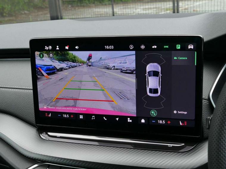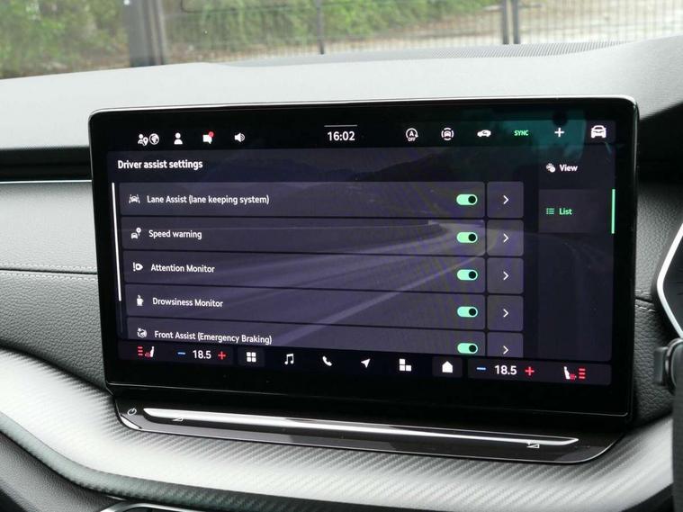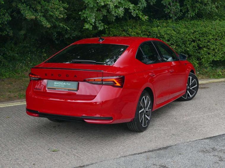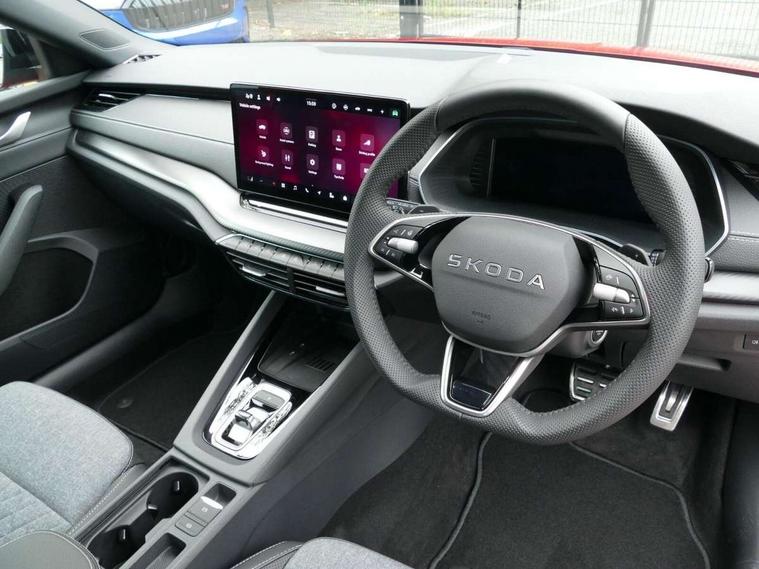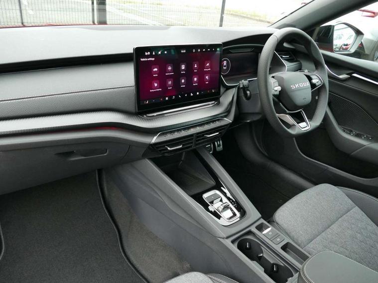 1x USB Typc C port in rear view mirror, 4x USB Type C ports - 2x in front centre console and 2x in rear (45W), Drive mode selection, Driver fatigue sensor, eCall emergency system, Front assist system, Progressive dynamic steering, Traffic sign recognition, Turn Assist, Virtual Cockpit - 10.25" digital display, Voice control system, Wireless charging (15W) with cooling function, Wireless SmartLink for Apple CarPlay and Android Auto, Sports suspension with 15mm lower, 13" touchscreen display with navigation, DAB Digital radio, Aero front windscreen wipers with intermittent function, Auto dimming rear view mirror, Body colour bumpers, Body colour door handles, Chrome strip in lower front bumper, Electric front and rear windows, Exterior gloss black sports styling including front grille, window surrounds, door mirrors and badging, Gloss black diffuser, Gloss black spoiler, Heated rear windscreen, High beam control, High level third brake light, Ice scraper in fuel cap, LED daytime running lights, Logo projection in front doors, Rain and light sensors, Rear fog light on one side and reversing lights on both sides, Rear privacy glass, Rear side wing doors, Rear wiper, 12 volt socket in boot, 3 rear headrests, 3 seat bench in 2nd row, 4 foldable roof handles, Aluminium pedals, Boot net programme, Electric auxiliary air heater, Front head restraints, Front sport seats, Heated front seats, Illuminated glovebox, Interior door handles in dark chrome, Jumbo Box storage, Luggage compartment lighting x2 lights, Mechanical rear seat release from boot, Parcel shelf - folding, Single front passenger seat, Steering wheel in black leather with black stitching, Storage compartment under passenger seat, Storage compartments in left and right of boot, Sun visors with mirrors, Sunglasses storage, Three spoke leather sports multifunction steering wheel with paddles, Ticket holder, Umbrella in door panel, Unsplit rear bench seat, split folding backrest with centre armrest with cupholder, SportLine Design Selection pack - Octavia, 3x3 point rear seat belts, Alarm with interior monitoring, tilt sensor and back up horn, Curtain airbags and front side airbags, Driver and front passenger airbags, Drivers knee airbag, Electronic parking brake, ESC including ABS, EBV, MSR, ASR, EDS, HBA, DSR, Front central airbag, Hill hold assist, ISOFIX on front passenger seat and outer rear seats, Passenger airbag deactivate switch, Three point seat belts in front and rear, Two tone horn, Tyre pressure monitor, Visual and acoustic seat belt reminder, Warning reflectors in front door, Anti-theft wheel bolts, Keyless entry and start/stop, Remote central locking, Gloss black air vent surrounds,