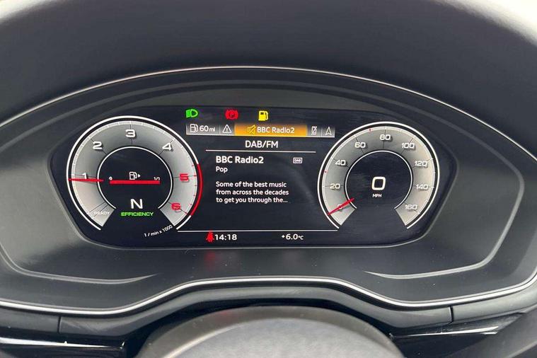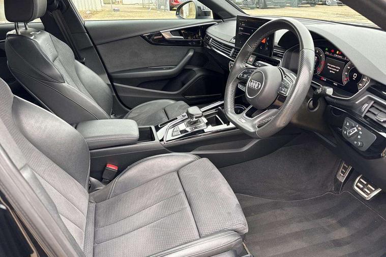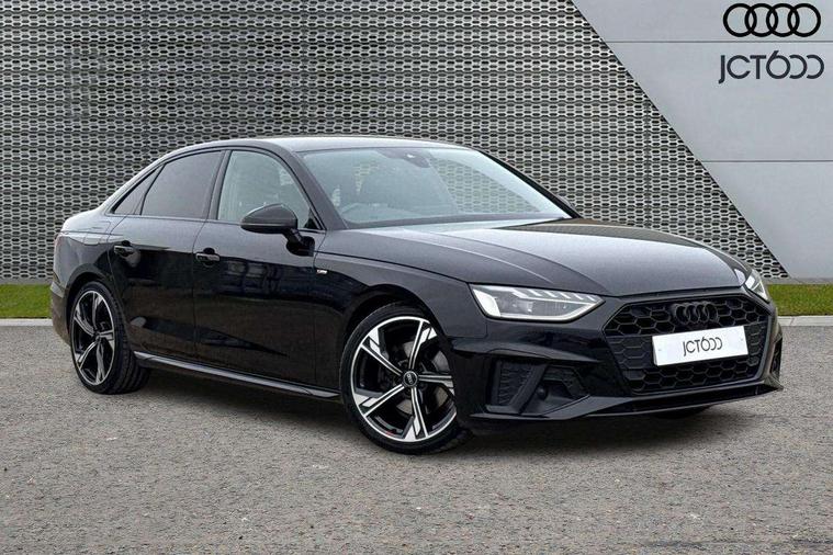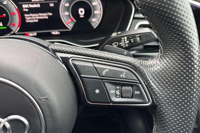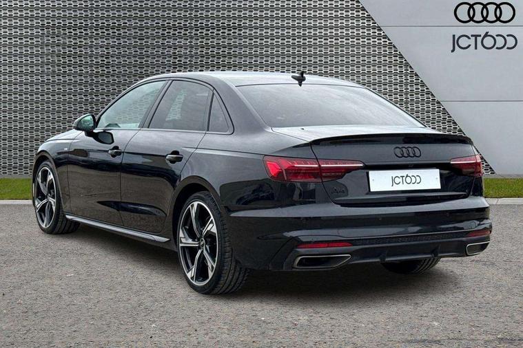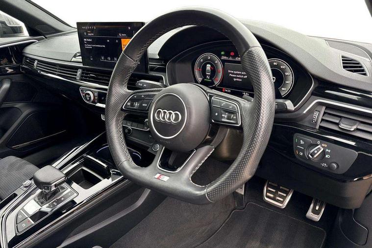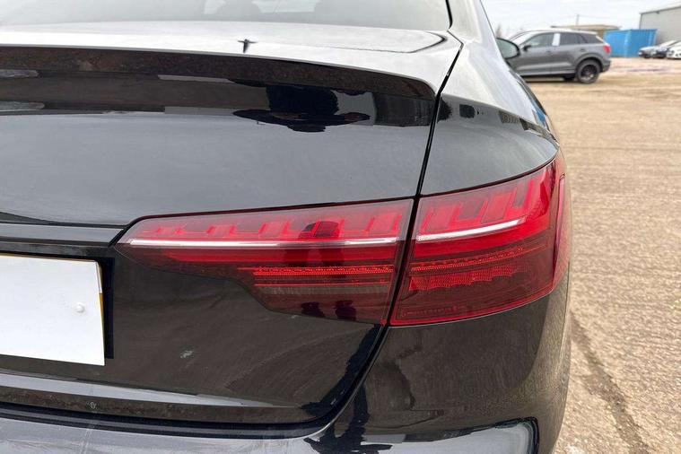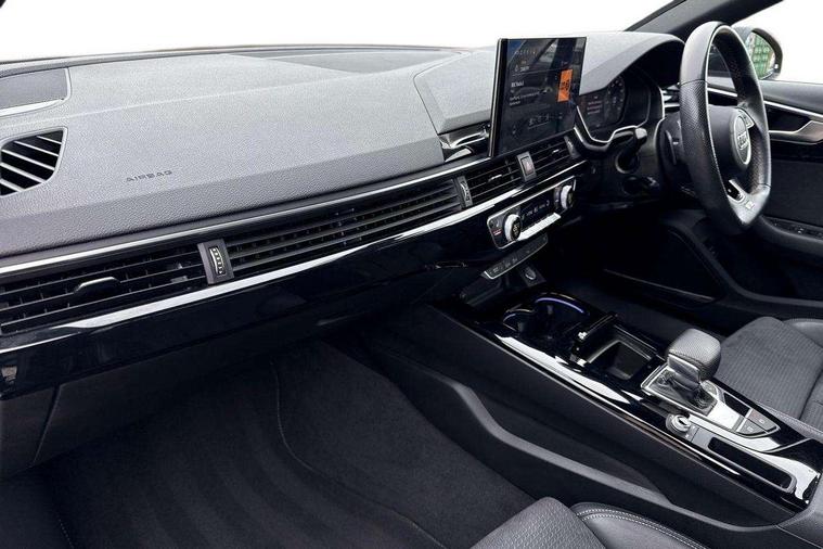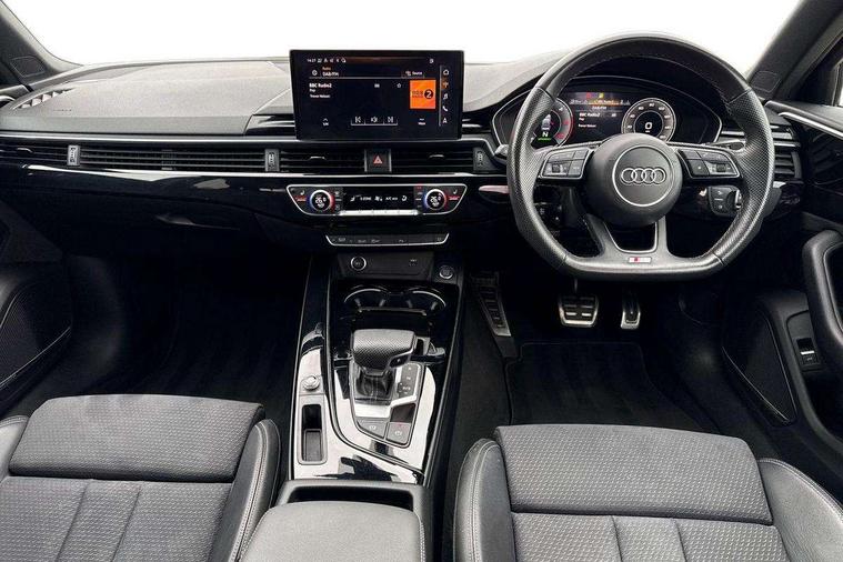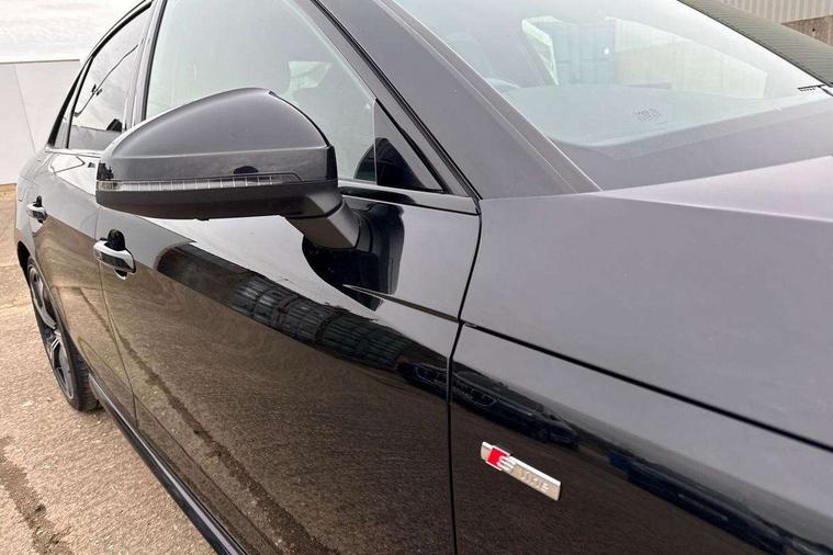 Audi connect safety and service (e-call), Audi connect with Amazon Alexa Integration, Audi drive select, Audi smartphone interface, Audi virtual cockpit, Automatic start-stop system with coasting functionality and efficiency programme, Bluetooth interface, Electric boot lid release, Electromechanical power steering, Email, calendar and text messages displayed via MMI, MMI Navigation plus with MMI touch includes 10.1" high resolution colour MMI display, 3D map, Voice control system, Sports suspension lowered by 23mm, 2 USB charging ports, 8 passive loudspeakers, DAB digital radio reception, Auto dimming rear view mirror, Black Audi rings and black badging (model name in black badging, no engine badging), Body colour door handles, Body colour front spoiler lip, Body colour side sill trim, Electrically folding auto dimming/adjustable/heated door mirrors with LED side indicators and kerb view function for passenger side, Front and rear bumpers with side skirts, Front wing badges, Grained matt black side air inlets with matt aluminium silver inlay, High beam assistant, High gloss black B pillar trims and triangular rear door trim, LED headlights with LED rear lights + dynamic rear indicators + headlight adjustment and high beam, turning light + LED daytime running lights, LED third brake light, Matt aluminium silver tailpipe trim, Privacy glass, Rain and light sensors, Rear boot, Rear diffuser in matt titanium black with trim strip in matt aluminium silver, Rear side wing doors, Variable intermittent front wash/wipe, Windscreen with acoustic glazing, 4 way electric lumbar support for driver and front passenger, 40/20/40 split folding 3 rear seat bench in 3 parts with rear centre armrest, Black cloth headlining, Black perforated leather gearknob, Contrast stitching on seats, steering wheel and gear lever gaiter, Deluxe 3 zone electronic climate control, Door sill trims with aluminium inlay, Front and rear head restraints, Front centre armrest, Heated front seats, Illuminated door sill trims with S logo, ISOFIX child seat mounting and top tether, Manual seat adjustment, Single front passenger seat, Stainless steel pedals and foot rest, Black styling pack - A4 Saloon, LED Interior light pack - A4/S4, 3 rear seatbelts, 6 airbags - Driver, front passenger, curtain and side windows, Electronic Stabilisation Control (ESC) including ABS, ASR and EDL, Hill hold assist, Multi collision brake assist, Pop-up bonnet for pedestrian protection, Pre sense city, Rear door child safety locks, Seatbelt monitoring, Warning triangle and first aid kit, Anti theft alarm, Anti theft wheel bolts, Central locking, Keyless Go, Piano black finish inlay, Tool kit, Tyre repair kit,