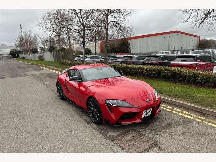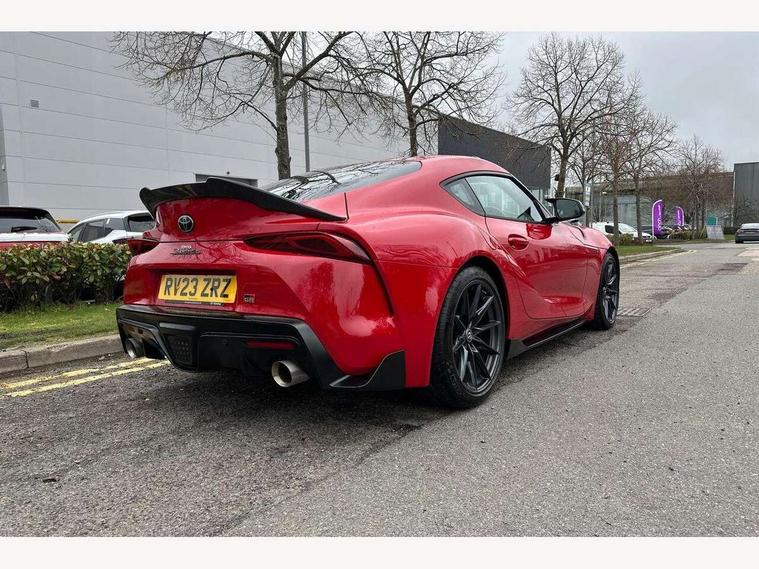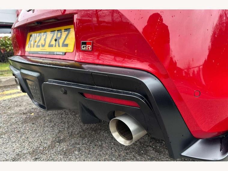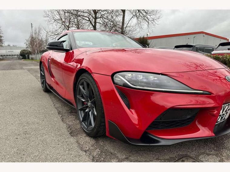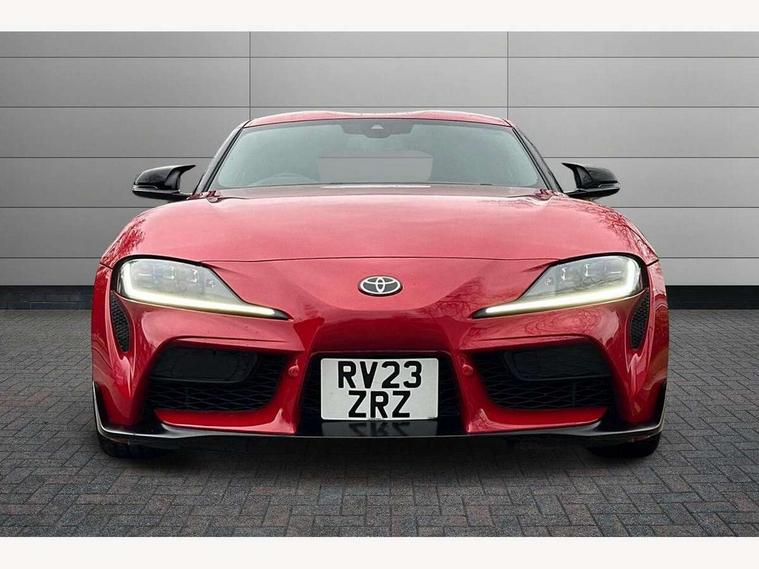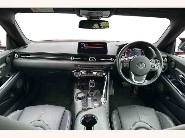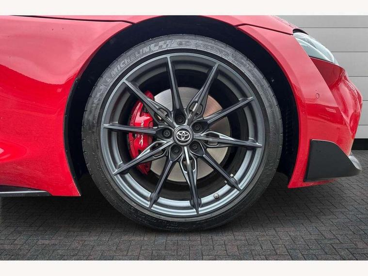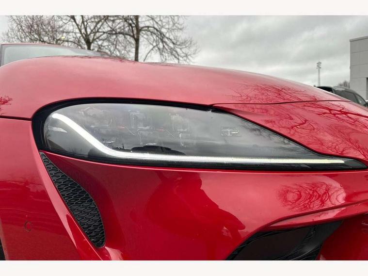 Adaptive cruise control with stop and go + steering wheel, Blind spot monitor, Digital speedometer, Drive mode selector, Driver and passenger microphone, Driving assistant, Dynamic guide lines on reversing camera, E-call, Front and rear parking sensors, Head up Display, Lane departure alert with steering control, PAS, Push button start, Rear collision warning, Rear cross traffic alert, Rear view camera, Remote boot door release in cabin, Reversing camera display, Road sign assist - RSA, Service indicator, Smartphone integration with Apple CarPlay, Sport drive mode, Telephone switch on steering wheel, Toyota supra connect, Voice recognition, Wireless charger, Active sports differential, Adaptive variable suspension, Vehicle Stability Control (VSC), 2.1 amp USB connector, 8.8" toyota touch multimedia system, Audio switch on steering wheel, DAB Radio (Digital Audio Broadcasting), Glass integrated antenna, JBL premium sound system with 12 speakers, Toyota touch 2 with go navigation system, Auto adaptive high beam, Auto cut off headlamps, Auto dimming inside rear view mirror, Auto headlights, Automatic headlight levelling, Automatically retractable door mirrors, Boot door release with push button, Brushed stainless steel dual exhaust pipes, Cornering light, Electric heated door mirrors, Electric windows, Electrically adjustable driver and passenger door mirrors with memory function, Electrochrome door mirrors, Follow me home headlights, Indicators integrated on door mirrors, LED daytime running lamp, LED dual beam projector headlights, LED front light guide, LED High mounted stop light, LED Indicators, LED rear fog light, Piano black door mirrors, Rain sensing wipers, Rear tailgate, Rear window defogger, Rear wiper, Reverse gear tilting passenger door mirror, Variable intermittent windscreen wipers, 12V power outlet - Boot, 12v power outlet - front, 3 spoke leather steering wheel, Active sound control, Adjustable speed limiter switch on steering wheel, Aluminium door scuff plates, Aluminium pedals, Boot light, Chrome insert on centre console, Door courtesy light, Driver and front passenger personal light, Driver and passenger seatback pockets, Driver seat memory function, Driver/passenger sunvisors and illuminated vanity mirrors, Dual zone automatic air conditioning, Electrically adjustable lumbar support for driver and front passenger, Electrically height adjustable, sliding and reclining front seats, Floor mats, Front cupholders, Front footwell lights, Front headrests, Front sports seats, Gear shift indicator, Glovebox light, Heated driver and front passenger seats, Leather upholstery, Luggage holding net, Luggage hooks, Multimedia switches on steering wheel, Paddle shift controls, Power tilting cushion on driver seat, Single front passenger seat, Tilt/telescopic adjustable steering wheel, Tonneau cover, Voice recognition switch on steering wheel, Anti lock braking system (ABS) with brake assist, Child restraint system, Electronic parking brake, Emergency brake light system (EBS), Front seatbelt reminder, Pre-collision system with pedestrian and cyclist detection, Red sports rear brake caliper, Red supra Sports front brake caliper, Start holding control, Supplemental restraint system (SRS) airbags - 7 airbags including driver, front passenger, curtain, side and knee airbags, Traction control, Tyre pressure monitoring system, Immobiliser, Intrusion sensor, Locking wheel nuts, Power door locks, Remote door lock, Smart entry, Speed detecting automatic door lock, Tilt detection sensors, Carbon dash insert, 19" 10 spoke gunmetal grey forged alloy wheels, Tyre repair kit,