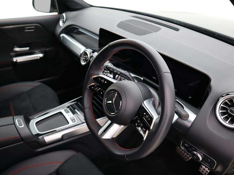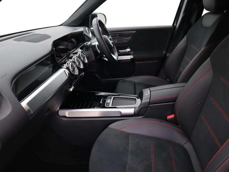 10.25 inch touchscreen central media display, 10.25" Digital instrument cluster display screen, Attention assist - Monitors steering behaviour and long journey fatigue, Blind spot assist, Bluetooth connection, Brake pad wear indicator warning light, Car wash mode, Direct steering, DYNAMIC SELECT with a choice of driving modes (ECO, Comfort, Sport and Individual), ECO start/stop function, Exit warning function, Fingerprint scanner, Fluid level warning indicator for fuel, oil, coolant and washer fluid, Hard disk navigation, Hey Mercedes Voice activation, Lamp failure indicator, Lane keep assist, MBUX navigation premium, Mercedes me connect including emergency call system, accident recovery, breakdown and maintenance management, Mercedes me remote services, Outside temperature gauge, Owners manual and service booklet in English, Pre-installation of private car share, Preinstallation for parking damage notification, Radio aerial integrated into front and rear windshields, Service indicator (ASSYST), Smartphone integration with Apple CarPlay and Android auto, Speed limit assist, Tailgate, Trip computer in multifunction display with current consumption indicator, Wireless charging, Comfort suspension with ride height lowering, Rear axle multi-link, DAB digital radio tuner, MBUX multimedia system, Mercedes Benz sound system (100 W) with 6 speakers, Pre installation for Mercedes Benz Link, Adaptive brake lights, Adaptive high beam assist, AMG front apron with front splitter in the colour of the vehicle with chrome trim element, AMG rear apron with visible tailpipe trim and chrome trim element, AMG specific/dual flow exhaust pipes in chrome (non-functional), Beltline trim and window line trim strip in high gloss aluminium, Black grained side sill trim with chrome inlay, Body coloured door handles, Electric adjustable and heated door mirrors with integrated LED side indicators, Front and rear electric windows, Headlamp assist automatic headlamp activation, Heat insulating dark tinted glass for rear side windows and rear window, Heated glass rear windscreen + timer control, High level LED third brake light, Interior mirror with black reading lamps and frameless, LED high performance headlamps with integrated LED daytime running lights, LED tail lamp, Polished aluminium roof rails, Radiator grille as a diamond grille with chrome pins and central Mercedes star, Rain sensor windscreen wipers with two sensitivity stages, Rear fog lamp, Rear side wing doors, Rear wiper, Single louvre in matt grey with chrome inserts and black highlights, Two visible tailpipe trim elements exhaust, Wheel arch liners in the colour of the vehicle, 3 seat bench in 2nd row, 3 twin spoke flattened multifunction steering wheel in nappa leather - horizontal twin spoke in high gloss black, vertical twin spoke in silver chrome, 4 way adjustable lumbar support, 40:20:40 split folding rear seats, Air vents with silver chrome surrounds, AMG floor mats, AMG sports pedals with brushed stainless steel surfaces and black rubber studs, Artico man-made leather/Microcut microfibre upholstery, Automatic child seat recognition sensor, Black roof lining, Fluorescent jacket, Front and rear headrests, Front centre armrest with stowage, Galvanised steering wheel gearshift paddles in silver chrome, Heated front seats, Height adjustable head restraints, Height/reach adjustable steering column, Interior lighting - 64 colour Ambient lighting, Luggage net on driver/front passenger seat backrest, Single front passenger seat, Sports seats, Stowage compartment in centre console with retractable cover and double cupholder and 12 V socket, Sun visors with illuminated vanity mirrors, THERMATIC automatic climate control, Third row of seats for two people on rear seat, Twin front cup holders, Two outer rear seat isofix and top tether child seat fixing points, Easy pack tailgate, Interior lighting with light and sight pack - GLB, KEYLESS-GO Comfort package - GLB, Mirror package - GLB, Parking Package with reversing camera - GLB, Seat comfort package - GLB, USB package plus - GLB, 3 rear 3 point seatbelts, Active bonnet pedestrain safety measure which detects an impact and raises bonnet by 65mm, Active brake assist includes forward collision warning system with autonomous braking, Adaptive brake assist with hold function and hill start assist, Airbags - kneebag for driver, Anti-lock braking system (ABS) with brake assist, Black seatbelts, Bonnet with power domes, Childproof locks manually operated for rear doors and electrically operated for rear power windows, Crash responsive emergency lighting, Curve dynamic assist, Driver and front passenger head and sidebags, Driver and front passenger windowbags, Dual stage driver and front passenger airbags, Electric parking brake, Electronic stability programme with acceleration skid control, Front and rear seatbelt reminder, Front brake callipers with Mercedes Benz lettering, Front passenger seat occupancy sensor, Perforated front brake discs, Tyre pressure monitoring system, Warning triangle and first aid kit, Guard 360 degree vehicle protection - Anti theft alarm system, tow away protection with visual, acoustic warning and alarm, Interior monitoring system, KEYLESS-GO starting function, Remote central locking and crash sensor with emergency opening function, Thatcham category 1 alarm system with immobiliser and interior protection, Carbon structure trim, 19" AMG 5 twin spoke light alloy wheels aerodynamically optimised, painted in high-gloss black and with a high-sheen finish RTG, Summer tyres, Tirefit tyre sealant kit,