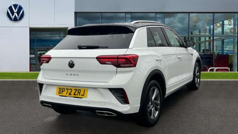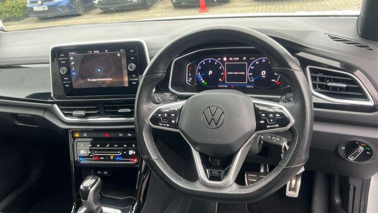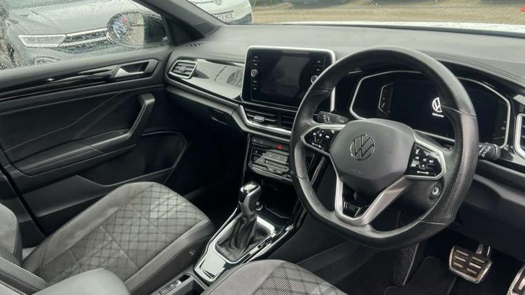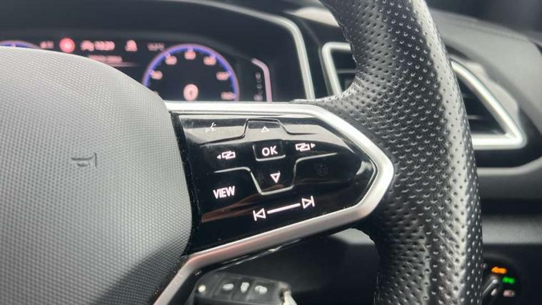 10.25" Digital cockpit pro, Bluetooth mobile phone interface, Driver alert system with fatigue detection, Driver tips and journey analysis, Emergency call service, Lane keeping system Lane Assist, Modified key software - reduce switch off time for key status change to Long no motion, Online services, Park assist including front and rear parking sensors, Service interval indicator, Tailgate/trunk lid release from outside, Think blue trainer driver tips and journey analysis, Warning sound and light for front seatbelts unfastened, Wireless app connect, Battery regeneration during braking, Start/stop function with battery regeneration, Diversity antenna for FM reception, Front and rear 6 speakers, Music playback - MP3, WMA and AAC files, Premium USB cable in choice of either Apple or Android smartphone compatibility, SD card slot, Simultaneous pairing of 2 compatible mobile devices, Title and cover art display, We Connect and We Connect Plus functionality, 3rd brake light, Auto dimming interior rear view mirror, Automatic hazard lights activation under emergency braking, Automatic headlight control with LED separate daytime running lights with coming/leaving home function, Extended roof spoiler, Exterior mirrors aspherical on driver side, convex on front passenger side, External USB type C socket and charging sockets, Front windscreen wiper with intermittent wipe and 4 position delay, Heated rear window, LED Plus headlamps, LED rear combination lamps, LED rear number plate lights, LED tail lamp rear comination lamps, Power windows with comfort operation and circuit breaker, R-Line design body coloured bumpers, Rain sensor, Rear exhaust tailpipe, Rear fog light on one side and reversing lights on both sides, Rear side wing doors, Rear wash/wipe with intermittent wipe setting, Remote electrically foldable door mirrors, puddle lights and reverse activated passenger's door mirror, 12V power socket in centre console, 3 rear head restraints, 3 seat bench in 2nd row, 4 load lashing points in luggage compartment, Air care climatronic air conditoning system with active combination filter and 2-zone temperature control, Black roof lining, Chrome plated radiator grille inserts, air vent surrounds and light switch surrounds, Door and side trim panel with leatherette insert, Drawer under drivers seat, Front + rear carpet mats, Front centre armrest, Front cupholders x 2, Front footwell illumination, Front reading light, Front scuff plates with R logo, Instrument lighting, white adjustable panel illumination, Interior ambient lighting and surround lighting, Interior light delay, Isofix child seat preparation, Leather gearshift handle, Load-through provision with cup holder when folded down ('Unsplit rear seat bench, split folding backrest, with centre armrest), Luggage compartment lighting, Single front passenger seat, Stainless steel pedals, Storage compartment in left and right luggage area, Storage compartment in rear doors, Storage compartments in driver and front passenger doors, Sunvisors with illuminated vanity mirrors, Variable boot floor, height adjustable and removable, Driver assistance pack without proactive passenger protection - T-Roc, 3 point height adj front seatbelts + pretensioners, 3 point seatbelts in outer rear with ECE label, ABS, Child locks on rear doors, Driver and front passenger airbag with front passenger airbag deactivation, Driver and front passenger safety-optimised head restraints, Drivers seatbelt reminder, Electronic parking brake, Electronic Stability Control (ESC) inc EDL (Electronic Differential Lock) and ASR (Traction Control), Front and rear passengers curtain airbag system including front side airbags, Front assist with city emergency braking and pedestrian monitoring, Front seat side impact airbags, Hill start assist, Predictive pedestrian protection, Rear disc brakes, Single tone horn, Tyre pressure loss indicator, Volkswagen roadside assistance, Alarm with interior protection, Anti-theft alarm system with interior monitoring, backup horn, and towing protection, Remote central locking with SAFELOCK, radio remote control with 2 remote control folding keys, Trims for alloy wheels,