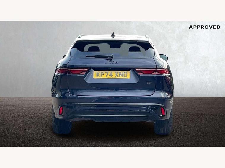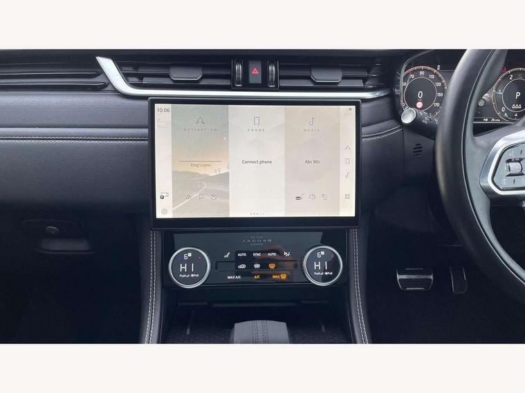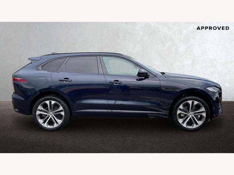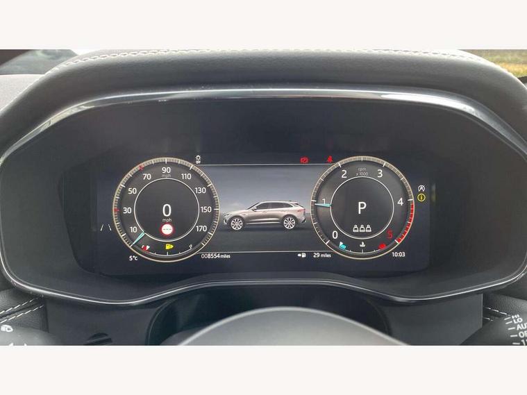 11.4" touchscreen, Adaptive cruise control with steering assist, Android Auto, Apple car play, Blind spot assist, Bluetooth connectivity, Clear exit monitor, Driver alert system, Driver condition monitor, eCall emergency call system, Eco driving style assistant, Electric power assisted steering, InControl remote, Interactive driver display digital with 12" TFT display, Jaguar Toggle shift selector, Lane departure warning system, Lane keep assist, Outside temperature gauge, Personalisation profile management, Pivi pro connected navigation system with app interface and media storage, Pro services and wifi hotspot, Push button starter, Rear collision monitor, Rear traffic monitor, Service interval indicator, Speed proportional steering, Start up sequence with movement in dials and lighting, Traffic sign recognition with adaptive speed limiter, Trip computer, Voice control system, Wireless device charging, 8 speed automatic transmission, Adaptive dynamics, All terrain progress control, All Wheel Drive (AWD), Configurable dynamics, Open differential with torque vectoring by braking, AM/FM radio, Bluetooth streaming, DAB Radio (Digital Audio Broadcasting), Dynamic volume control, InControl apps, InControl protect, iPod integration, 3 flash lane change indicators, 90th Anniversary Edition Badge, AHBA and animated directional indicators, Approach Illumination, Auto dimming rear view mirror, Automatic headlights, Electric heated/power fold memory door mirrors with approach lights and auto dimming driver side, Electric windows with one touch open/close and anti trap, F-Pace and R Dynamic badge, Green tinted glass, Heated front windscreen + heated washer jets, Heated rear window with timer, Illuminated metal tread plates with Jaguar script, Jaguar script and leaper, LED High level third brake light, LED tail lights, Metal load space scuff plates, Non acoustic front windscreen, Privacy glass (rear side windows and rear screen), R Dynamic badge on side door, Rain sensor windscreen wipers, Rear fog lights, Rear metal tread plates, Rear side wing doors, Rear wiper, Trailer stability assist, Variable front intermittent wipers, 12V power point front, 3 rear headrests, 3 seat bench in 2nd row, Additional power sockets - Two additional USB sockets in rear centre console and one 12V socket in trunk, Air distribution speed, Bright metal foot pedals, Centre armrest console, Centre console with side storage, Configurable cabin lighting, Deletion loadspace storage rails, Door sill tread plates, Ebony suede cloth headlining, Electrically adjustable steering column, Fold flat front seats, Front centre armrest with storage compartment, Front door storage space, Glovebox finisher with jaguar script, Heated steering wheel, Hooks in loadspace, Illuminated glovebox, Interior front door handles with separate locking switches, ISOFIX on outer rear seats, Jaguar sense, Leather steering wheel, Luggage tie downs in loadspace, Mist sensing, Multifunction steering wheel, Overhead lighting console, Overhead stowage for sunglasses, Passive front head restraints, Premium carpet mats, Rear air vents, Rear armrest with twin cupholders, Rear centre headrest, Rear door storage space, Reversible boot floor, Satin chrome gearshift paddles, Shopping bag hook, Single front passenger seat, Sunvisors with illuminated vanity mirrors, Twin front cupholders with cover, Online Pack with data plan - F-Pace, 355mm front brakes and 325mm rear brakes, 3x3 point rear seatbelts, ABS, All surface progress control (ASPC), Brake pad warning light, DSC - Dynamic Stability Control, Electric parking brake (EPB), Emergency brake assist, Front airbags with passenger seat occupant detector, Front and rear seatbelt reminder, Front side airbags, Full length side window curtain airbag, Hill launch assist, Power operated child locks, Traction control, Tyre pressure monitoring system, Immobiliser, Keyless entry, Keyless start, Locking wheel nuts, Perimeter alarm, Remote central locking, Valet mode,