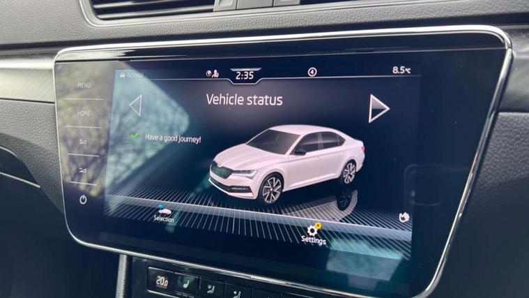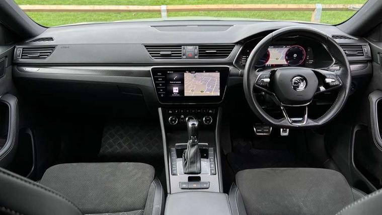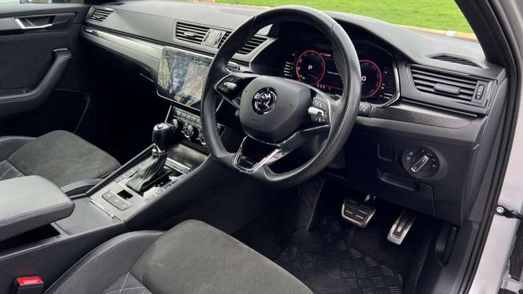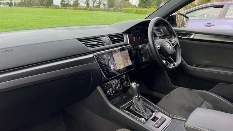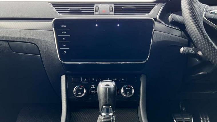 Bluetooth system, CareConnect and Emergency Call, Columbus HDD satellite 3D map navigation with 9.2" colour touch screen, web radio, integrated Wi-Fi, Driver fatigue sensor, Front assist with pedestrian protection, Progressive dynamic steering, Stop/start engine system and energy recovery, Virtual cockpit, Voice control system, Wireless smartlink apple carplay, SmartLink+ android auto, XDS+, 2 USB ports, Bolero radio with 8" touchscreen display, DAB Digital radio, 3rd brake light, Aero front windscreen wipers with intermittent function, Auto dimming rear view mirror, Black rear badge, Body colour door handles, Cornering front fog lights, Electrically adjustable heated and folding door mirrors with memory function, Front and rear electric windows, Full matrix LED headlights with AFS LED DRL integrated with headlight washer LED rear lights(High function), dynamic indicators and lighting animation, Gloss black exterior door mirrors with sports styling including front grill, side strip and window surrounds, Gloss black grille surround with gloss black rib elements, Gloss black rear spoiler, Gloss black strip between rear lights, Light assistant (coming/leaving home/tunnel light), Privacy glass, Rain sensor, Rear exhaust diffuser styling elements, Rear side wing doors, Sport Line badging, 12v power point in centre console, 3 seat bench in 2nd row, Black roof headlining, Black textile floor mats, Carbon optic interior elements, Electric auxiliary air heater, Front and rear footwell illumination, Front armrest with storage box, Height adjustable front and rear head restraints, Ice scraper, Illuminated and cooled glovebox, Interior lights with control switches, Isofix child seat fittings on outer rear seats, LED front and rear reading lights, Microsuede/leather upholstery with silver diamond stitching sports seats, One umbrella compartments in driver door with one umbrella in drivers door, Overhead glasses storage compartment, Rear centre armrest with cupholders, Removable parcel shelf, Single front passenger seat, Split folding rear seats, Storage compartment with cover in luggage compartment side panels, Ticket holder on A Pillar, LED package plus - Superb, 3 rear seatbelts, 7 airbags - Front, front side, curtain, driver's knee airbag with front passenger deactivation switch, Driver and passenger seatbelts with warning light, Electronic parking brake, ESC including ABS, EBV, MSR, ASR, EDS, HBA, DSR, RBS, CBC, multi-collision brake (MKB) and Auto hold, Hill start assist, Power operated child lock in rear doors, Tyre pressure monitor, Alarm with interior monitoring tilt sensor and back up horn, Electronic engine immobiliser, Keyless entry and start/stop, Remote central locking with SAFE system, Third remote key,
