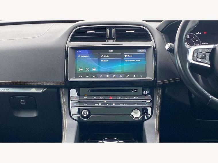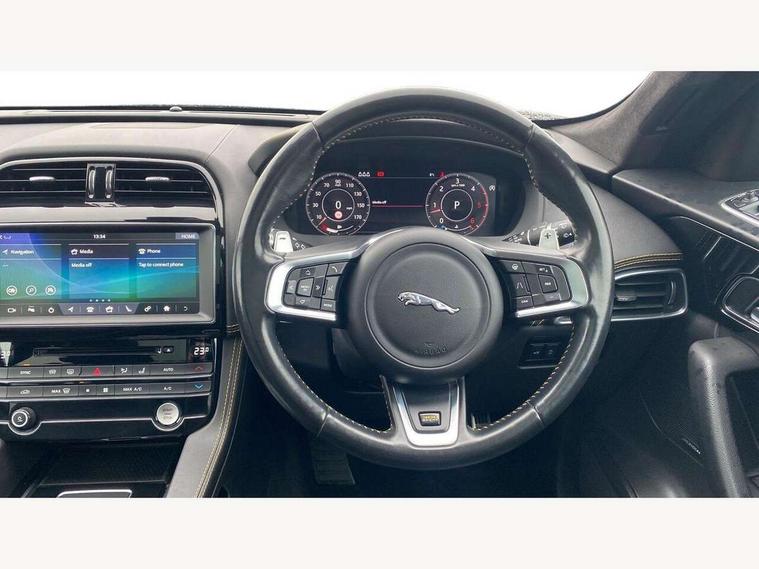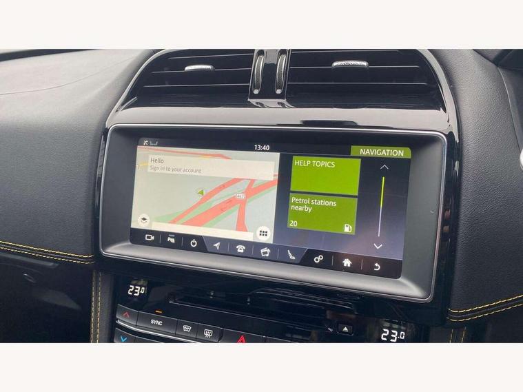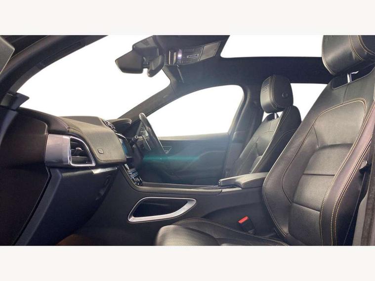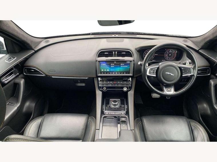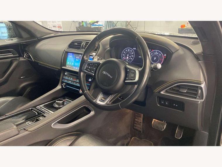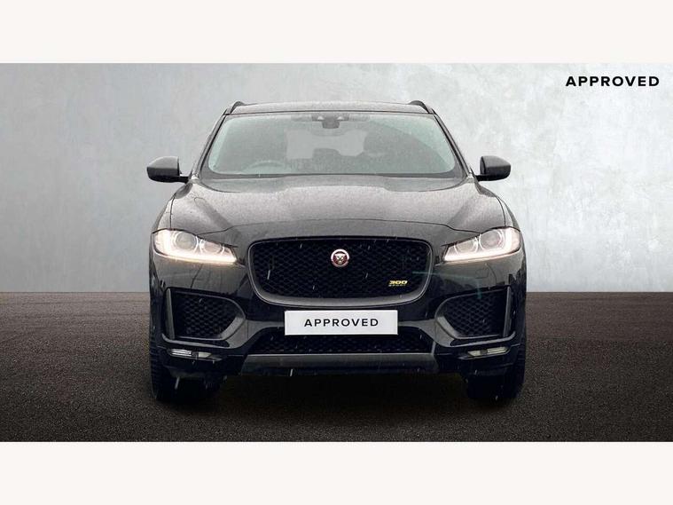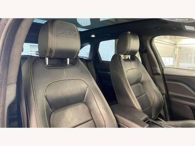 Android Auto, Apple car play, Driver condition monitor, Eco driving style assistant, Electric power assisted steering, InControl remote premium, Interactive Driver display instrument cluster, JaguarDrive control, Lane departure warning system, Lane keep assist with driver alert control, Outside temperature gauge, Pro services and wifi hotspot, Push button starter, Rotary shifter, Service interval indicator, Speed proportional steering, Start up sequence with movement in dials and lighting, Traffic sign recognition with adaptive speed limiter, Trip computer, Voice control system, 8 speed automatic transmission, All terrain progress control, All Wheel Drive (AWD), Open differential with torque vectoring by braking, AM/FM radio, Bluetooth connectivity including audio streaming, CD/DVD player, DAB Radio (Digital Audio Broadcasting), Dynamic volume control, InControl apps, InControl protect, 3 flash lane change indicators, 300 Sport badge, Antenna roof pod in gloss black, Approach Illumination, Auto dimming rear view mirror, Automatic headlights, Body coloured 300 Sport door claddings with dark satin grey finishers, Dark satin grey mirror caps, Dark satin grey side vents, Dark satin grey side window surround, Dual tailpipes with 84mm finishers, Electric folding, auto dimming, heated door mirrors with memory + approach lights, Electric front/rear windows with one touch/auto up/down, F-Pace badge, Front fog lights, Gloss black grille with dark satin grey surround, Gloss black roof rails, Green tinted heat insulating glass, Headlight power wash, Heated front windscreen, Heated rear window with timer, Heated washer jets, LED tail lights, Metallic paint, R-sport body kit, Rain sensor windscreen wipers, Rear fog lights, Rear metal tread plates, Rear wiper, S front bumper with dark satin grey inserts, S rear bumper with dark satin grey valance, Trailer stability assist, Variable front intermittent wipers, 12V power point front, 3 rear headrests, 300 Sport branded soft grain leather steering wheel, 4 way electric lumbar adjust for front seats, 40:20:40 split folding rear bench seat, Aluminium gear shift paddles, Bright metal foot pedals, Centre armrest console, Door sill tread plates, Electrically adjustable steering column, Fold flat front seats, Front centre armrest with storage compartment, Front headrests with 300 Sport embossing, Glovebox finisher with jaguar script, Heated steering wheel, Hooks in loadspace, Illuminated glovebox, Illuminated luggage compartment, Interior front door handles with separate locking switches, ISOFIX on outer rear seats, Jaguar sense, Luggage tie downs in loadspace, Multifunction steering wheel, Overhead lighting console, Passive front head restraints, Perforated grained leather upholstery with yellow contrast stitching, Rear air vents, Rear armrest with twin cupholders, Rear centre headrest, Reversible boot floor, Sports carpet mats, Sunvisors with illuminated vanity mirrors, Twin front cupholders with cover, 300 Sport black brake calipers, 350mm front brakes, 3x3 point rear seatbelts, ABS, All surface progress control (ASPC), Anti-whiplash front headrests, Autonomous emergency braking (AEB) with forward facing camera, Brake pad warning light, Driver/Front Passenger airbags, DSC - Dynamic Stability Control, Electronic parking brake, Front and rear curtain airbags, Front and rear seatbelt reminder, Front passenger seat occupancy sensor, Front side airbags, Hill launch assist, Power operated child locks, Torque vectoring brake, Traction control, Tyre pressure monitoring system, Immobiliser, Keyless start, Perimeter alarm, Remote central locking, Valet mode, Luxtec door trim, Luxtec wrapped instrument panel topper with yellow contrast stitching, Satin chrome centre console storage surround finishers, Satin chrome touchscreen surround,