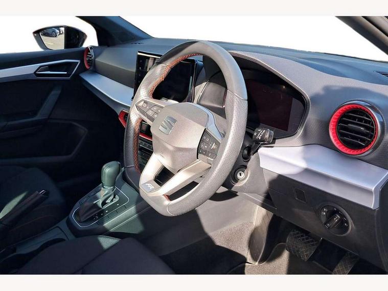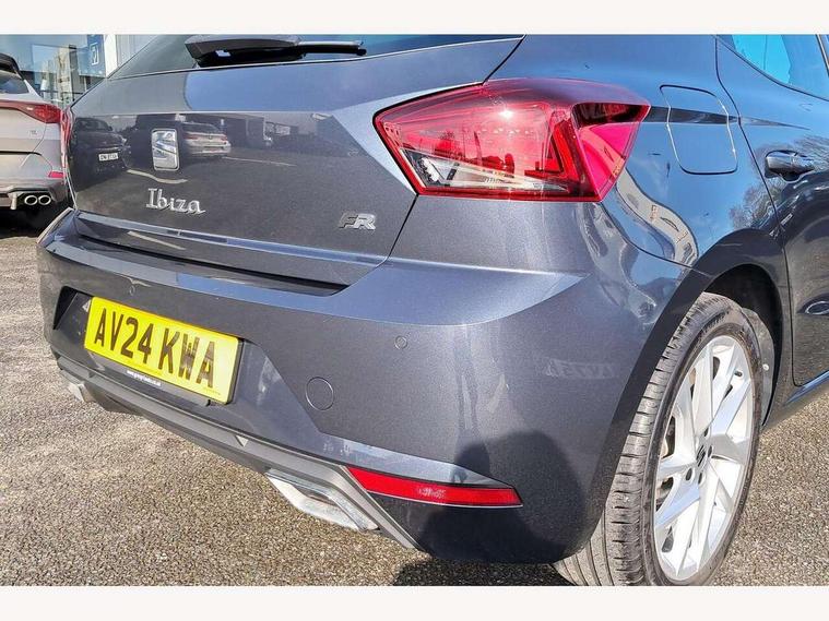 'Lights On' Reminder warning buzzer, 8" Digital cockpit, 9.2" touchscreen navigation system with type C USB socket, Voice control and DAB/AM/FM radio, Auto start and stop system, Bluetooth audio streaming with handsfree system, Digital clock, E-call, Full link smartphone integration with mirror link, wireless apple carplay, Google android auto + USB Type C cable for apple and android devices, Lane assist, Low fuel warning light, Outside temperature gauge, Power Steering, Rear parking sensor, Seat connect plus with safety, service, remote and online, SEAT drive profiles and ECO function, SEAT logo boot release, Speed limiter, Traffic sign recognition, Trip computer, Sports suspension, Auxiliary input socket, Radio/MP3 player, SD card slot, Steering wheel mounted controls, Anti theft roof antenna, Auto dimming rear view mirror, Automatic rain sensing wipers, Black door mirror caps, Body colour bumpers, Body colour door handles, Brilliant black window surrounds, Dark tinted rear windows, Electric adjustable/heated/folding door mirrors, Electric front windows, Electric headlight adjustment, Electric rear windows, Front/rear fog lights, FULL LED automatic headlights with dynamic headlight range control, coming and leaving home, LED daytime running lights, LED tail lights, Rear roof spoiler with FR twin exhausts, Rear side wing doors, Rear wiper, Third brake light, 3 seat bench in 2nd row, 60/40 split folding rear seat, Ambient interior lighting, Chrome detailing and black headlining, Cloth upholstery, Dual zone climate control with combination filter, Front courtesy lights, Front cupholders x 2, Front reading lights, Gear shift indicator, Glovebox, Height adjustable front and rear headrests (five), Height adjustable front seats, Height/reach adjust steering wheel, Illuminated air vent surrounds, Illuminated boot, Instrument lighting with brightness control, Isofix, Leather multifunction flat bottomed sports steering wheel with gearshift paddles, Passenger sunvisor, Single front passenger seat, Sports seats, Sunvisors with mirror and driver side card holder, Safety and driving pack (S) - Ibiza, 3 point seatbelts on all 3 rear seats, ABS, Active front headrests, Child locks on rear doors, Electronic stability control, Energy recovery system, Front driver and passenger side airbags with curtain airbag and front passenger airbag deactivation, Hill hold control, Multi-Collision braking, Seat belt reminder for front and rear seats, Tiredness recognition system, Tyre pressure monitoring system, Electronic engine immobiliser, Locking wheel bolts, Perimeter alarm and interior monitoring inc.backup horn, tow away protection and electronic engine immobiliser, Remote central locking + deadlocks, 17" Alloy wheels in Brilliant silver,