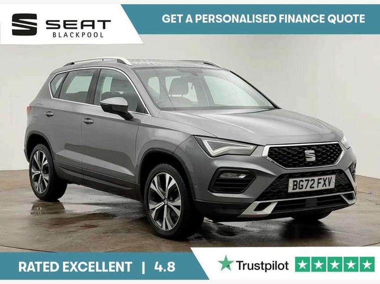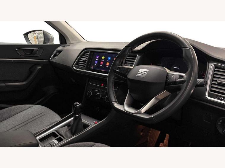 8" Digital cockpit, Colour multi-function on board computer display, Cruise control system with speed limiter, E-call, Outside temperature gauge, PAS, Self parking functionality (includes front and rear parking sensors), Start/stop system, Tailgate, Trip computer, Wireless full link smartphone integration, Wireless phone charger, Steering wheel mounted audio/phone controls, Black wheel arch surrounds, Body colour bumpers, Chrome front grille frame, Chrome roof rails, Chrome side window trim, Daytime running lights, Door mirrors with welcome light silhouette, Dynamic headlight range control with self adjusting whilst driving, Electric adjustable/heated/folding door mirrors, Front and rear electric windows, Full LED headlamps with lens and LED front fog lamps with cornering function, LED rear tail lights with dynamic indicators, Rear fog lights, Rear side wing doors, Rear wash/wipe, Simulated exhaust pipes, Third brake light, Variable front intermittent wipers, 12V socket in front, 3 seat bench in 2nd row, 60/40 split folding rear seat, Cloth upholstery with front comfort seats, Drawer under right front seat, Dual zone climate control, Front and rear head restraints, Front centre armrest, Front seat back storage pockets, Height adjustable driver and passenger seat with lumbar adjustment, ISOFIX points in outer rear seats with top tether anchorage points, Leather steering wheel and gear knob, Rear armrest and easy back seat release mechanism from boot, Single front passenger seat, Interior lighting pack - Ateca, Navigation system pack with DAB - Ateca, 3x3 point rear seatbelts, ABS, Traction control system (TCS), Electronic stability control (ESC) and Electronic differential lock system (XDS), Airbags - Driver and front passenger airbag with deactivation, front side, two curtain and driver's knee airbags, Electric parking brake with auto hold function, Front and rear seatbelt reminder, Front assist with autonomous emergency braking, Hill hold control, Manual rear child locks, Single tone horn, Tiredness recognition system, Traction control, Tyre pressure monitoring system, Alarm, Keyless entry, Locking wheel bolts, Remote central locking, Chrome interior detailing, 18" Performance machined alloy wheels 36/2 in nuclear grey,