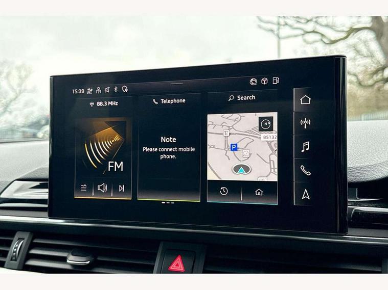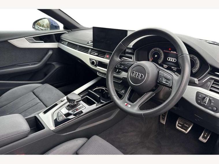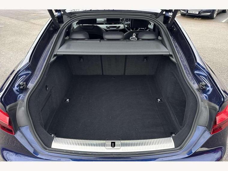 Audi connect safety and service (e-call), Audi connect with Amazon Alexa Integration, Audi drive select (Auto, Comfort, Dynamic, Efficiency and Individual), Audi parking system plus with front and rear sensors, Audi smartphone interface, Audi virtual cockpit - 12.3" full colour digital instrument cluster, vehicle/engine speed, Radio/media information+Driver assistance systems, Automatic start-stop system with coasting functionality and efficiency programme, Bluetooth interface, Electro-mechanical power steering, Email, calendar and text messages displayed via MMI, MMI nav+ with MMI touch - 10.1" high resolution MMI display, touch sensitive, 3D map, route/country info, dynamic route guide, personal route assist, Power operated tailgate, Rear view camera, Service interval indicator, Voice control system, Diesel particulate filter, Sports suspension lowered by 23mm, 8 passive loudspeakers, CD player, DAB digital radio reception, Two additional USB ports for rear passenger in rear centre console, Two SDXC card slots, Audi matrix LED headlights with LED rear lights + dynamic front and rear indicators, Auto dimming door mirrors, Auto dimming rear view mirror, Body colour bumpers, Body colour door handles, Body colour front spoiler lip, Body colour side sill trim, Body coloured door mirrors, Electric adjustable heated door mirrors, Electric folding door mirrors, Electric front windows, Front fog lights, Honeycomb structure radiator grille in grained matt black, Kerb-view function for passenger side, LED daytime running lights, LED side indicator lights integrated into door mirrors, LED third brake light, Matt aluminium silver tailpipe trim, Privacy glass, Rain and light sensors, Rear side wing doors, S line badges on front wings, S line front and rear bumpers with side skirts, S Line rear diffuser in matt titanium black with trim strip in matt aluminium silver, Side air inlets in grained matt black with matt aluminium silver inlay, Variable front intermittent wipers, Windscreen with acoustic glazing, 3 seat bench in 2nd row, 4 way electric lumbar support for driver and front passenger, 40/20/40 split folding 3 seater rear bench seat, Adjustable steering column, Black cloth headlining, Black perforated leather gearknob, Contrast stitching on seats, steering wheel and gear lever gaiter, Deluxe 3 zone electronic climate control, Front centre armrest, Front head restraints, Front/rear floor mats, Heated front seats, Illuminated door sill trim with S logo, ISOFIX child seat mounting and top tether, Luggage compartment mat, Manual seat adjustment, Rear centre armrest, Rear headrests, Single front passenger seat, Stainless steel pedals, Sunvisors with vanity mirrors, LED interior light pack - A5/RS5, 3x3 point rear seatbelts, 6 airbags - Driver, front passenger, curtain and side airbags, Electromechanical parking brake, Electronic Stabilisation Control (ESC) including ABS, ASR and EDL, Front passenger airbag deactivation, Height adjustable front seatbelts, Hill hold assist, Manual child lock in rear doors, Multi collision brake assist, Pop-up bonnet for pedestrian protection, Pre sense city, Seatbelt monitoring, Tyre pressure warning, Variable restraint system, Warning triangle and first aid kit, Anti theft alarm system, Anti theft wheel bolts, Immobiliser, Keyless Go, Remote central locking, Matt brushed aluminium inlays, Tool kit, Tyre repair kit,