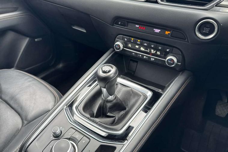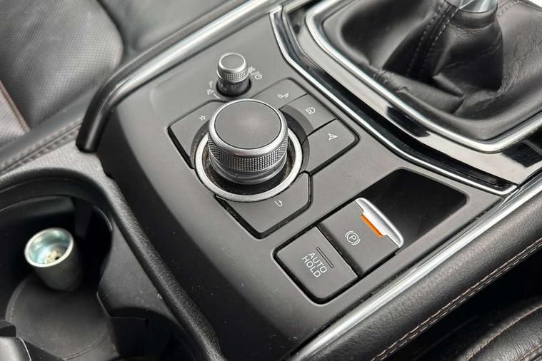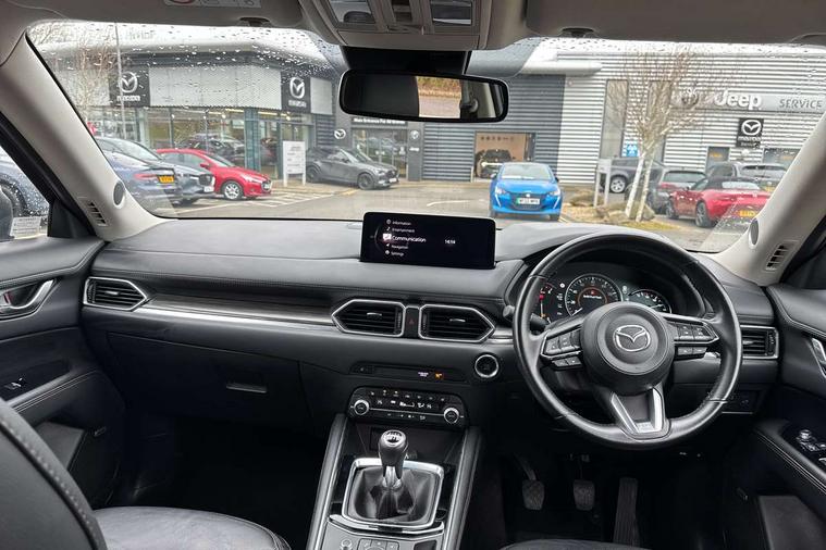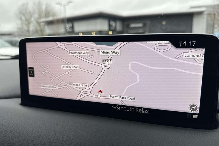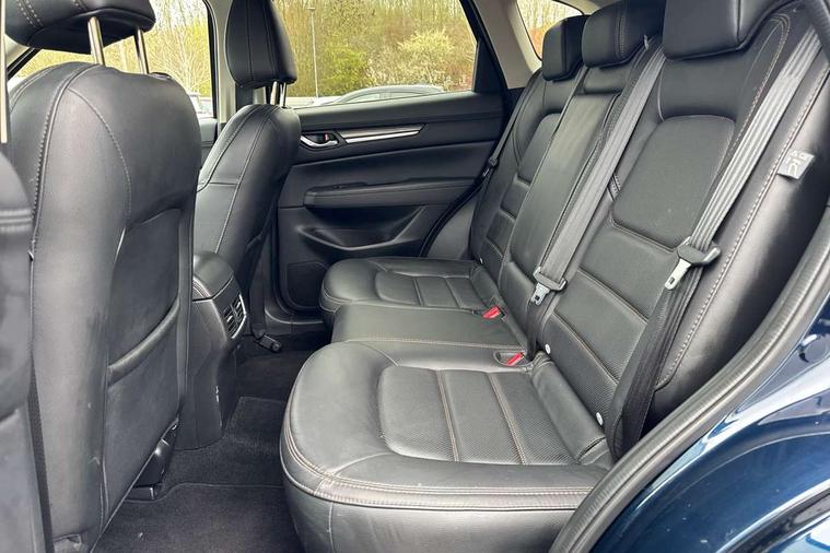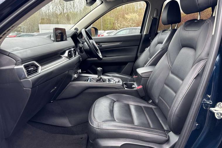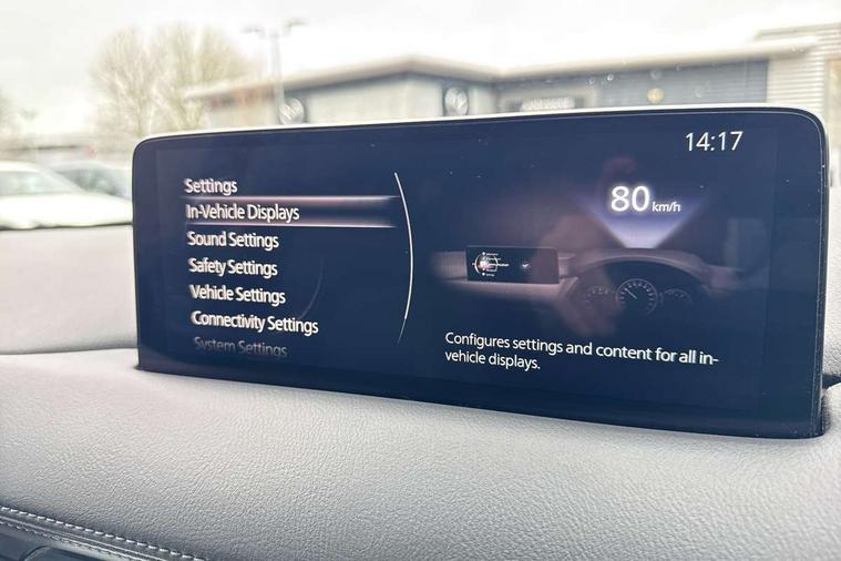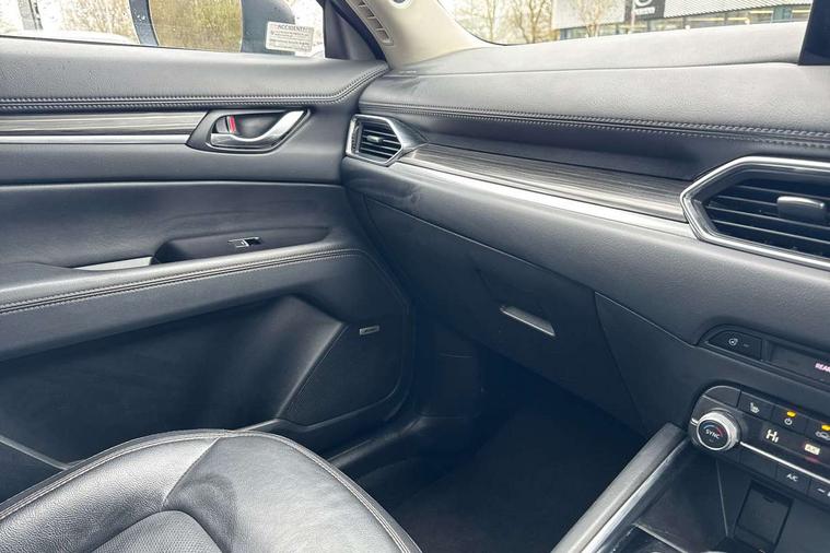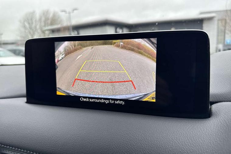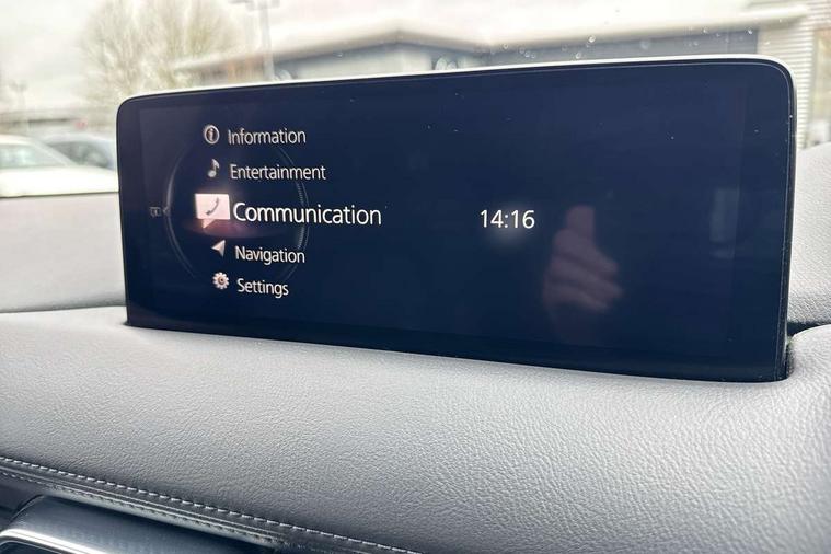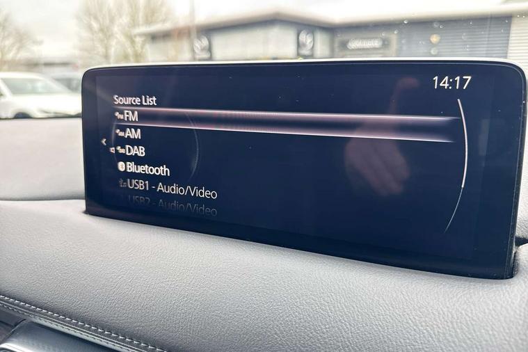 10.25" display with Mazda Connect infotainment, 7" colour TFT display, Advanced blind spot monitoring, Apple car play/Android Auto, Bluetooth connectivity with voice control, Collision prevention assist, Connected services, Cruising Traffic Support, Electric power steering, Emergency stop signalling system, Engine start/stop button, Forward collision warning, Front and rear parking sensors, Integrated navigation system, Intelligent speed assist, Lane departure warning system, Lane keep assist, Qi wireless phone charging, Radar cruise control, Rear cross traffic alert, Reversing camera, Service indicator, Traffic sign recognition (TSR), Trip computer, Windscreen projected colour active driving display (HUD) with memory, Cylinder Deactivation, i-stop, 2 USB sockets in rear, 2x USB sockets in front, AM/FM radio, Bluetooth audio streaming, Bose premium sound system with 10 speakers, DAB Digital radio, Multimedia Commander including separate volume dial, Steering wheel mounted audio controls, Adaptive front lighting system, Auto dimming rear view mirror, Automatic headlights, Black inlay dashboard panel, Body colour door mirrors, Body colour roof spoiler, Body coloured front and rear black lower bumper mouldings, Bright finish signature wing, Coming/leaving home lighting function, Door mirror integrated indicators, Dual chrome tailpipes, Dusk sensitive headlamps, Electric front/rear windows with one touch auto up/down, Front grille in gloss black finish, Gloss black B and C pillars garnish, High beam assist, Intermittent rear wash/wipe, LED auto levelling, LED daytime running lights, LED front fog lights, LED Headlights, LED third brake light, Power folding and heated door mirrors, Power tilt/slide sunroof, Privacy glass (rear side windows only), Rain sensing front wipers, Rear side wing doors, Satin black side mouldings, Scuff plates, Shark fin antenna, Signature LED rear combination lights, Vinyl with wood grain metal inlay door trim panel, Windscreen wiper de-icer, 12v electrical power outlet, 3 seat bench in 2nd row, 3 stage heated front seats, 40:20:40 Karakuri fold-flat seat system, 6 way electric adjustable passenger seat, 8 way electric driver seat with lumbar support + memory, Cargo room flat floor board with waterproof undertray, Driver seat power slide, recline and height adjustment, Driver, Front passenger and two rear grab handles with coat hooks, Driver/passenger front seatback pockets, Driver/passenger sunvisors + illuminated vanity mirrors (drivers with ticket holder), Dual zone climate control, Folding centre armrest with 2 cup holders, Front and rear door pockets, Front centre storage with two cupholders, Front passenger seat power slide, recline and height adjustment, Gear shift indicator, Heated steering wheel, Humidity sensor, Illuminated glovebox, Interior dome light with integral spotlight, ISOFIX child seat anchorage points attached on outer rear seats, Karakuri tonneau cover, Leather upholstery, Leather wrapped steering wheel and gear knob, Light roof lining, Luggage compartment LED lighting, Luggage compartment power outlet, Rear air vents, Rear headrests, Rear seat recline, Roof mounted sunglasses holder, Single front passenger seat, Three height adjustable head restraints, Tilt/height adjustable steering wheel, White interior LED illumination lighting, 3 point front seatbelts with pre-tensioners, 3 rear 3 point seatbelts, ABS, Advanced Smart City Brake Support - SCBS, Child locks on rear doors, Driver and front passenger side airbags, DSTC-Dynamic Stability and Traction Control, Dual front airbags, Electronic brake force distribution, Electronic parking brake with auto hold, ESP, Front and rear curtain airbags, Front passenger airbag deactivation, G-Vectoring control, Hill hold assist, Seatbelt reminder front and rear, Single stage passenger airbags, Smart brake support with forward obstruction warning, Tyre pressure monitoring system, Automatic door locking when moving off, Deadlock, Immobiliser, Power door locks, Remote central locking, Smart keyless entry, Thatcham Cat.1 alarm, 19" diamond cut black alloy wheels, Tyre repair kit,