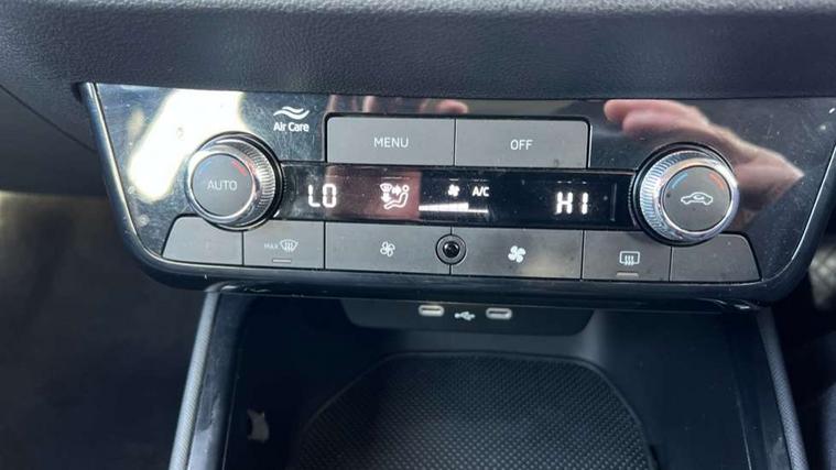 8" Digital instrument display, Advanced driver attention and drowsiness monitor, Bluetooth connection, Electromechanical power steering, Exterior temperature gauge, Service interval indicator, Traffic sign recognition, Wireless SmartLink for Apple CarPlay and Android Auto, 6 Speakers (4 in front and 2 in rear), 8.25" Skoda infotainment touchscreen display, Auxiliary socket for external MP3 player, DAB digital radio reception, Auto dimming rear view mirror, Body colour door mirrors, Body coloured bumpers, Door mirror integrated indicators, Front and rear electric windows, Front window wiper intermittent control, Headlight range control - Automatic, Ice scraper in fuel cap, LED 3rd brake light, LED daytime running lights with coming and leaving home feature, LED rear lights, Rear LED fog light, Rear side wing doors, Rear window wiper with washing nozzles, Roof mounted spoiler, SKODA tailgate lettering in chrome, Unique dark chrome design logo on alloy wheels, 2 reading lights in front and 2 reading lights in rear, 3 rear headrests, Backrest split and folding, Central console with removable cup holder and storage box, Chrome handbrake release button, Dual zone air conditioning with climatronic electronic control, Fabric upholstery, Front centre armrest, Gearshift knob/handle in leather, Grain satin black interior door handles, Hand brake lever handle in leather, Height adjustable front headrests, Height adjustable front seats, Height adjustable steering wheel, ISOFIX and TopTether anchorage points to the outer rear seats, ISOFIX and TopTether on the front passenger seat, Luggage compartment lighting, Manually adjustable lumbar support in front seats, Pollen filter, Rear seat bench unsplit, Single front passenger seat, Skoda lettering on steering wheel, Storm grey headlining, Sun visors with mirror and airbag label on passenger side, Textile floor mats, Ticket holder, Umbrella in drivers door, 3-point height adjustable front seats belts with pretensioner and force limiter, Automatic warning lights in case of crash, Driver and passengers airbag with switch off function, e-Call+, ESC including ABS, MSR, ASR, EDS, HBA and XDS, Front and rear seat belt warning, FRONT ASSIST (AEB City and AEB Inter Urban), Front side airbags, Head airbags, Hill hold control, One tone horn, Pedestrian protection, Three rear 3-points safety seat belts with pretensioner and force limiter including stop function for outer rear seat belts, Tyre pressure monitoring system, Anti-theft alarm system including immobiliser, interior monitoring, backup horn, and towing protection, Central locking with radio remote control, interior controls, SAFE function and 2 foldable keys, Black painted air vents, Grain satin black central console cover, Metallic grey upper decorative trim, Satin black door and side trim panel in front, Textile Kota grey lower decorative inserts, Anti-theft wheel bolts protection, Super-low rolling resistance tyres,