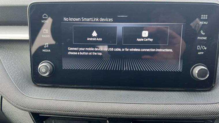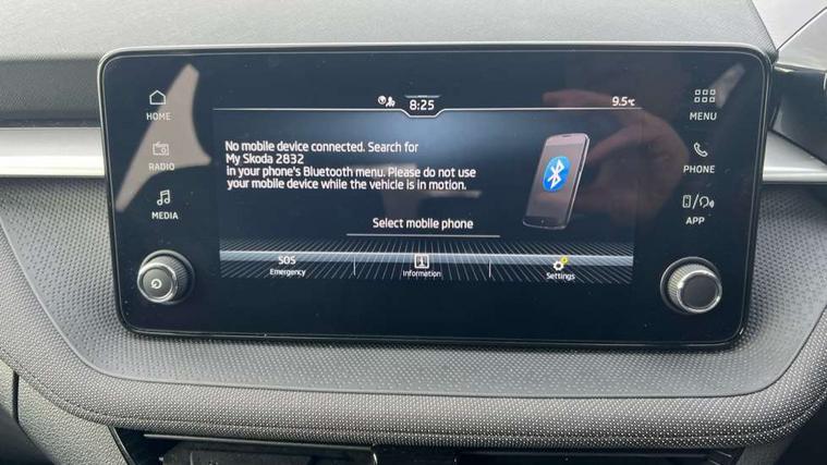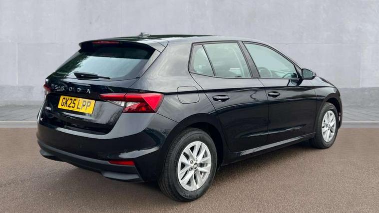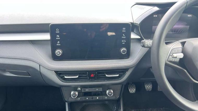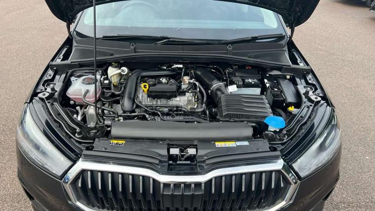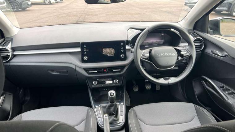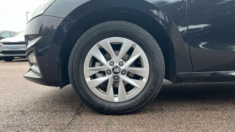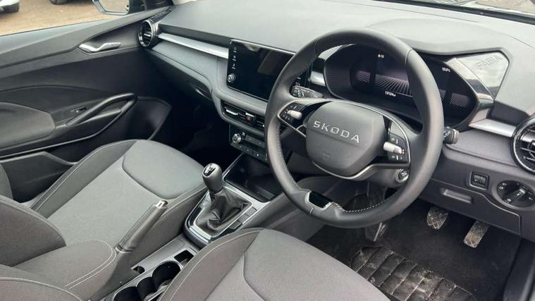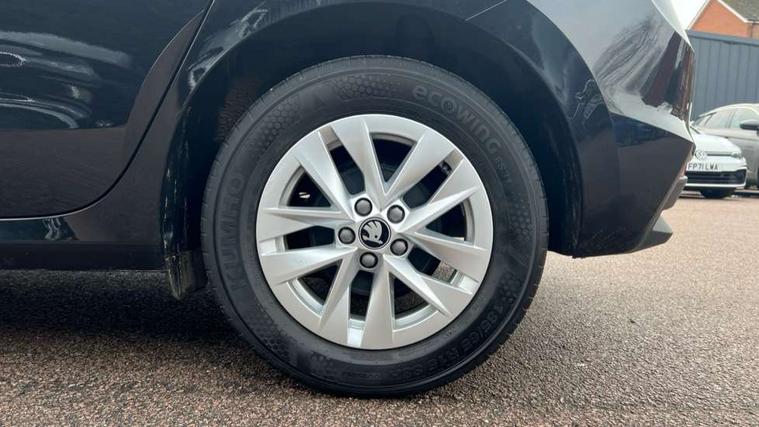8" Digital instrument display, Advanced driver attention and drowsiness monitor, Bluetooth connection, Electromechanical power steering, Exterior temperature gauge, Service interval indicator, Traffic sign recognition, Wireless SmartLink for Apple CarPlay and Android Auto, 6 Speakers (4 in front and 2 in rear), 8.25" Skoda infotainment touchscreen display, Auxiliary socket for external MP3 player, DAB digital radio reception, Auto dimming rear view mirror, Body colour door mirrors, Body coloured bumpers, Door mirror integrated indicators, Front and rear electric windows, Front window wiper intermittent control, Headlight range control - Automatic, Ice scraper in fuel cap, LED 3rd brake light, LED daytime running lights with coming and leaving home feature, LED rear lights, Rear LED fog light, Rear side wing doors, Rear window wiper with washing nozzles, Roof mounted spoiler, SKODA tailgate lettering in chrome, Unique dark chrome design logo on alloy wheels, 2 reading lights in front and 2 reading lights in rear, 3 rear headrests, Backrest split and folding, Central console with removable cup holder and storage box, Chrome handbrake release button, Dual zone air conditioning with climatronic electronic control, Fabric upholstery, Front centre armrest, Gearshift knob/handle in leather, Grain satin black interior door handles, Hand brake lever handle in leather, Height adjustable front headrests, Height adjustable front seats, Height adjustable steering wheel, ISOFIX and TopTether anchorage points to the outer rear seats, ISOFIX and TopTether on the front passenger seat, Luggage compartment lighting, Manually adjustable lumbar support in front seats, Pollen filter, Rear seat bench unsplit, Single front passenger seat, Skoda lettering on steering wheel, Storm grey headlining, Sun visors with mirror and airbag label on passenger side, Textile floor mats, Ticket holder, Umbrella in drivers door, 3-point height adjustable front seats belts with pretensioner and force limiter, Automatic warning lights in case of crash, Driver and passengers airbag with switch off function, e-Call+, ESC including ABS, MSR, ASR, EDS, HBA and XDS, Front and rear seat belt warning, FRONT ASSIST (AEB City and AEB Inter Urban), Front side airbags, Head airbags, One tone horn, Pedestrian protection, Three rear 3-points safety seat belts with pretensioner and force limiter including stop function for outer rear seat belts, Tyre pressure monitoring system, Anti-theft alarm system including immobiliser, interior monitoring, backup horn, and towing protection, Central locking with radio remote control, interior controls, SAFE function and 2 foldable keys, Black painted air vents, Grain satin black central console cover, Metallic grey upper decorative trim, Satin black door and side trim panel in front, Textile Kota grey lower decorative inserts, Anti-theft wheel bolts protection, Super-low rolling resistance tyres,
