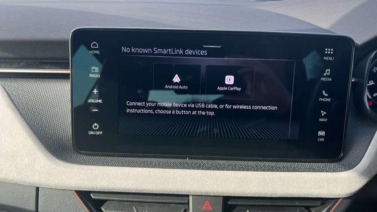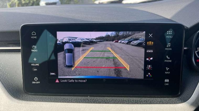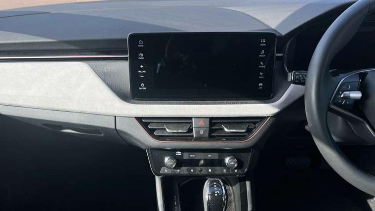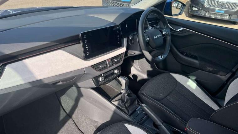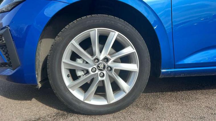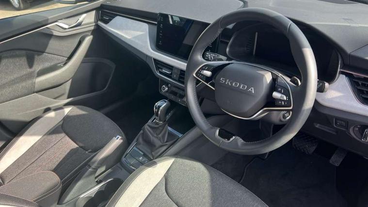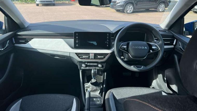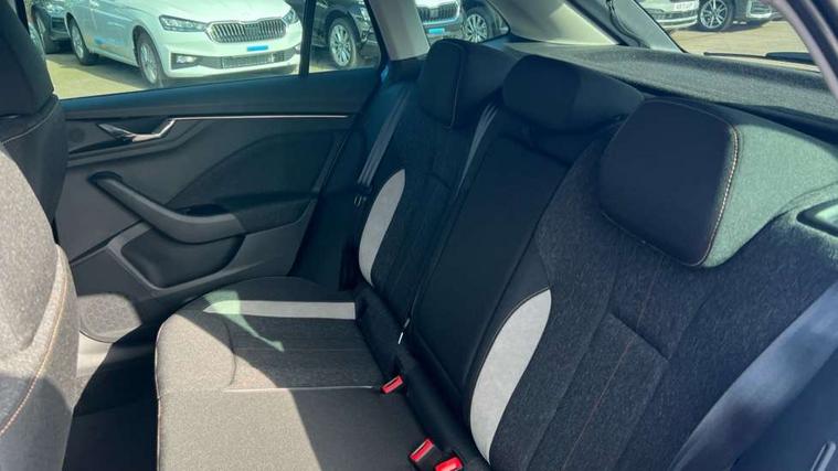 Advanced driver attention and drowsiness monitor, Bluetooth, e-Call (emergency call), Front assist system, PAS, Rear parking sensors, Rear view camera, Speed limiter, Tailgate, Traffic sign recognition, Virtual Cockpit - 10.25" digital display, Voice control system, Wireless smartlink, 4 USB C ports, 8 Speakers, 9.2" Skoda navigation display, DAB radio, Auto dimming rear view mirror, Automatic headlamp activation with Coming home and Leaving home feature, Automatic high/low beam, Automatic intermittent wipers, Body colour bumpers, Body colour door mirrors and handles, Chrome moulding around grille, Chrome window frames, Front and rear electric windows, Heated rear window, LED 3rd brake light, LED brake lights, LED daytime running lights, LED front turning lights, LED high beam, LED low beam, Light sensors, Privacy glass, Rear LED fog light, Rear side wing doors, Rear wiper, Tinted windows, Unique dark chrome design logo on alloy wheels, 12V socket in luggage compartment, 3 seat bench in 2nd row, Ambient lighting in white/red, Black / Copper armrest stitching, Cargo elements, Chrome inner door handles, Copper hotstamping, Door inserts in accent black, Driver and passenger sun visors with vanity mirror, Dual zone climate control, Front and rear roof lights, Front centre armrest, Front head restraints, Glasses storage in roof liner, Height adjustable driver seat, Height adjustable passenger seat, Ice scraper, Illuminated glove compartment, Inner circulation control with pollen filter, ISOFIX for front passenger seat, Isofix preparation for back seats, Leather gearknob and handbrake lever, Lodge cloth upholstery, Luggage net under rear parcel shelf, Manual lumbar support for front seats, Net package and top tether hooks in boot space, Pearl grey ceiling, Pocket on the back of both front seats, incl. mobile phone pockets, Rear centre armrest, Single front passenger seat, Skoda lettering on steering wheel, Textile floor mats, Third rear headrest, Ticket holder, Top tether for front passenger seat, Umbrella in driver's door, Convenience pack without rear camera - Scala, 3x3 point rear seatbelts, ABS, Child locks, Curtain airbags and front side airbags, Disc brakes, Driver and front passenger airbags, ESP, Hill hold control, Manual leather parking brake, One tone horn, Passenger airbag switch off function, Seatbelt reminder for driver and front passenger, Tyre pressure monitoring system, Anti theft alarm system with interior monitoring, backup horn and towing protection, Anti-theft wheel bolts, Remote central locking with 2 remote folding keys, SAFE function for remote central locking, Decorative inserts,