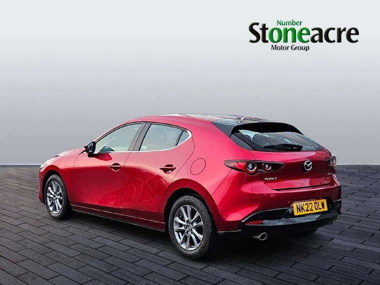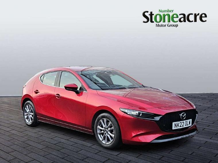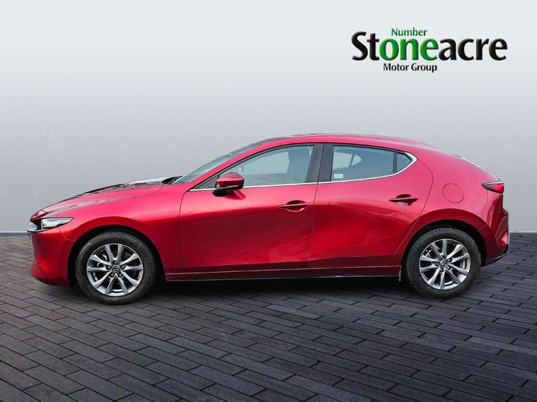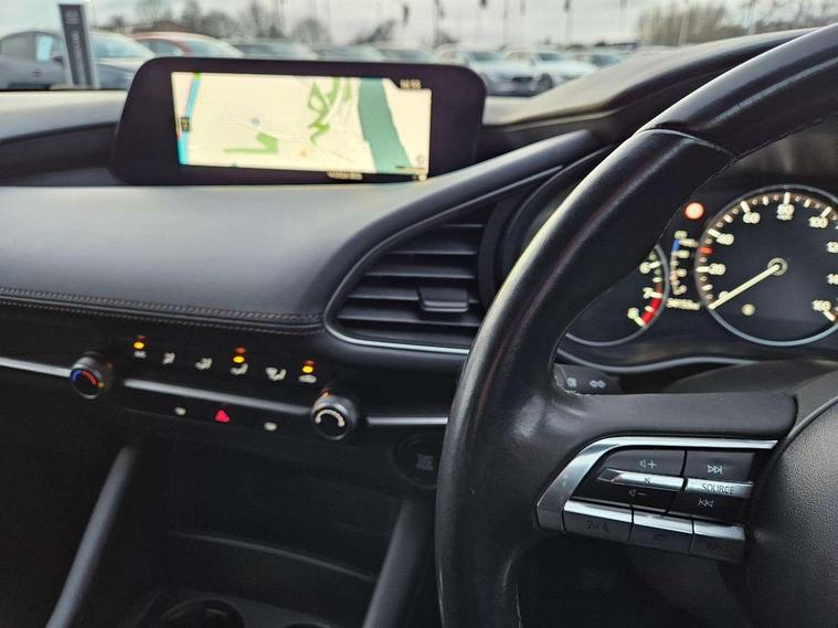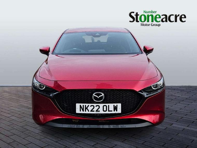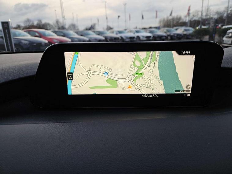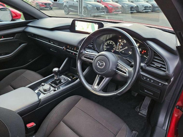 7" colour TFT display, 8.8" Colour centre touch screen display with Mazda Connect infotainment, Apple car play/Android Auto, Audio transfer from bluetooth devices, Blind spot monitoring with rear cross traffic alert, Colour active driving display inc Windscreen projected, Traffic Sign Recognition, turn-by- turn navigation and Mazda Radar Cruise Control information, Digital instrument cluster, Driver attention alert system, E-call with GPS, Emergency stop signalling system, Engine start/stop button, Head up Display, Integrated bluetooth with steering wheel mounted controls, Intelligent speed assist, Lane keep assist system (LAS) with Lane departure warning system (LDWS), Mazda connected services, Mazda Navigation System with european mapping, Mazda Radar Cruise Control, Mobile App interface, Multimedia Commander, PAS, Rear parking sensor with audible and visual warning, Service indicator, Traffic sign recognition (TSR), Trip computer, Cylinder Deactivation, i-stop, Mazda Multimedia System with AM / FM / DAB radio with 8 speakers, B-pillar garnish in satin black, Body coloured, electrically adjustable, heated auto power folding door mirrors with integrated indicators, Coming/leaving home lighting function, Dark metallic finish signature wing, Daytime running lights, Dual chrome tailpipes tip, Dusk sensing headlights, Electric front/rear windows with one touch/auto up/down, Front body coloured bumper with black lower bezel, Front kodo turn signal, Gloss black finish front grille, Gloss black rear roof spoiler, High beam control, LED front fog lights, LED headlamps with auto levelling, LED indicator lights, LED rear combination lights, LED third brake light, Rain sensing front wipers with adjustable sensitivity and speed, Rear colour coded bumper with gloss black lower moulding, Rear fog lights, Rear side wing doors, Speed adjustable rear wash wiper with intermittent wipe, 12v electrical power outlet, 3 seat bench in 2nd row, 60/40 split fold down rear seats, Black cloth door panel inserts, Cloth upholstery, Dark roof headlining, ceiling and pillars, Driver, front passenger and two rear door pockets, Driver, Front passenger and two rear grab handles with coathooks, Driver/passenger sunvisors + vanity mirrors (drivers side with ticket holder), Drivers seat manual slide recline and height adjustment, Folding rear centre armrest with two cup holders, Front and rear courtesy lamps, Front armrest, Front centre storage with two cupholders, Front head restraints, Front passenger seatback pocket, Front passengers seat manual slide, recline and height adjustment, Gear shift indicator, Illuminated glovebox, Interior colouration dashboard and doorcards in black with dark stitching, ISOFIX child seat anchorage points attached on outer rear seats, Leather wrapped gear shift knob, Leather wrapped steering wheel, LED interior light, Luggage compartment light, Manual air conditioning, Power outlet in luggage compartment, Roof mounted sunglasses holder, Single front passenger seat, Three height adjustable rear head restraints, Tilt/height adjustable steering wheel, USB input, 3 point ELR front seatbelts with pretensioners, 3 rear 3 point seatbelts with ELR, Anti-lock braking system (ABS), Drivers knee airbag, DSC - Dynamic Stability Control, Dual stage driver and single stage passenger airbags, EBD - Electronic brakeforce distribution, Electronic parking brake with auto disengage function and auto hold function, Front and rear curtain airbags, Front passenger airbag cut-off switch, Front side airbags, Front smart city brake support, G-Vectoring control plus, Hill launch assist, Intelligent Traction Control system, Manual child lock in rear doors, Mild Hybrid system with regenerative braking, Seatbelt reminder for driver/front passenger and rear seats, Tyre pressure monitoring system (TPMS), Auto door lock when driving, Remote central locking + deadlocks, Thatcham accredited alarm and immobiliser, 16" Silver alloy wheels, Emergency tyre repair kit,