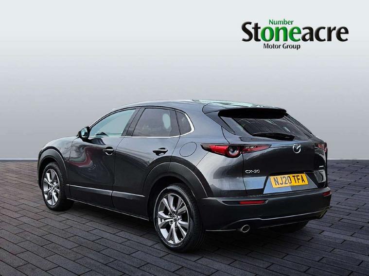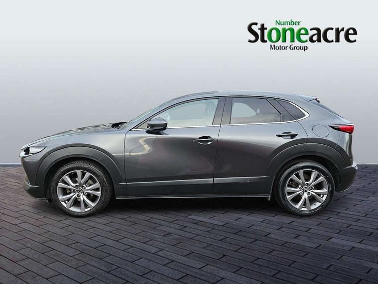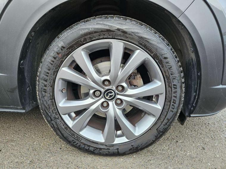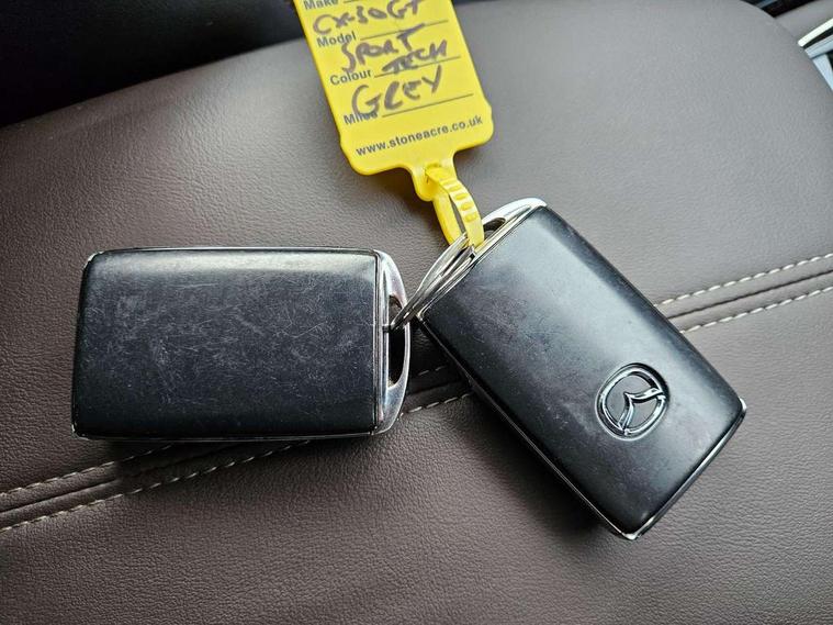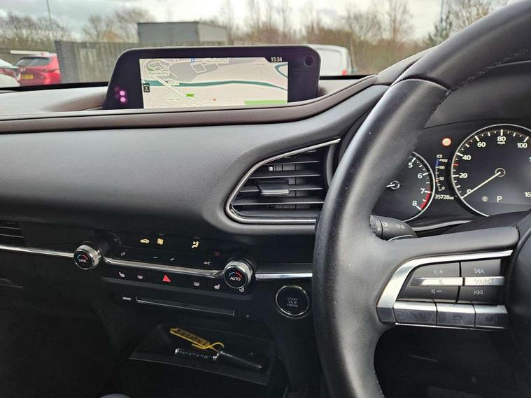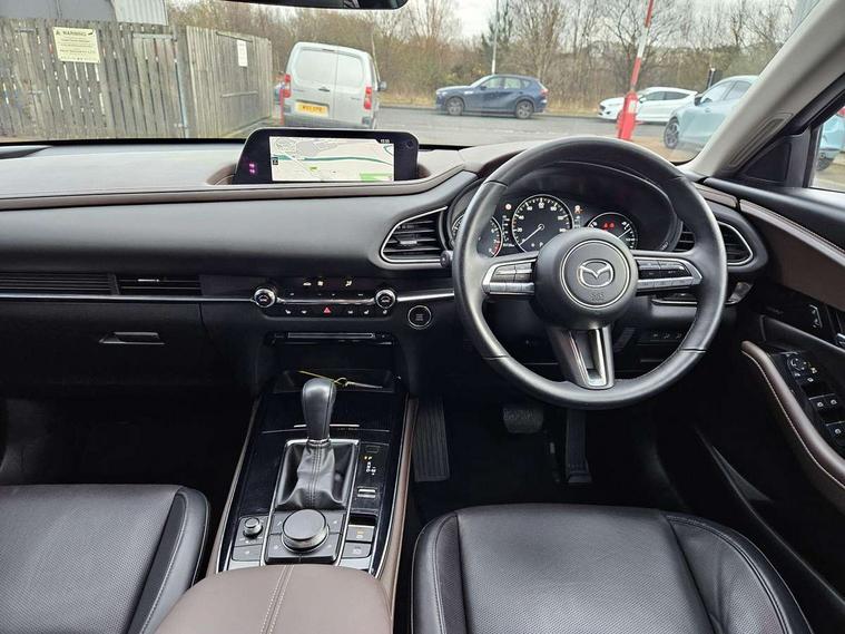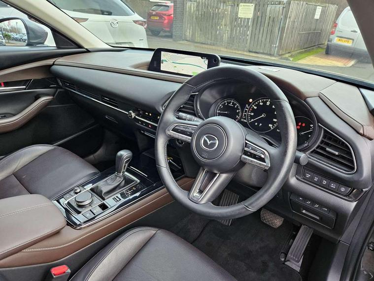 360 View Monitor, 7" TFT Colour driver instrument panel display, 8.8" Colour centre touch screen display with Mazda Connect infotainment, Adaptive cruise control (Mazda radar cruise control) features stop and go, Apple car play/Android Auto, Blind spot monitoring with rear cross traffic alert, Cruising Traffic Support, Drive mode selector, Driver attention alert system, Driver monitoring system, E-call with GPS, Emergency stop signalling system, Engine start/stop button, Front and rear parking sensors, Front Cross Traffic Alert, Integrated bluetooth, Integrated Mazda navigation system, Intelligent speed assist, Lane keep assist system (LAS) with Lane departure warning system (LDWS), PAS, Power lift gate, Service indicator, Trip computer, Window projected colour active driving display (head up display) with traffic sign recognition, Cylinder Deactivation, i-stop, 2 USB charging ports, Bose surround sound system with 12 Speaker, Bose center point, Bass match and audio pilot technology, CD player, DAB Digital radio, Multimedia Commander including separate volume dial, Steering wheel mounted audio/bluetooth controls, Adaptive LED Headlights, Auto dimming driver's door mirror, B-pillar and C-pillar garnishes in gloss black finish, Body coloured, electrically adjustable, heated auto power folding door mirrors with integrated indicators, Coming/leaving home lighting function, Door mirrors with tilt-down function when reversing, Dual chrome exhaust, Dusk sensing headlights, Electric front/rear windows with one touch auto up/down, Frameless auto dimming interior rear view mirror, Front kodo turn signal, Gloss black front grille, Gloss black rear roof spoiler, High beam assist, LED headlamps with auto levelling, Privacy glass (rear side windows and rear screen), Rain sensing front wipers with adjustable speed and intermittent wipe, Rear fog lights, Rear wiper, Signature front LED daytime running lights, Signature LED rear combination lights with LED rear turn lights, 12V power outlet in centre console, 60/40 split fold down rear seats, Chrome horn pad ring, Dashboard, door cards and front centre armrest in rich brown leather, Driver and front passenger visors with covered vanity mirror and driver ticket holder, Driver seat memory function, Driver's seat, power tilt, slide, recline, height and lumbar adjustment, Driver, Front passenger and two rear grab handles with coathooks, Dual zone climate control air conditioning with rear air vents, Folding rear centre armrest with two cup holders, Front and rear (x3) head restraints, Front and rear door pockets, Front and rear LED lighting, Front armrest, Front centre storage with two cupholders, Front passengers seat manual slide, recline and height adjustment, Glovebox illumination, Heated front seats with 3 stage setting, Heated steering wheel, ISOFIX child seat anchorage points attached on outer rear seats, Leather upholstery with interior accents, Leather wrapped gear shift knob, Leather wrapped steering wheel with telescopic and tilt adjustment, Luggage compartment light, Paddle shift controls, Rear passenger seat map pockets, Roof mounted sunglasses holder, Vinyl leather door panel inserts, 3 point ELR front seat belts x2 with pretensioners, 3 point ELR rear seat belts, Anti-lock braking system (ABS), Driver/Front Passenger airbags, Drivers knee airbag, DSC - Dynamic Stability Control, Electronic parking brake with auto disengage function and auto hold function, Front and rear curtain airbags, Front and rear smart city brake support, Front passenger airbag cut-off switch, Front side airbags, G-Vectoring control plus, Hill launch assist, Mild Hybrid system with regenerative braking, Rear cross traffic braking, Seatbelt reminder for driver/front passenger and rear seats, Traction control system (TCS), Tyre pressure monitoring system (TPMS), Remote central locking with deadlocking and automatic door lock when driving, Smart keyless entry, Thatcham accredited alarm and immobiliser, 18" Silver metallic alloy wheels, Emergency tyre repair kit,