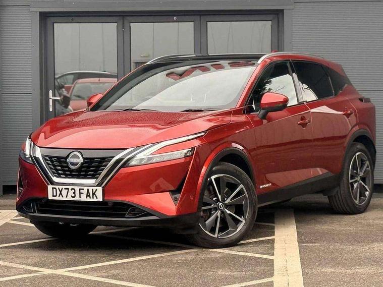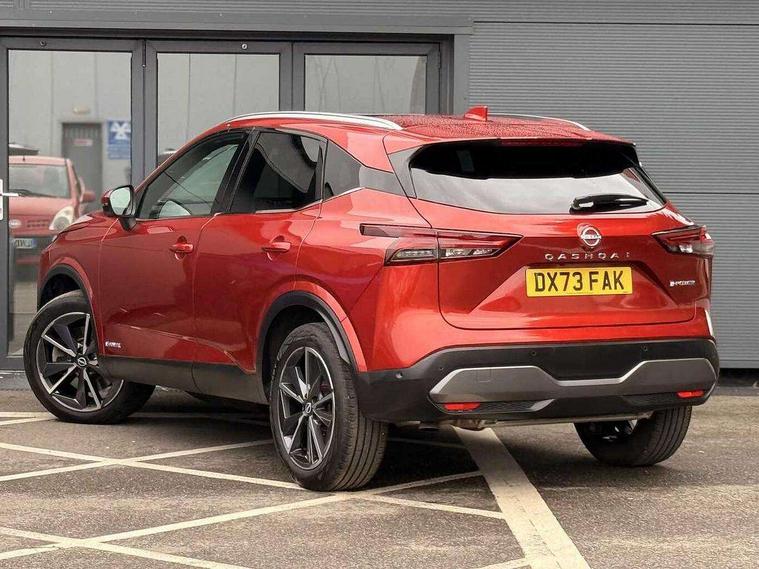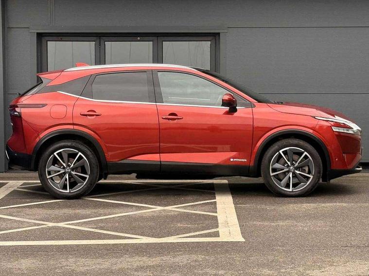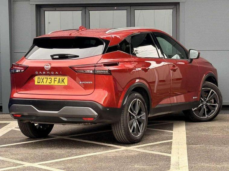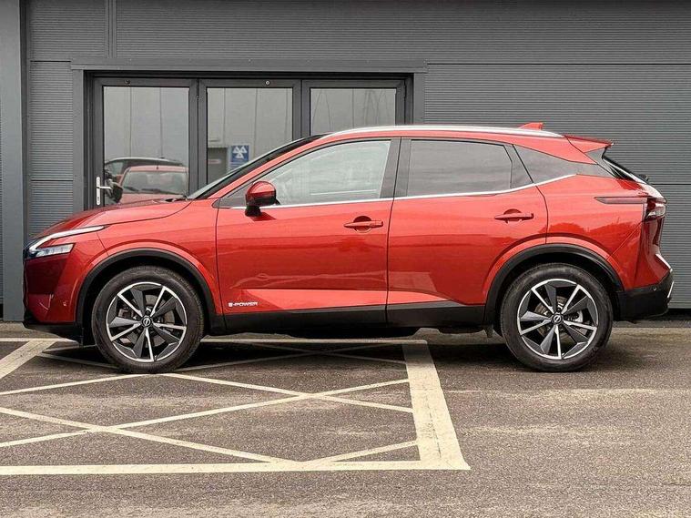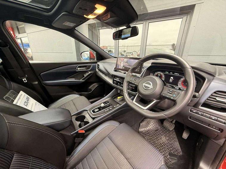Advanced windscreen head up display, Blind spot warning, Drive modes (sport, normal, eco), e-Pedal step, Electric speed sensitive power steering, Emergency and breakdown call, Front and rear parking sensors, Full Digital 12.3" TFT Digital Combimeter, Google maps services - search, weather, 3D maps and Google street view, Hands free power tailgate, Idle stop/start system, Intelligent around view monitor, Intelligent Cruise control (ICC), Intelligent driver alert system, Intelligent forward collision warning, Intelligent lane intervention, Lane departure prevention, Lane departure warning system, Lane keep assist, Moving object detection, Nissan connect 12.3 inch touchscreen infotainment system, Nissan connect navigation, ProPILOT with Navi-Link, Push button starter, Rear cross traffic alert, Rear view camera, Remote control services - door locks, lights, horn and car locator, Telematics - notifications and connectivity services, TomTom live traffic services, Traffic sign recognition with legal speed adjustment, Trip computer, Virtual personal assistant and firmware over the air capability, Wireless Apple CarPlay and wired Android Auto, Wireless charging pad, 6 speakers, AM/FM audio system with DAB, Bluetooth audio streaming, Front USB connections (Type-A and Type-C), Rear USB charging only ports (Type-A and Type-C), Auto dimming rear view mirror, Auto rear wiper when reversing, Automatic hazard signal with emergency stop signal, Body colour mirror caps, Body coloured door handles, Bodyside mouldings, Chrome side window finisher, Door handle with button, e-POWER badging, Electric auto folding door mirrors, Electrically adjustable and heated door mirrors with LED turn indicator, Follow me home headlights, Front and rear LED turning signals, Headlights auto levelling system, Intelligent auto headlights, LED 3rd brake light, LED daytime running lights, LED headlights with adaptive driving beam, LED rear lights, One touch front and rear electric windows with remote opening and closing, Partially body coloured bumpers, Privacy glass, Rear bumper with graphite insert, Rear reversing light (bulb lighting), Rear roof spoiler, Rear side wing doors, Rear styling plate, Shark fin antenna, Splash free rain sensing wipers, Super UV and infrared cut glass, Thermaclear heated windscreen, Three blink turn signal, 12v power socket in dashboard and luggage, 2x Rear coat hooks, 3 bench rear seats in 2nd row, 3 rear headrests, 4 folding assist grip, 6 Luggage hooks - 4 on floor, 2 on side, 60/40 split folding rear seat bench, Ambient lighting around centre console, Ambient lighting in front doors, Centre console storage tray, Chrome interior door handles, Cloth/syntech leather monoform upholstery, Dark black/blueish PVC wrapping, Dark headlining, Driver and front passenger sunvisors with illuminated vanity mirrors, Driver seat back pocket, Dual zone automatic climate control with pollen filter, e-POWER shifter, Electrically adjustable driver seat, Electrically adjustable lumbar support for driver, Front and rear door storage, Front centre console and armrest, Front cupholders x 2, Front door with bottle holders, Glovebox with light, Hard trunk cover, Heated front seats, Heated steering wheel, Height adjustable driver's seat, Height adjustable front headrests, Height adjustable passenger seat, Leather steering wheel, Luggage board system, Luggage space lighting, Manual lumbar support on passenger seat, Manually adjustable passenger (slide recline + lifter), Multifunction steering wheel, Passenger seat back pocket, Rear armrest with 2 cupholders, Rear door bottle holders, Single front passenger seat, Soft PVC kneepad, Steering wheel switches, Tilt/telescopic adjustable steering wheel, Two rear isofix child seat anchorage points with top tether, Welcome light and doors with console tray ambient lighting, Glass roof pack with roof rails - Qashqai, 3x3 point rear seatbelt pretensioners + load limiters, ABS with EBD and brake assist, Active brake limited slip, Auto hold function, Child locks on rear doors, Curtain and front side, far side airbags, Driver and passenger airbags, Driver, passenger and 2nd row rear seat belt reminder, Electronic parking brake, Front seatbelt pretensioners + load limiters, Height adjustable front seatbelts, Hill start assist, Intelligent blind spot intervention, Intelligent front emergency braking with pedestrian, cyclist recognition and junction assist, Intelligent rear automatic braking, Tyre pressure monitoring system, Vehicle dynamic control, Capless fuel filler, Engine immobiliser, Intelligent Key, Remote central door locking with deadlocking, Thatcham Cat.1 alarm, Interior instrumental panel C finisher, 19" Diamond cut alloy wheels, Tyre puncture repair kit,