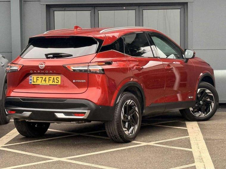 2 front USB-C ports, 2 rear USB-C ports, 360 degree Intelligent around view monitor with moving object detection, Blind spot intervention, Blind spot warning, Drive assist custom mode, Drive modes (sport, normal, eco), Driver drowsiness and attention warning, e-Pedal step, Electric speed sensitive power steering, Emergency and breakdown call, Emergency lane keep assist, Emergency Stop Signal (ESS), Engine start/stop button, EV mode switch, Event data recorder, Front and rear parking sensors, Full Digital 12.3" TFT Digital Combimeter, Google virtual personal assistance, Idle stop/start system, In-car WIFI hotspot, Intelligent Cruise control (ICC), Intelligent forward collision warning, Intelligent speed assist, Lane departure warning system, Nissan connect 12.3 inch touchscreen infotainment system, Nissan connect navigation with google maps, Nissan connect services 2.0 (Google Automotive System), Outside temperature sensor, Rear cross traffic alert, Reversing detection, Traffic jam pilot, Wireless Apple CarPlay/Android Auto, Wireless charging pad, Limited slip differential, 6 speakers, AM/FM audio system with DAB, Bluetooth audio streaming, Auto dimming frameless rear view mirror, Auto rear wiper when reversing, Body colour mirror caps, Body coloured door handles, Bodyside mouldings, Chrome side window finisher, e-POWER badging, Electric auto folding door mirrors, Electrically adjustable and heated door mirrors with LED turn indicator, Follow me home headlights, High beam assist, Intelligent auto headlights, LED 3rd brake light, LED daytime running lights, LED Headlights, LED rear lights, One touch front and rear electric windows with remote opening and closing, One touch passenger window, Partially body coloured bumpers, Rear privacy glass, Rear roof spoiler, Rear side wing doors, Rear styling plate, Shark fin antenna, Splash free rain sensing wipers, Super UV and infrared cut glass, Three blink turn signal, 3 bench rear seats in 2nd row, 3 rear headrests, 60/40 split folding rear seat bench, Chrome interior door handles, Cloth upholstery, Dark headlining, Driver seat back pocket, Dual zone automatic climate control with pollen filter, e-POWER shifter, Front door with bottle holders, Height adjustable front headrests, Luggage board system, Luggage space lighting, Multifunction steering wheel, Passenger seat back pocket, Rear door bottle holders, RGB ambient light (Full area coverage), Single front passenger seat, Smooth leather steering wheel, Tilt/telescopic adjustable steering wheel, Two rear isofix child seat anchorage points with top tether, 3x3 point rear seatbelt pretensioners + load limiters, Autonomous emergency braking, Child locks on rear doors, Curtain and front side, far side airbags, Driver and passenger airbags, Driver, passenger and 2nd row rear seat belt reminder, Electric handbrake with auto hold function, Front seatbelt pretensioners + load limiters, Height adjustable front seatbelts, Hill start assist, intelligent front emergency braking, Rear automatic braking, Tyre pressure monitoring system, Vehicle dynamic control, Engine immobiliser, Intelligent key with walk away lock and approach unlock functions, Remote central door locking with deadlocking, Thatcham alarm, 18" Diamond cut alloy wheels, Tyre puncture repair kit,