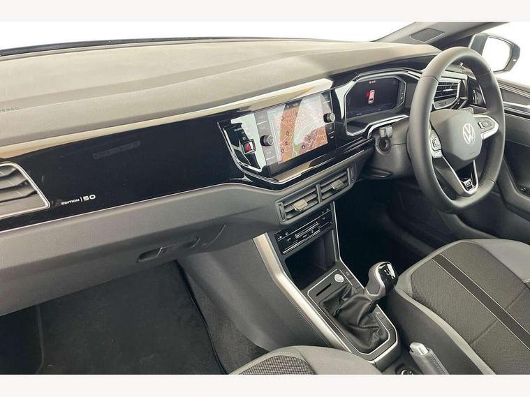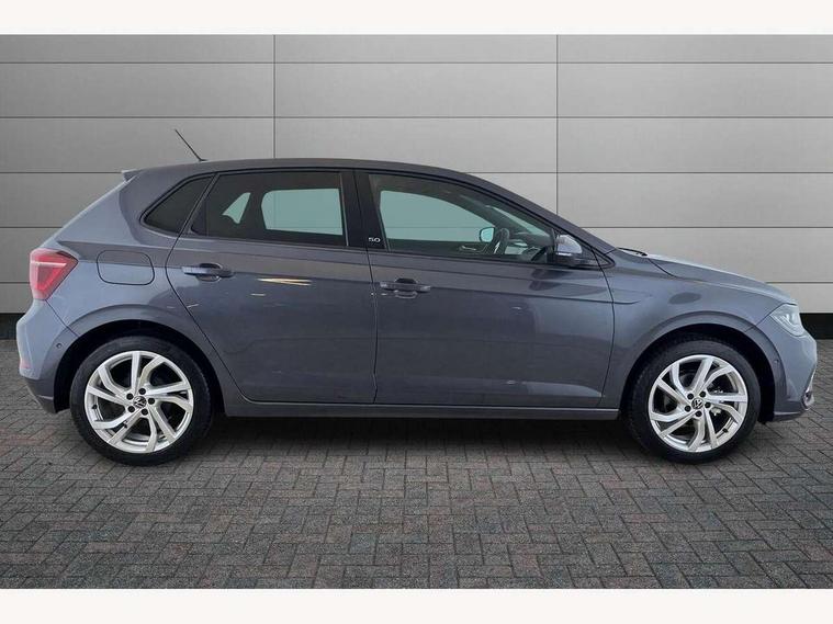 Advanced driver attention and drowsiness monitor, Bluetooth mobile phone interface, Cruise control + speed limiter, Digital Cockpit Pro with 10.25" Display, Driving mode selection, Dynamic road sign display, Emergency call service, Mobile phone preparation with inductive charging function, Multifunction camera, Park distance control, Power assisted speed sensitive steering, Preparation for navigation system with media and internet package, Preparation for We connect and We connect plus, Rear view camera, Speedo and rev counter, electronic odometer, trip, service interval display and exterior temperature gauge, Standard rear axle, Travel Assist - Lane keeping system and traffic jam assist, Trip computer, Warning signal and warning light for front and rear seatbelts not fastened, Washer fluid level indicator, Wireless app connect, Front wheel drive, Rear shock absorpion, Start-stop system with battery regeneration (recuperation - energy recovery during braking), DAB Digital radio, Diversity antenna for FM reception, Automatic dimming interior rear view mirror, Automatic headlight control with LED separate daytime running lights with coming/leaving home function, Body colour bumpers with chrome inserts, Body colour door handles, Edition 50 on scuff plates in door apertures, Electric front windows, Electric panoramic sunroof with glass sliding and tilting, Engine badge deletion, Heat insulating and laminated safety glass windshield, Power folding adjustable/heated exterior mirrors and front passenger exterior mirror lowering function, Rain sensor, Rear electric windows, Rear fog light, Rear side wing doors, Rear tinted glass from B-pillar backwards approx 65% tinted, Rear windscreen washer and wiper with interval delay, Third brake light, 12V power socket in centre console, 2 front and 2 rear reading lights with switch off delay and dimmer, 2 USB-C ports in the front, 2 USB-C charging sockets on the center console in the rear, 3 rear head restraints, 50 on steering wheel, 60/40 split folding rear seat and rear seat bench not split, Air care climatronic air conditoning system with active combination filter and 2-zone temperature control, Carpet mats, front and rear, Ceramique roof lining, Chrome plated radiator grille inserts, air vent surrounds and light switch surrounds, Door and side trim panel, Driver and front passenger seat height adjustment, Driver/passenger sunvisors with illuminated vanity mirrors, Front centre armrest, Front seat backrest storage pockets, Handbrake lever handle in leather, Headliner in recycled material, Isofix child seat preparation easy-fit (for two outer rear seats, and front passenger seat) compatible with I-size, Leather trimmed gear knob, Luggage compartment cover, Luggage compartment lighting, Lumbar adjustment for front seats, Removable luggage compartment floor, Single front passenger seat, Sports Edition 50 comfort seats in front, Standard pedal cluster, Three spoke leather wrapped multifunction steering wheel, Tracks cloth upholstery, Driver's assistance pack - Polo, IQ LED matrix headlights pack - Polo, Light and vision pack - Polo, 3 point height adj front seatbelts + pretensioners, 3x3 point rear seatbelts, ABS, Driver and front passenger airbag with front passenger airbag deactivation, Drivers and front passengers safety optimised head restraints, ESC (Electronic stability control) + EDL (Electronic Differntial lock) and ASR (Traction control), Extended and predictive pedestrian/ cyclist protection, Front assist with autonomous emergency braking (for Adaptive Cruise Control ACC up to 130 mph), Front curtain and side airbags with center airbag, Front disc brakes, Hill hold control, Manual child lock in rear doors, Rear drum brakes, Single tone horn, Tyre pressure loss indicator, Alarm with interior protection, Anti-theft alarm system with interior monitoring, backup horn, and towing protection, Anti-theft wheel bolts, Electronic engine immobiliser, Keyless locking and starting system keyless access with safelock, Low rolling resistance tyres,