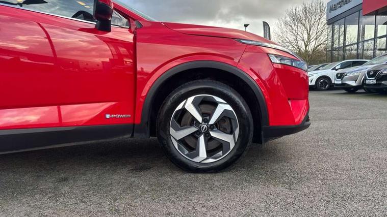7" High definition full colour TFT screen combimeter, Android auto/Apple CarPlay (Wired), Blind spot warning, Drive modes (sport, normal, eco), Electric speed sensitive power steering, Emergency and breakdown call, Idle stop/start system, Intelligent Cruise control (ICC), Intelligent driver alert system, Intelligent forward collision warning, Intelligent lane intervention, Lane departure prevention, Lane departure warning system, Maximum speed limiter, Nissan connect 8" touchscreen infotainment system, Push button starter, Rear cross traffic alert, Rear parking sensors, Rear view camera, Traffic sign recognition with legal speed adjustment, Trip computer, 6 speakers, AM/FM audio system with DAB, Bluetooth audio streaming, Front USB connections (Type-A and Type-C), Auto dimming rear view mirror, Auto rear wiper when reversing, Automatic hazard signal with emergency stop signal, Body colour mirror caps, Body coloured door handles, Bodyside mouldings, Chrome side window finisher, Door handle with button, e-POWER badging, Electric auto folding door mirrors, Electrically adjustable and heated door mirrors with LED turn indicator, Follow me home headlights, High beam assist, Intelligent auto headlights, LED daytime running lights, LED Headlights, LED rear lights, One touch front and rear electric windows with remote opening and closing, Partially body coloured bumpers, Rear reversing light (bulb lighting), Rear roof spoiler, Rear side wing doors, Shark fin antenna, Splash free rain sensing wipers, Three blink turn signal, 12v power socket in dashboard and luggage, 2x Rear coat hooks, 3 bench rear seats in 2nd row, 3 rear headrests, 4 folding assist grip, 6-way manually adjustable driver's seat, 60/40 split folding rear seat bench, Centre console storage tray, Chrome interior door handles, Cloth monoform upholstery, Driver and front passenger sunvisors with illuminated vanity mirrors, Driver seat back pocket, Dual zone automatic climate control with pollen filter, e-POWER shifter, Front and rear door storage, Front centre console and armrest, Front cupholders x 2, Front door with bottle holders, Glovebox with light, Hard trunk cover, Height adjustable driver's seat, Height adjustable front headrests, Height adjustable passenger seat, Leather steering wheel, Luggage space lighting, Manually adjustable passenger (slide recline + lifter), Multifunction steering wheel, Passenger seat back pocket, Rear armrest with 2 cupholders, Rear door bottle holders, Single front passenger seat, Steering wheel switches, Sunglasses holder, Tilt/telescopic adjustable steering wheel, Two rear isofix child seat anchorage points with top tether, 3x3 point rear seatbelt pretensioners + load limiters, ABS with EBD and brake assist, Active brake limited slip, Auto hold function, Child locks on rear doors, Curtain and front side, far side airbags, Driver and passenger airbags, Driver, passenger and 2nd row rear seat belt reminder, Electronic parking brake, Front seatbelt pretensioners + load limiters, Height adjustable front seatbelts, Hill start assist, Intelligent blind spot intervention, Intelligent front emergency braking with pedestrian, cyclist recognition and junction assist, Intelligent rear automatic braking, Tyre pressure monitoring system, Vehicle dynamic control, Capless fuel filler, Engine immobiliser, Intelligent Key, Remote central door locking with deadlocking, Thatcham Cat.1 alarm, Interior instrumental panel A finisher, 18" Diamond cut alloy wheels, Tyre puncture repair kit,