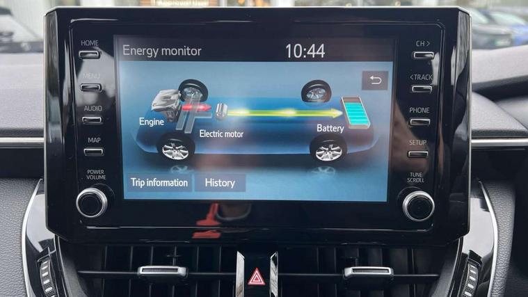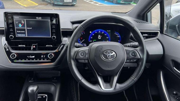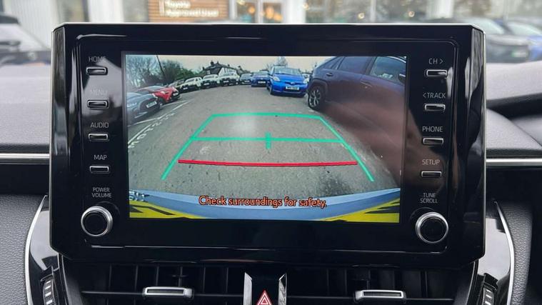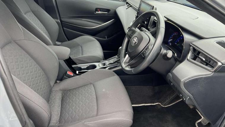 7" Multi information display screen, Bluetooth telephone connectivity, Connected car functionality upgrade, tracker, remote status and e-care, Dynamic radar cruise control (with RSA) including switch on steering wheel, E-call, Electrically assisted power steering, EV drive indicator, Lane Departure Alert (LDA) switch on steering wheel, Memory on adjustable speed limiter, Push button start, Reversing camera, Smartphone integration with Apple CarPlay and Android auto, Gasoline particulate filter, Vehicle Stability Control (VSC), 6 speakers, 8" Touchscreen with MM19 Multimedia system and voice recognition, AM/FM radio, DAB Digital radio, USB and Aux in connectors + 12V front outlet, USB charging port in centre storage box, Aluminium roof rails, Anti-jam protection on power windows, Auto up and down function on all power windows, Automatic headlights with high beam assist, Black metallic surround on lower front grille, Black toyota logo in front, Body colour rear spoiler, Body coloured bumpers, Body coloured door mirrors, Body coloured outside door handles, Follow me home headlights, LED daytime running lights, LED front fog lights, LED Headlights, LED High mounted stop light, Manual day/night rear view mirror, Noise reduction layer on front windows, Power adjustable heated door mirrors, Power front windows, Power rear windows, Rain sensor, Rear side wing doors, Rear window defogger, Rear window wiper, Shark fin antenna, Time adjustment on intermittent wiper, Turning signal integrated indicators in door mirrors, Unique lower skirt, Unique side rocker with black insert, UV-filter on driver and passenger windows, 12v power outlet - luggage side, 3 rear headrests, 3 seat bench in 2nd row, 3 spoke leather steering wheel + gear knob, 60/40 split folding rear seat, Adjustable speed limiter switch on steering wheel, Audio, multimedia and telephone switches on steering wheel, Boot light, Boot underfloor storage, Clean air filter, Driver and front passenger personal light, Driver and passenger assist grip, Driver and passenger sun visor with mirror and light, Dual sided deck board in boot, Dual zone automatic air conditioning with ECO mode switch, Fabric armrests, Front and rear cup and bottle holders, Front and rear door pockets, Front head restraints, Front passenger seat, Heated driver and front passenger seats, Illuminated entry system in room lamp, ISOFIX seat fixing (2 fixings on rear outer seats), Leather gear shift with satin chrome on gear shift console, Manual height adjustable for driver and front passenger seat, Passenger seat back pocket, Pollen filter, Power adjustable lumbar support on driver seat, Power window switches with satin chrome inserts, Quilted fabric upholstery with grey stitches seats, Rear armrest with 2 cupholders, Rear passenger air vents, Rear passenger coat hooks (2), Rear passenger personal lights, Retractable tonneau cover with luggage partition net, Satin chrome inside door handles, Shopping bag hooks in luggage compartment, Side storage in boot, Sliding armrest on centre console box, Slow opening glovebox with lights, Tilt/telescopic steering column, Tonneau cover with under floor storage, Voice recognition switch on steering wheel, Whiplash Injury Lessening (WIL) feature (active headrest) for seats, Toyota safety sense 2 pack - Corolla, 3x3 point rear seatbelts, Adjustable driver and front passenger seat belt extender to top anchor point, Anti lock braking system + Electronic brake force distribution, Brake assist function, Child locks on rear doors, Downhill Assist Control (DAC), Electronic parking brake, Emergency brake light signal (EBS), Front passenger airbag on/off switch, Front seatbelt reminder, HAC - Hill start assist control, Rear seat belt reminder, Seatbelt pretensioners and force limiters, Supplemental restraint system (SRS) 7 airbags - dual driver, dual side curtain, side impact and driver knee airbags, Traction control, Tyre pressure warning system, Acoustic vehicle alert system (AVAS), Alarm with motion sensor and immobilizer, Remote central locking + deadlocks, Satin chrome dash trim, Soft touch texture on upper dashboard, Stitching on lower dashboard, Space saver spare wheel, Unique wheel finish with red wheel cap,
