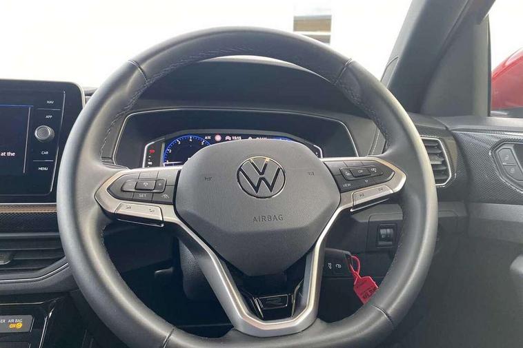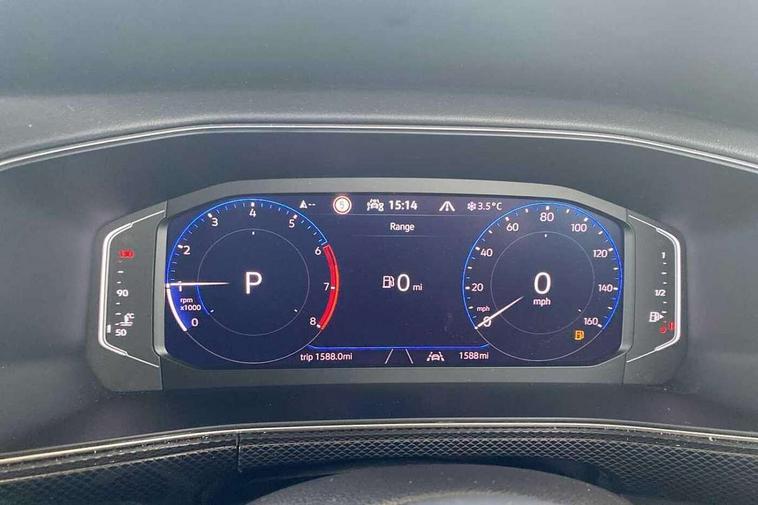 'Lights On' Reminder warning buzzer, 10.25" Digital cockpit pro, Advanced driver attention and drowsiness monitor, Blind spot monitoring, Car information display, Driver profile selection including ECO function, Dynamic road sign display, E-Sim card for online connectivity, eCall emergency call system, Front and rear parking sensors, Front assist, forward collision warning, autonomous emergency braking and speed limiter, Low washer fluid warning light, Multifunction computer with visual gear change recommendation for fuel consumption, Multifunction front facing camera for distance control, Operating permit alteration, Power assisted steering, Predictive adaptive cruise control, Preparation for navigation system with media and internet package, Preparation for We connect and We connect plus, Semi-automated driving assistance, travel assist including lane keeping system Lane Assist and emergency assisst, Speedo, rev counter, electronic odometer, trip, service interval display, exterior temperature and fuel gauge, Warning sound and light for doors and tailgate open, Warning sound and light for front seatbelts unfastened, Wireless Car net app connect with Apple CarPlay, combined functionality of Apple CarPlay/Android Auto and MirrorLink, Wireless charging, Misfuel prevention device, Start-stop system with battery regeneration (recuperation - energy recovery during braking), 2 USB C ports in front, 2 USB charging sockets on the centre console in the rear charging capacity upto 45W, Diversity antenna for FM reception, Music playback - MP3, WMA and AAC files, Radio, Automatic dimming interior rear view mirror, Automatic hazard lights activation under emergency braking, Automatic headlight control with LED separate daytime running light and coming home and leaving home feature, Body colour door handles, Body colour door mirrors, Body coloured bumpers, Dynamic headlight range control with self adjusting whilst driving, Electric folding door mirror, adjustable, heated with front passenger exterior mirror lowering function, Exterior mirrors convex on the left and aspherical on the right, Front and rear electric windows, Front door sill protectors with R-Line logo, Galvanised body, Heat insulating and laminated safety glass windshield, Heat insulating darkened glass in side and rear windows, High Beam Assist, automatic sensing for switching between dipped and main beam, LED rear combination lights, LED third brake light, Lower door sills and door pillars in black, Privacy glass for rear side windows and rear window, Rain sensor, Rear fog light on one side, reversing light on both sides, Rear side wing doors, Rear window aerial, Rear window wiper with intermittent control, Reflectors in all doors, Scuff plates, Tailgate with integrated roof spoiler, 12V Accessory socket in centre console, 2 Front and rear reading lights incorporating LED technology, 3 rear head restraints, 3 seat bench in 2nd row, 60/40 split folding rear seat backrest, Air care climatronic 2 zone air conditioning system, Ambient lighting, Brushed stainless steel pedals, Chrome plated radiator grille inserts, air vent surrounds and light switch surrounds, Cloth upholstery, Comfort front sport seats, Door and side trim panel, Drawer under drivers seat, Driver and front passenger sunvisor with vanity mirror, Dust and pollen filter, Front + rear carpet mats, Front centre armrest with storage compartment, Front footwell illumination, Front seat back storage pockets, Glove compartment door with light, Heated front seats, Heating and fresh air system with 4 stage blower, Height/reach adjust steering wheel, Instrument lighting white adjustable panel illumination, Interior light with switch off delay and dimmer, Isofix anchors for child seats on outer rear seats and front passenger seats, Leather gearshift handle, Leather wrapped multifunction steering wheel, Luggage compartment floor, Luggage compartment lighting, Manual front seats with height adjustment, Padded dashboard, Removable luggage compartment cover, Single front passenger seat, Storage compartment in drivers and front passengers door, Titanium black roof lining, Unsplit sliding rear seat bench, 3 point outer rear seat belts with ECE label, 3 Point seatbelt for centre rear seat, Anti-lock Braking System (ABS) with Hydraulic Brake Assist (HBA), Automatic post collision braking system, Disc brakes in front, Disc brakes in rear, Driver and front passenger safety-optimised head restraints, Drivers and Front Passengers airbags with front passengers airbag deactivation switch, ESC with EDL and ASR (traction control), Extended and predictive pedestrian/cyclist protection, Front and rear passenger curtain airbag system including front side airbags, Height adjustable front 3 point seatbelts + pretensioners, Hill start assist, Pre crash preventive occupant protection, Proactive passenger protection system in combination with front assist, Rear door child safety locks, Rigid safety cell with front and rear crumple zones, Single tone horn, Tyre pressure loss indicator, Volkswagen roadside assistance, Alarm with interior protection, Anti theft alarm system, Electronic engine immobiliser, Remote tailgate unlocking using key fob, Titanium Black Decorative inserts - R Line, Low rolling resistance tyres,