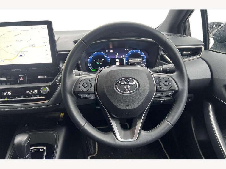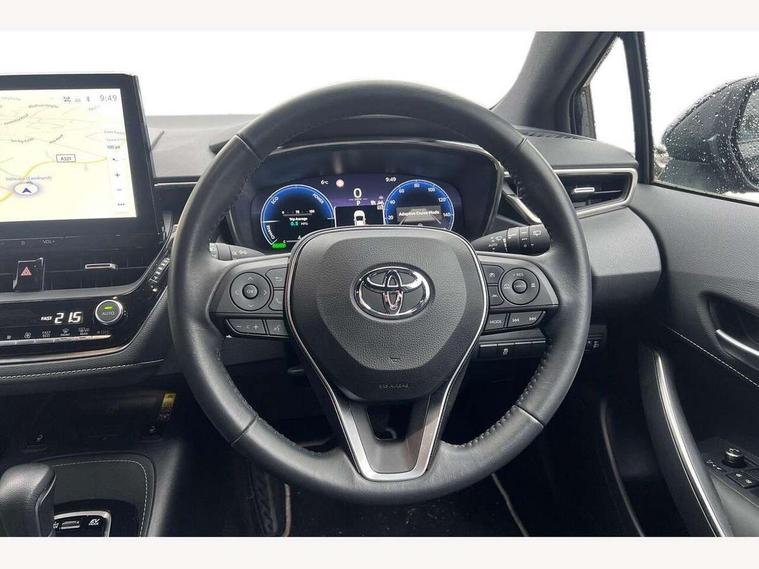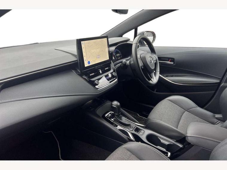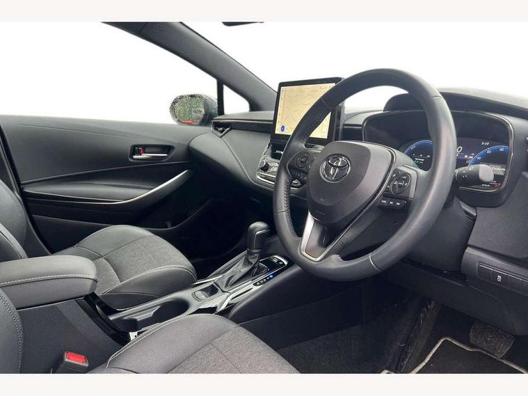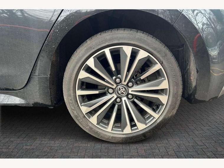 10.5" Multimedia display screen, Attention assist, Bluetooth telephone connectivity, Connected car functionality upgrade, tracker, remote status and e-care, Drive mode select (Eco, Normal), E-call, Electrically assisted power steering, EV drive indicator, Front and rear parking sensors with auto brake, Full Digital 12.3" TFT Digital Combimeter, Key reminder warning, Lane Departure Alert (LDA) switch on steering wheel, Memory on adjustable speed limiter, MyT connected services, Proactive driving assist (PDA), Reversing camera, Smartphone integration with Apple CarPlay and wired android auto, Tailgate, Toyota remote services, Toyota smart connect navigation, Wireless charger, Gasoline particulate filter, Vehicle Stability Control (VSC), 6 speakers, AM/FM radio, DAB Digital radio, Front USB-C in dashboard, Smart voice assist/ Voice recognition, USB and Aux in connectors + 12V front outlet, Anti-jam protection on power windows, Auto up and down function on all power windows, Automatic folding mirrors, Automatic headlights with high beam assist, Black centre and side air vents, Black metallic meshed front grille, Black toyota logo in front, Body coloured bumpers, Body coloured door mirrors, Body coloured front spoiler, Body coloured outside door handles, COROLLA alloy door scuff plates, Electrochromatic mirror, Follow me home headlights, LED daytime running lights, LED dual beam projector headlights, LED front fog lights, LED High mounted stop light, LED multi reflector in headlights, LED rear combi lights with LED lightguide, Manual headlight levelling system, New grille pattern, Noise reduction layer on windscreen, Piano black diffuser, Power adjustable heated door mirrors, Power front windows, Power rear windows, Privacy glass with UV filter, Rain sensing wipers, Rear bumper decoration with chrome plated inserts, Rear side wing doors, Rear under guard with chrome ornament, Rear window defogger, Rear window wiper, Reverse tilting door mirrors, Roof spoiler, Satin chrome insert on front air vents, Satin chrome insert on front door assist grips, Shark fin antenna, Tailgate release with push button, Time adjustment on intermittent wiper, Turning signal integrated indicators in door mirrors, Unique lower skirt, Unique side rocker with black insert, UV-filter on driver and passenger windows, 2 Shopping bag hooks in luggage compartment, 3 rear headrests, 3 seat bench in 2nd row, 3 spoke leather steering wheel with satin insert + gear knob, 4 tie down hooks in luggage compartment, 60/40 split folding rear seat, Adaptive cruise control (ACC) switch on steering wheel, Adjustable speed limiter switch on steering wheel, Audio, multimedia and telephone switches on steering wheel, Black armrest on centre console box, Black gear shift console, Boot light, Centre room light, Driver and front passenger personal light, Driver and passenger assist grip, Driver and passenger sun visor with mirror and light, Dual zone automatic air conditioning with ECO mode switch, Fabric/synthetic leather upholstery, Front and rear cup and bottle holders, Front door pockets, Front head restraints, Front passenger seat, Front sliding synthetic leather armrest, Heated seats, Illuminated entry system in room lamp, ISOFIX seat fixing (2 fixings on rear outer seats), Leather gear shift with satin chrome on gear shift console, Manual height adjustable for driver and front passenger seat, Manually tilt with sliding driver and front passenger seat, Parcel shelf, Passenger seat back pocket, Pollen filter, Power adjustable lumbar support on driver seat, Power window switches with satin chrome inserts, Rear armrest with 2 cupholders, Rear passenger coat hooks (2), Remote air conditioning, Satin chrome inside door handles, Satin chrome surround on heater control panel, Satin chrome surround on speedometer, Sliding armrest on centre console box, Slow opening glovebox with lights, Textile floor mats, Tilt/telescopic steering column, Voice recognition switch on steering wheel, Whiplash Injury Lessening (WIL) feature (active headrest) for seats, White ambient lighting on open tray and front cup holder, Toyota safety sense 3 pack - Corolla, 3x3 point rear seatbelts, Adjustable driver and front passenger seat belt extender to top anchor point, Anti lock braking system + Electronic brake force distribution, Brake assist function, Child locks on rear doors, Downhill Assist Control (DAC), Electronic parking brake, Emergency brake light signal (EBS), Front passenger airbag on/off switch, Front seatbelt reminder, HAC - Hill start assist control, Rear seat belt reminder, Seatbelt pretensioners and force limiters, Supplemental restraint system (SRS) 7 airbags - dual driver, dual side curtain, side impact and driver knee airbags, Traction control, Tyre pressure warning system, Acoustic vehicle alert system (AVAS), Alarm with motion sensor and immobilizer, Power passenger window lock, Remote central locking + deadlocks, Satin chrome dash trim, Soft touch texture on upper dashboard, Stitching on lower dashboard, 17" Black machined face 5 double spoke alloy wheels, Tyre repair kit, Unique wheel finish with red wheel cap,