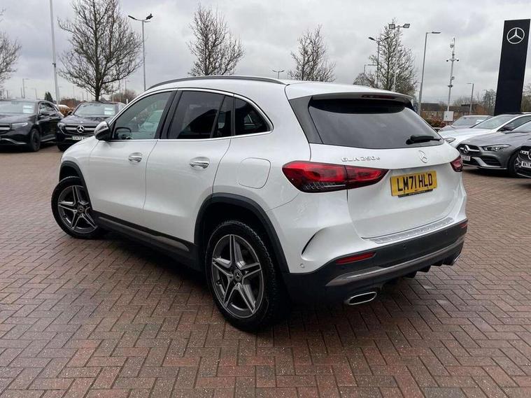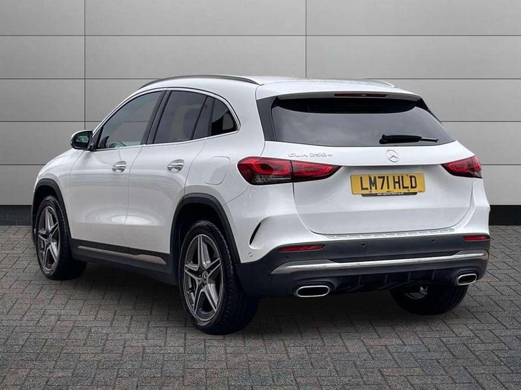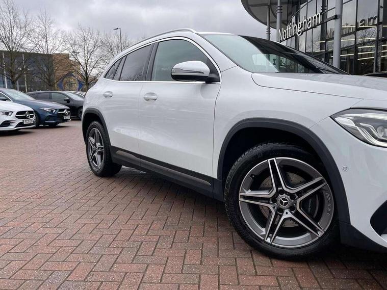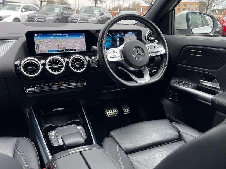 10.25 inch touchscreen central media display, 10.25" Digital instrument cluster display screen, Acoustic ambient protection, Active lane keeping assist, Attention assist, Cruise control + speed limiter, Direct steering, DYNAMIC SELECT with a choice of driving modes (ECO, Comfort, Sport and Individual), ECO start/stop function, Fluid level warning indicator for fuel, oil, coolant and washer fluid, Hard-disk navigation, Hey Mercedes Voice activation, Lamp failure indicator, Mercedes me connect including emergency call system, accident recovery, breakdown and maintenance management, Mercedes me remote services, Multi function trip computer, Outside temperature gauge, Owners manual and service booklet in English, Pre-installation of private car share, Radio aerial integrated into front and rear windshields, Remote and charging services plus, Service indicator (ASSYST), Smartphone integration with Apple CarPlay and Android auto, Speed limit assist, Status display for rear seat belts in instrument cluster, 7.4 kW onboard charger, Charging system - AC charging system rated at 7.4 kW, Comfort suspension, Mode 2 charging cable with 3 pin plug, Mode 3 charging cable 22 kW, Rear axle multi-link, 2 USB ports (type C) in rear stowage compartment and one in front of center console, Bluetooth connectivity including audio streaming, DAB Digital radio, MBUX multimedia system, Media interface, Mercedes-Benz sound system - 100W, Adaptive brake lights, Aerial for GPS, Aluminium roof rails, AMG front and rear apron, AMG specific/dual flow exhaust pipes in chrome (non-functional), Automatic headlamp activation, Beltline strips and weather strip in chrome, Black grained claddings with chrome parts, Body colour bumpers, Body colour door mirrors, Body coloured door handles with chrome insert for keyless entry, Car wash function, Dark privacy glass from B-pillar backwards, Electric front windows, Electric rear windows, Electrically adjustable and heated door mirrors with integrated LED indicators, Heated glass rear windscreen + timer control, Heated windscreen wash system, Interior mirror with black reading lamps and frameless, LED high performance headlamps with integrated LED daytime running lights, LED tail lights in two piece design, LED third brake light, Matt titanium grey front and rear apron trim, Pre-installation for trailer coupling, Rain sensor windscreen wipers, Rear fog lights, Roof spoiler, Single lamella raditor grille with chrome dotted diamond grille and inlay, 12V power socket in centre console, 3 spoke multifunction sports steering wheel in nappa leather with flattened bottom and perforated grip area, 40:20:40 split folding rear seat backrests, Adjustable head restraints, Air conditioning - Two zone thermotronic luxury automatic climate control with display, Ambient lighting in front headrests, AMG floor mats with AMG lettering and stiched edging, Auto Mercedes-Benz child seat recognition sensor, Black roof lining, Brushed door pulls in silver chrome, Charging socket, Courtesy light in boot, Front centre armrest with stowage, Galvanished gear shift paddles on steering wheel, Heated front seats, illuminated door sills with changeable cover, Illuminated glovebox, Interior lighting - 64 colour Ambient lighting, Leather trimmed gearknob, Luggage net on driver/front passenger seat backrest, Manually height and reach adjustable steering column, Multi-gesture touchpad control on center console, Pre-entry climate control, Sports pedals in brushed stainless steel with black rubber studs, Sports seats, Stowage compartment in centre console, Stowage compartment with retractable cover, Sunvisors with illuminated vanity mirrors, Twin front cup holders, Two outer rear seat isofix and top tether child seat fixing points, AMG body styling pack - GLA, Comfort seat pack - GLA Class, Interior lighting with light and sight pack - GLA, Load compartment pack - GLA, Mirror pack - GLA Class, Parking pack - GLA, 3 rear 3 point seatbelts, ABS with Brake Assist, Active bonnet pedestrain safety measure which detects an impact and raises bonnet by 65mm, Active brake assist includes forward collision warning system with autonomous braking, Adaptive brake assist with hold function and hill start assist, Bonnet with power domes, Brake pad wear warning indicator, Childproof locks manually operated for rear doors and electrically operated for rear power windows, Crash responsive emergency lighting, Driver and passenger head and side airbags, Drivers knee airbag, Dual stage driver/passenger airbags, Electronic parking brake, ESP curve dynamic assist, ESP with ASR, Front and rear seatbelt reminder, Front brake callipers with Mercedes Benz logo lettering on front, Front brake discs internally ventilated and perforated, Front passenger seat occupancy sensor, Radar-based recuperation, Tyre pressure monitoring system, Warning triangle and first aid kit, Window airbags, Alarm system with immobiliser and interior protection -Thatcham category 1, Keyless Go starting function, Remote central locking and crash sensor with emergency opening function, Urban guard vehicle protection, Vehicle key with decorative surround in chrome, Carbon structure trim, Chrome air vent surrounds, 19" AMG 5 twin spoke light alloy wheels aerodynamically optimised painted in tantalite grey with a high sheen finish, Summer tyres, Tirefit tyre sealant kit,