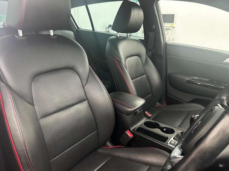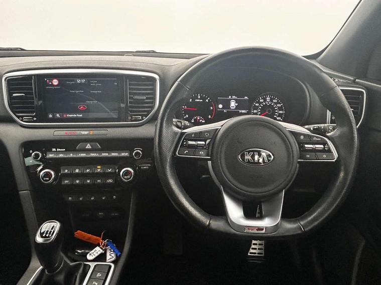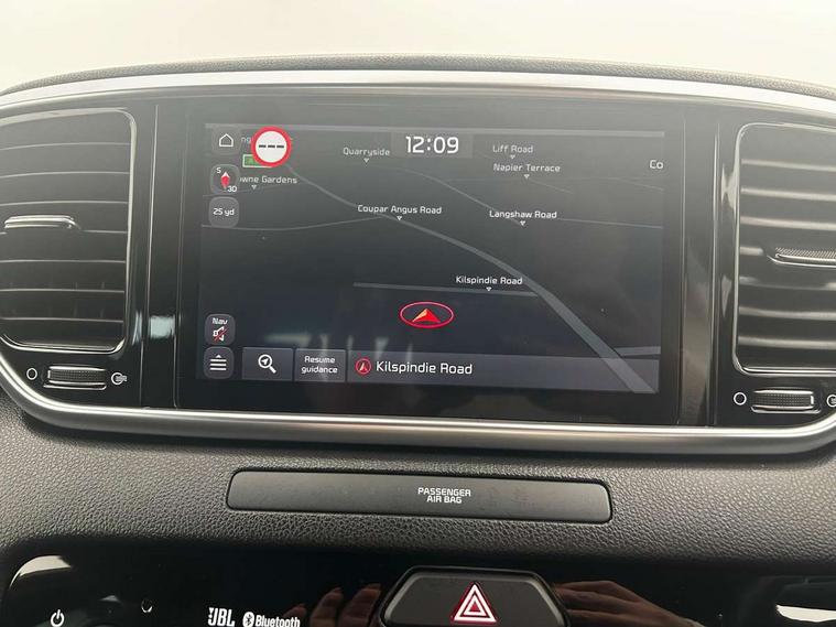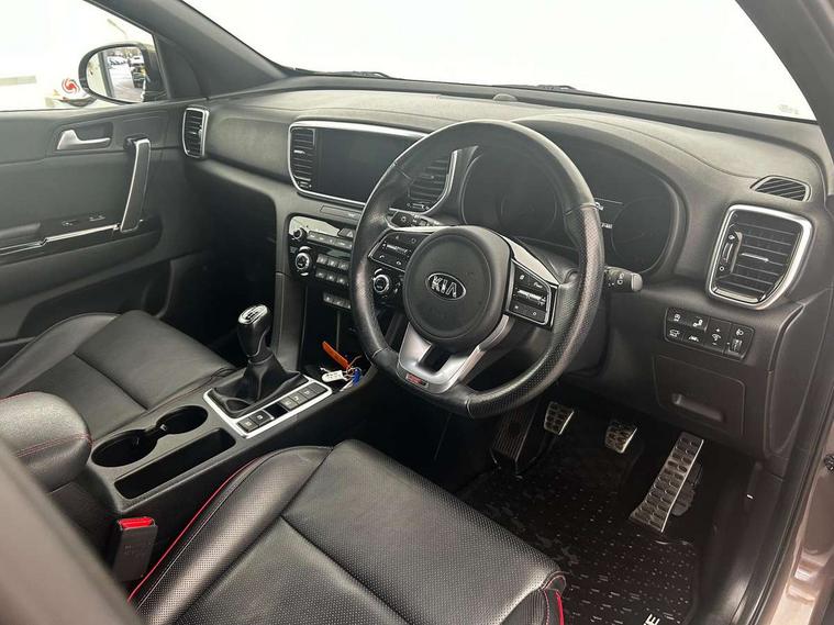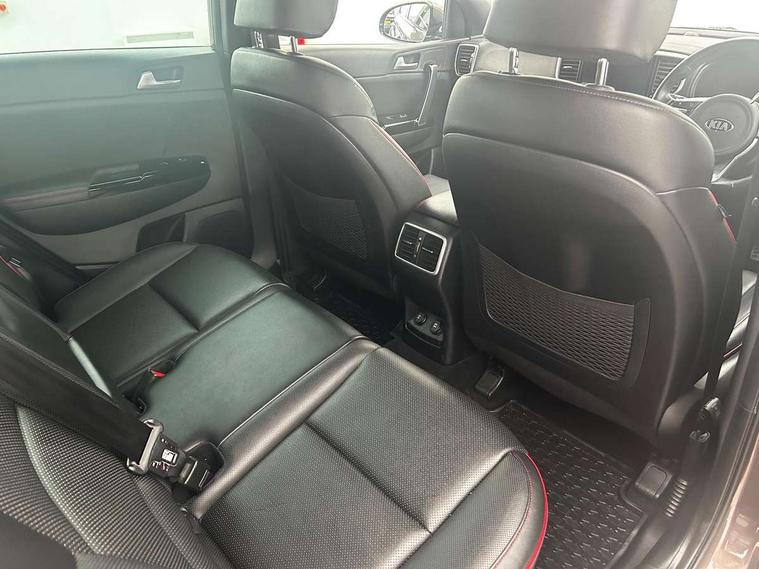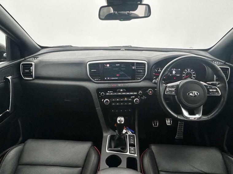 360 degree around view monitor, 4.2" supervision colour cluster display, 8" touchscreen satellite navigation with European mapping and traffic messaging channel, Android auto with voice control, Apple car play with voice control, Blind spot collision warning, Cruise control + speed limiter, Driver attention warning, Emergency stop signalling system, Forward collision avoidance assist, Front parking sensor, Kia connected services featuring TomTom live, Lane keep assist, Rear parking sensor, Reversing camera, Smart power tailgate, Speed limit information, Speed sensitive power steering, Telematics system with UVO connect services, Trip computer, Windscreen washer level indicator, Intelligent Stop and Go, Bluetooth audio streaming, DAB Radio with MP3, JBL Premium sound system with 8 speakers, external amp, subwoofer and front centre speaker, Rear USB port, Steering wheel mounted audio controls, USB/iPod/auxiliary input connections, All round electric windows with drivers and front passenger auto up/down function, Auto dimming rear view mirror, Automatic lighting control, Automatic window defogger, Black wheel arch body mouldings and side sills with dark chrome insert, Body colour door handles with chrome inserts, Body colour door mirrors, Chrome window surround, Dark chrome front bumper insert, Dark chrome front grille surround, Dual exhaust pipes, EcoDynamics + Badge, Electric panoramic glass sunroof (Electric one touch with safety function), Electrically adjustable/heated/folding door mirrors with LED indicators, Front wiper de-icer, High beam assist, High gloss black blade mesh radiator grille, LED Bi-Function headlights, LED daytime running lights, LED ice cube front fog lights, LED rear lights, Privacy glass - Rear windows and tailgate, Rain sensing front wipers, Rear spoiler, Rear wiper, Roof rails, Shark fin antenna, Silver painted front and rear skid plates, Tinted glass, Trailer stability assist, Welcome and follow-me home light functionality, Wide view drivers door mirror, 10 way driver/8 way passenger electrically power adjustable seats, 12V power in front and rear centre console, 3 x passenger assist grips, 60/40 split folding rear seat, Air filter, All-round height adjustable headrests, Aluminium door scuff plates, Aluminium pedals, Black headlining, Centre console storage box, Chrome boot sill guard, D-Shaped sports leather steering wheel and perforated inserts with GT-Line logo, Driver and front passenger side sunvisors with illuminated vanity mirrors, Drivers seat power lumbar support, Dual zone automatic air conditioning, Front and rear door storage, Front cabin LED map light with sunglasses case, Front door courtesy reflectors, Front seat and rear pockets, Front/rear centre armrests, Gear shift indicator, Glovebox illumination, Heated front and outer rear seats, Heated steering wheel, Interior door lock/unlock function, ISOFIX Child seat top tethers and anchor fixings outer rear seats, Leather trimmed door armrests, Leather trimmed gearshift, Leather upholstery with red piping and stitching, Luggage area LED light, Luggage area load cover, Luggage net hooks, Rear centre armrest with cupholder, Rear coat hooks, Satin chrome interior door handles, Side cabin LED lights, Tilt/telescopic adjustable steering wheel, Ventilated front seats, Ventilation ducts to rear compartment, Active front headrests, All round 3-point seatbelts, Anti-lock braking system with electronic brakeforce distribution, Dual front side airbags, Electronic parking brake, Electronic stability control with downhill brake control, Front passenger airbag cut-off switch, Front seatbelt pretensioners + load limiters, Height adjustable front seatbelts, Hill start assist control (HAC), Impact sensing auto door unlocking, Rear door child safety locks, Traction control, Twin curtain airbags with roll over sensor, Twin front airbags, Tyre pressure monitoring system, Advanced anti-theft system including immobiliser and alarm, Door deadlocks, Engine Start/Stop Button with Smart Entry System, Locking wheel nuts, Speed sensitive auto door locking, Visible vehicle identification number, High gloss black centre fascia, 19" alloy Wheels B-type, Tyre mobility kit,