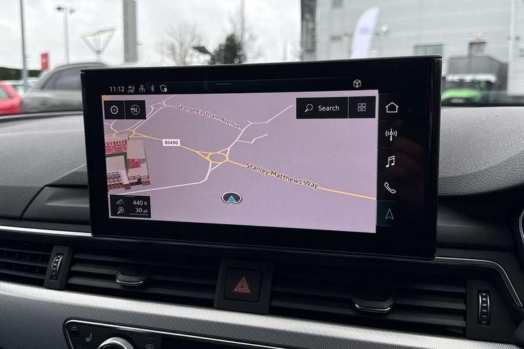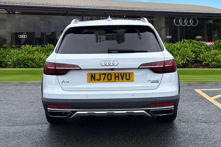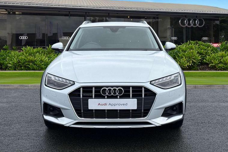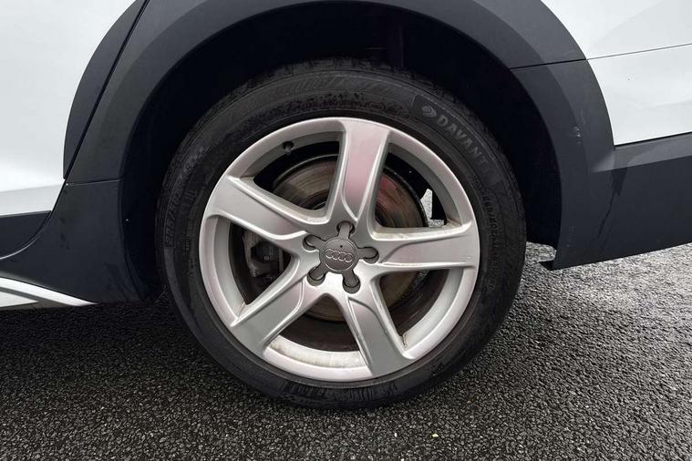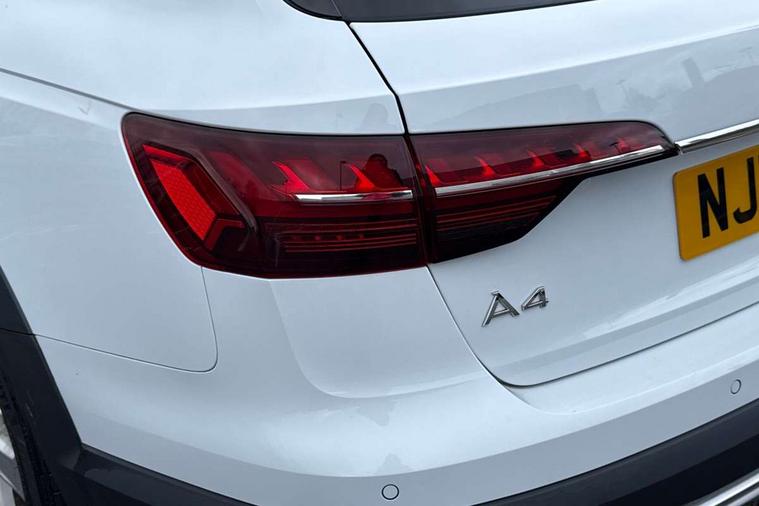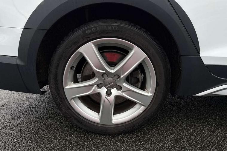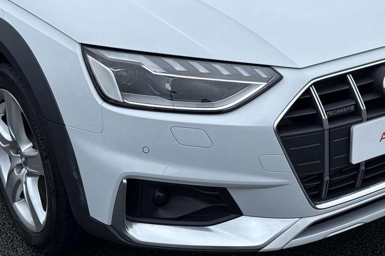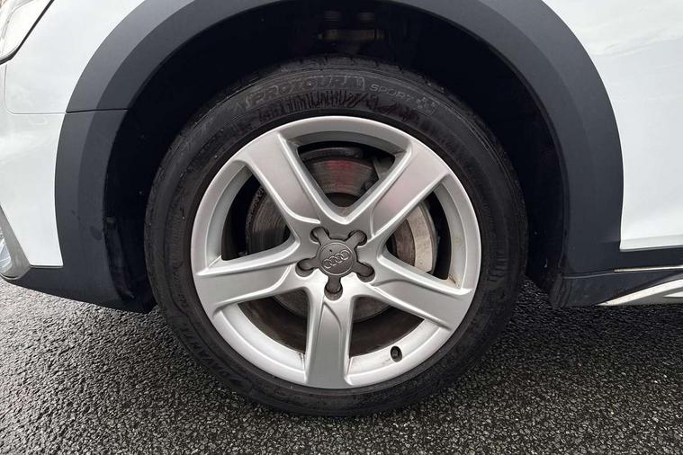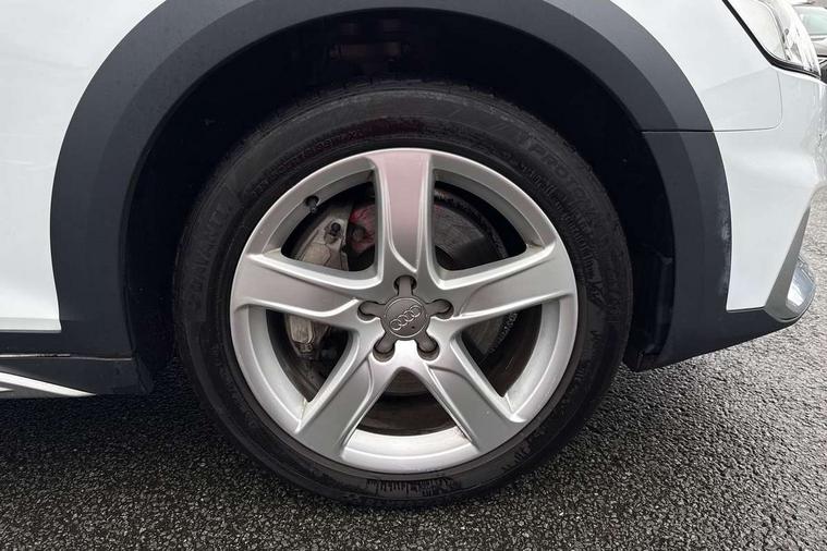 Audi connect safety and service (e-call), Audi drive select, Audi parking system plus with front and rear sensors, Audi smartphone interface, Audi virtual cockpit, Automatic start-stop system with coasting functionality and efficiency programme, Bluetooth interface, Electromechanical power steering, MMI Navigation plus with MMI touch includes 10.1" high resolution colour MMI display, 3D map, Power operated tailgate, Rear view camera, Voice control system, 58 Litre fuel tank, Comfort dynamic suspension, Quattro all wheel drive, 2 USB charging ports, 8 passive loudspeakers, CD Drive, DAB digital radio reception, Allroad radiator grille with vertical chrome slats, Auto dimming rear view mirror, Body coloured door mirrors, Chrome plated exhaust trims, Door sill trims in aluminium inlay with allroad logo, Electrically folding auto dimming/adjustable/heated door mirrors with LED side indicators and kerb view function for passenger side, Extended side sills in selenite silver, Front acoustic glazing, Front and rear bumpers and extended wheel arches in contrasting finish, High beam assistant, LED headlights with LED rear lights + dynamic rear indicators + headlight adjustment and high beam, turning light + LED daytime running lights, Privacy glass, Rain and light sensors, Underbody protection, Windscreen with acoustic glazing, 3 spoke high multi-function leather sport steering wheel with paddle shift and height and reach adjustable, 4 way electric lumbar support for driver and front passenger, 40/20/40 split folding 3 rear seat bench in 3 parts with rear centre armrest, Deluxe 3 zone electronic climate control, Electric load area cover, Front and rear head restraints, Front centre armrest, Heated front seats, ISOFIX child seat mounting and top tether, Manual seat adjustment, Stainless steel loading sill protector, Tool kit, Twin leather upholstery + front sports seats, Exterior off road aluminium package - A4 Allroad, High gloss package - A4, LED Interior light pack - A4/S4, Storage and luggage compartment pack - A4, 3 rear seatbelts, 6 airbags - Driver, front passenger, curtain and side windows, Electronic Stabilisation Control (ESC) including ABS, ASR and EDL, Hill hold assist, Multi collision brake assist, Off road detection system, Pop-up bonnet for pedestrian protection, Pre sense city, Seatbelt monitoring, Warning triangle and first aid kit, Anti theft alarm, Anti theft wheel bolts, Keyless Go, Aluminium ellipse silver inlays, Tyre repair kit,