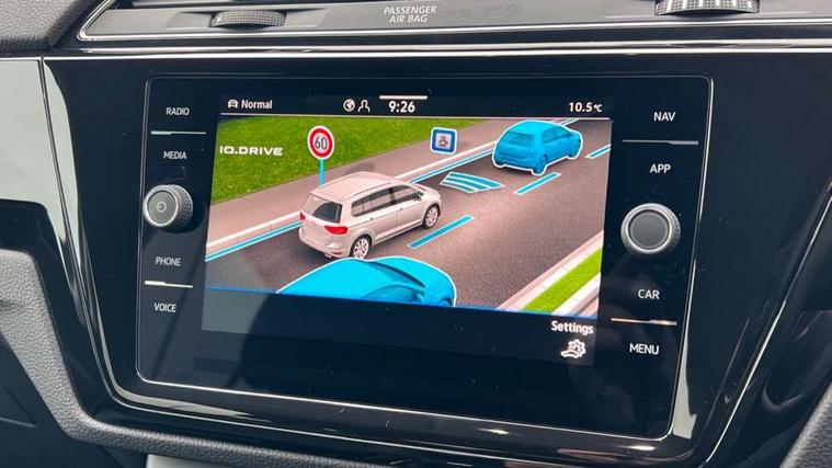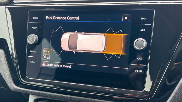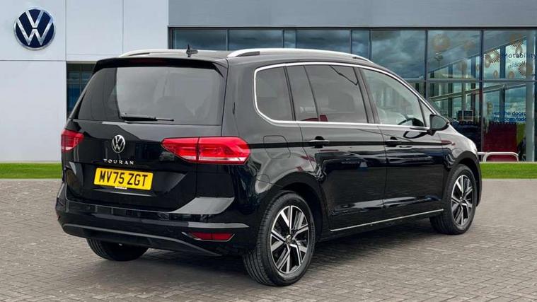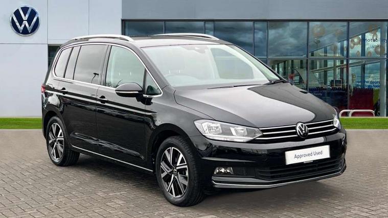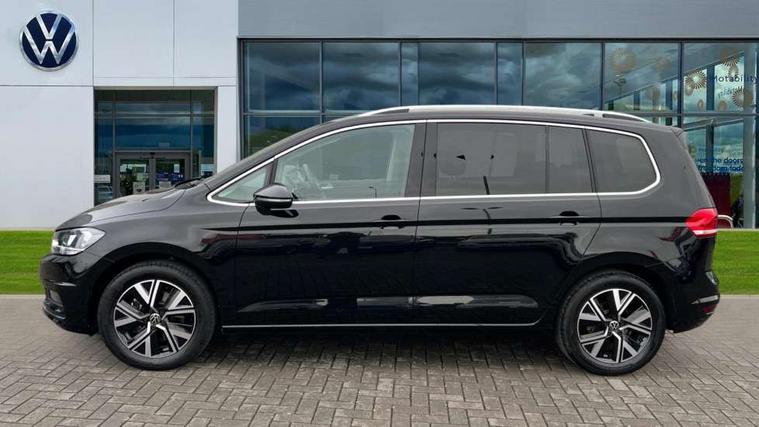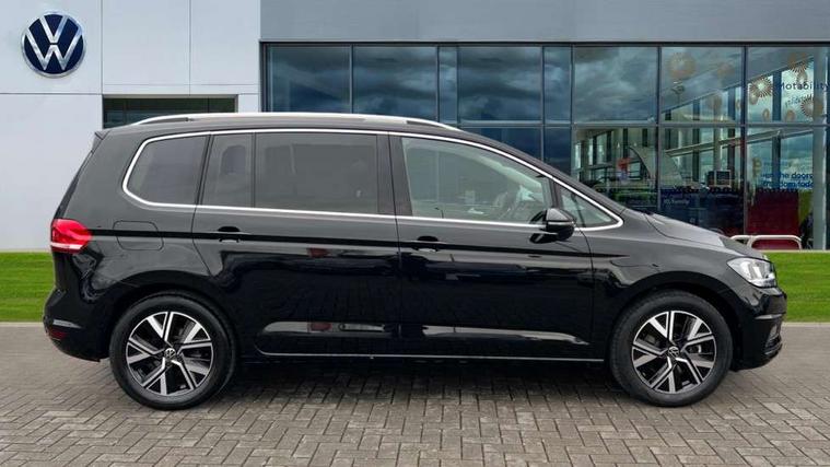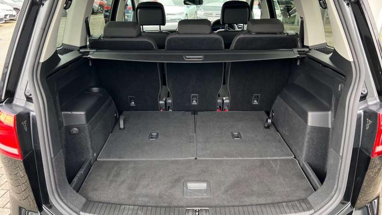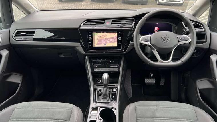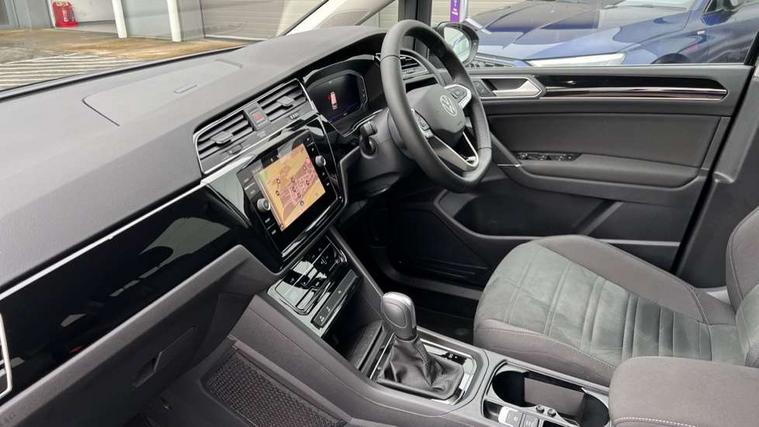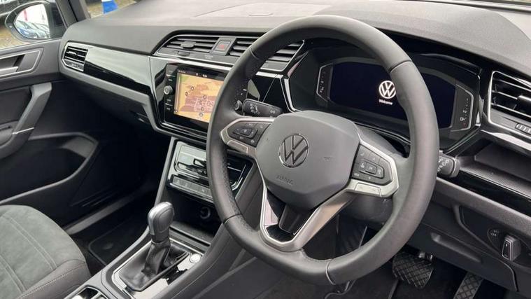 Active info display - Digital cockpit 10.25" HD display screen, Adaptive cruise control, Audible lights on warning, Discover media navigation touchscreen navigation/radio system with streaming and internet, Driver alert system, Driver electronic voice amplification function, Driver profile selection, Dynamic road sign display, Electronic odometer, Emergency services call system, Extended, crash-active and proactive Pedestrian and cyclist monitoring, External temperature gauge, Front parking sensors, Lane change system side assist and rear traffic alert, Lane keep assist, Mobile pairing with SMS function, Mobile phone interface with inductive charging, Rev counter with fuel gauge, Speed limiter, Speed sensitive power steering, Stop/start system, Think blue trainer driver tips and journey analysis, Trip and service interval display, Wireless app connect without mirror link, Petrol Particulate Filter, XDS electronic differential lock, 4x20 watt output, 8 Speakers, Audio Connectivity System, DAB Digital radio, External USB-C data socket with increased charging performance - 2 USB sockets 45W, MP3/WMA compatability, SD card slot, Title and cover art display, USB connection, Aerial integrated into side window, Auto dimming door mirrors, on driver side, surround lighting and front passenger side mirror lowering function, Auto dimming rear view mirror, Automatic coming/leaving home lighting function, Body colour bumpers, Body colour door handles, Body colour door mirrors with integral indicators, Chrome fog light surround, Chrome lower front bumper insert, Chrome trimmed front air intake surrounds, Chrome trimmed radiator grille louvre inserts, Chrome trimmed side windows, Dusk sensor + auto driving lights, Front and rear electric windows, Front fog lights with static cornering function, Fully galvanised body, Gloss black finish B pillar, Green tinted heat insulating glass, High level third brake light, Rain sensor, Rear side wing doors, Rear tinted glass from B-pillar backwards approx 65% tinted, Rear wash/wipe with intermittent wipe setting, Silver roof rails, Tailgate wiper- reverse gear activation, Twin chrome exhaust tailpipes, Volkswagen roundel, Windscreen wipers intermittent wipe, 12V power point for Row 2, 12V socket in luggage compartment, 2 individual fold flat 3rd row seats, 2 three point seatbelts in 3rd row, 2nd row centre armrest, 2nd row centre seat converts into table, 3 single slide/fold/removable 2nd row seats, 3 spoke steering wheel, 3 Zone electronic climate control with automatic air recirculation, 3x3 point seatbelts on 2nd row with height adjust on outer seats, 4 boot load lashing points, 4 way adjustable front head restraints, 5 headrests, Ambient lighting in door trim and foot well, Art velour/Microfibre cloth upholstery, Driver and front passenger under seat drawer, Dust/pollen filters, Foldable front passenger seat backrest, Front + rear carpet mats, Front and rear reading lights, Front centre armrest with storage compartment, Front comfort seats with lumbar support, Front cupholders x 2, Front passenger seat height adjust, Front seat storage pockets, Front seatback folding tables, Height adjustable driver's seat, Height/reach adjust steering wheel, Illuminated glovebox, Illuminated vanity mirrors, Instrument lighting white adjustable panel illumination with red night time illumination, Interior light with delay, Isofix on 2nd row outer seats, Isofix on 3rd row seats, Large storage compartment in roof console, Leatherette on rear of front seats, Low tunnel 2nd row seat, Luggage compartment lighting, Media box in dashboard on passenger side, Multi storage in passenger/luggage areas, Multi-function centre console with storage facilities, Multifunction leather trimmed steering wheel including leather trimmed gear knob with 3.5" screen with multifunction computer, Retractable luggage cover, Split folding rear seat backrests, Storage bins on all doors, Mirror pack - Touran, 3 point height adjustable front seatbelts, Auto hold function, Automatic post collision braking system, Door open warning reflectors, Driver/Front Passenger airbags, Drivers knee airbag, EDL + ASR, Electrically operated child locks on rear doors, Electronic parking brake, Energy recovery system, ESC with ABS, First aid kit, Front and rear (row 2) curtain airbags, Front assist including city emergency braking, Front seat side impact airbags, Front seatbelt pretensioners, Front/rear disc brakes, Hill hold control, Hydraulic Brake Assist (HBA), Loose wheel warning function, Manual passenger airbag deactivation function, Pre crash preventive occupant protection, Proactive passenger protection system with front and side assist, Rear child proof door locks, Seatbelt warning lamp and buzzer, Traction control, Two tone horn, Warning triangle, Alarm with remote central locking and interior protection, Electronic engine immobiliser, Chrome plated instrument surrounds, Piano black decorative inserts, 17" Alexandria alloy wheels with self sealing tyres and anti-theft wheel bolts,