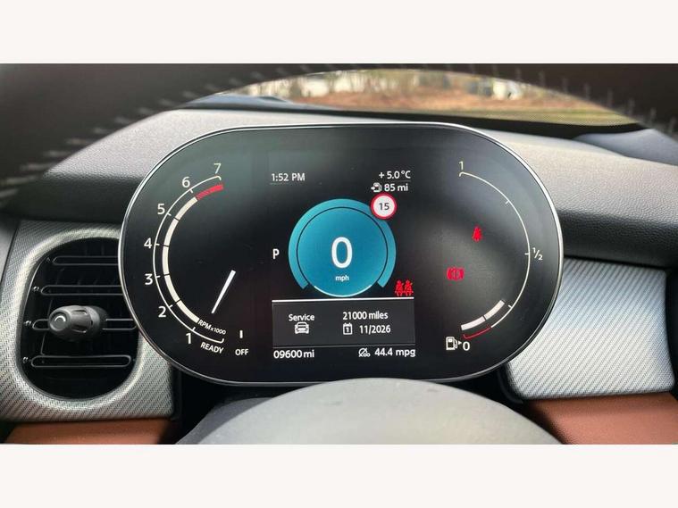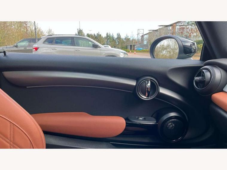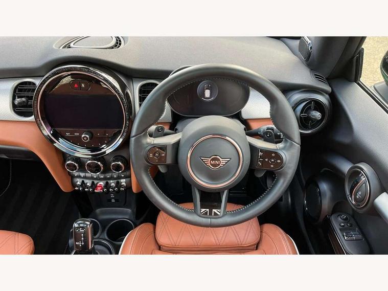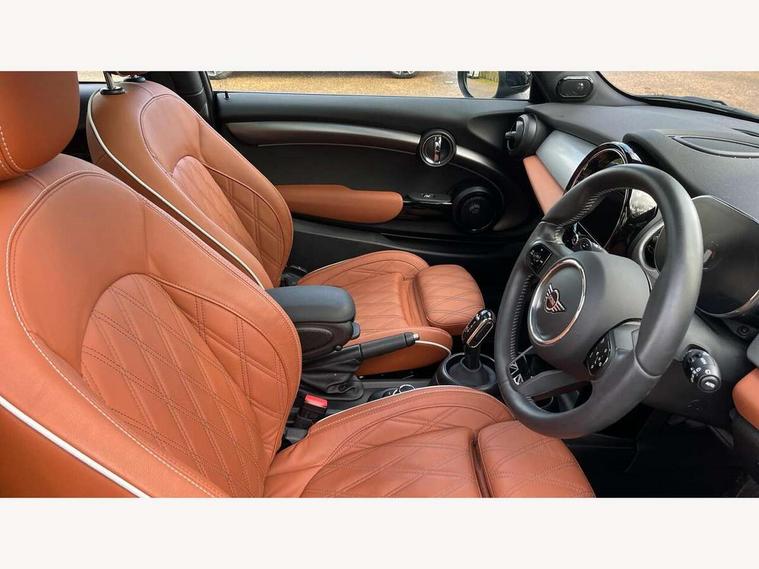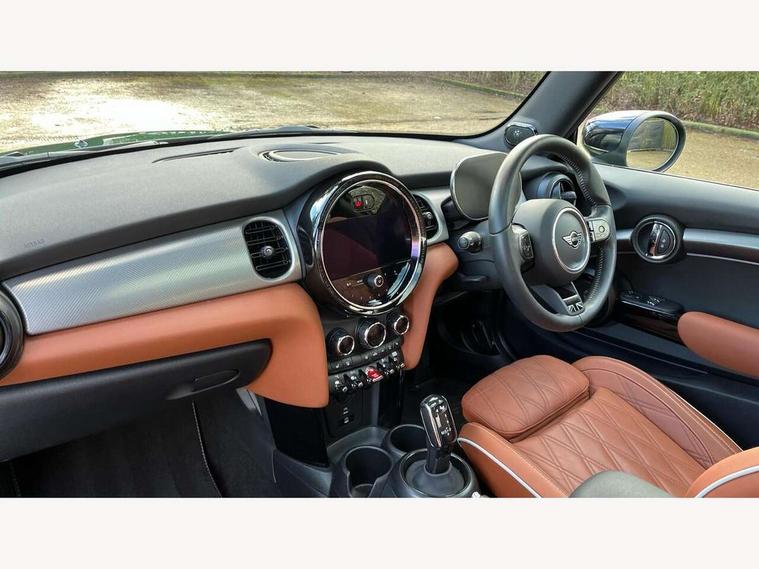 Apple CarPlay, Automatic start/stop function with brake energy recuperation, Compatible mobile phone bluetooth with audio streaming, Cruise control with brake assist, Electro-mechanical speed dependant steering assistance, Flexible car sharing preparation, Instrument cluster, MINI Driving Modes - centre toggle switch to control driving setting (sport, mid and green), Mini E-call, MINI TeleServices, On board computer, Rear park distance control, Service interval indicator, Double Vanos system, Fully variable valve control, High precision injection, Performance Control, Steptronic sport transmission with double clutch and steering wheel paddles, 8.8" touchscreen with LED ring, FM tuner and DAB digital radio, 3rd brake light, Automatic headlight activation switch, Bonnet scoop, Chrome line exterior - radiator grille bars, tailgate handle, lower front grille grating and rear central fog-light, Dynamic brake lights, Electric front windows, Heated rear window, Heated windscreen washer jets, LED headlight with closed ring and daytime driving lights, Metal door sill strips with Cooper S, Model logo Cooper S on right of tailgate, Rain sensor window wipers, Rear fog lights, Rear LED lights with union jack design, Rear window wiper, Side scuttle panel with integrated indicator, Sun/heat protection glass, White indicator lenses, 12V Accessory socket in centre console, 2 seat bench in 2nd row, 4 lashing eyes in luggage compartment, 60/40 split folding rear seat, Carbon black colour line - Knee roll and door armrest, Chrome interior highlights, Chrome line interior - air vents, gear lever base, door handles and speakers in doors, Cupholders, Front and rear head restraints, Front and rear isofix with front passenger airbag deactivation, Front floor mats in velour, Glove compartment, Height and length steering column adjustment, Interior lighting with 12 different colours across the dashboard, underneath door bezel with illuminated laser-engraved design on central display, Leatherette gearshift lever and handbrake gaiters, LED reading lights, vanity mirror lights, front foot well light and spotlight on front seats, Manual air conditioning, Mechanical seat adjustment - forward/back & backrest for front seats and driver seat height adjust, MINI yours badge on exterior pillar, Multifunction steering wheel, Passenger seat height adjuster, Satellite grey headlining including grab handles and clothes hooks, Single front passenger seat, Storage compartments in doors, Storage pocket on back of front seats, Sunvisors with vanity mirrors, Walknappa leather steering wheel with grey seam and MINI Yours badge on Piano Black lower steering wheel spoke, 3 point seatbelts on all four seats, 6 Airbags - front, side, head and seat belt tensioners, Anti-lock braking system (ABS), DSC - Dynamic Stability Control, Front and rear disc brakes, Two tone horn, Tyre pressure monitoring system, Alarm system with tilt sensor, monitoring doors, bonnet interior and tailgate, Electronic vehicle immobiliser, Start/stop toggle with keyless go, Tool kit,